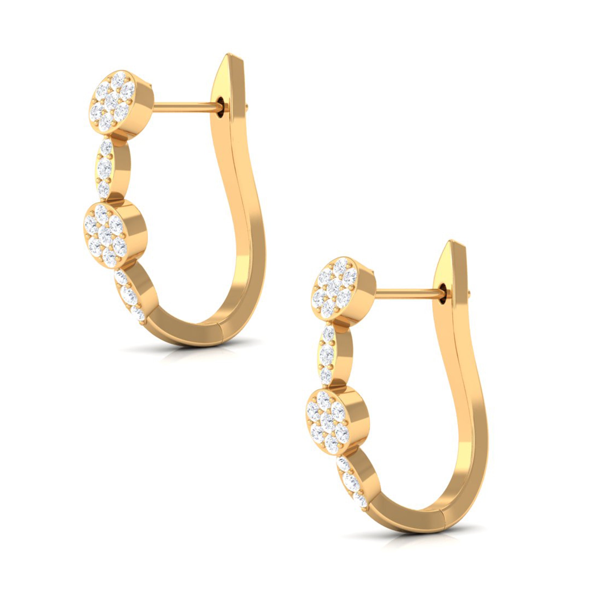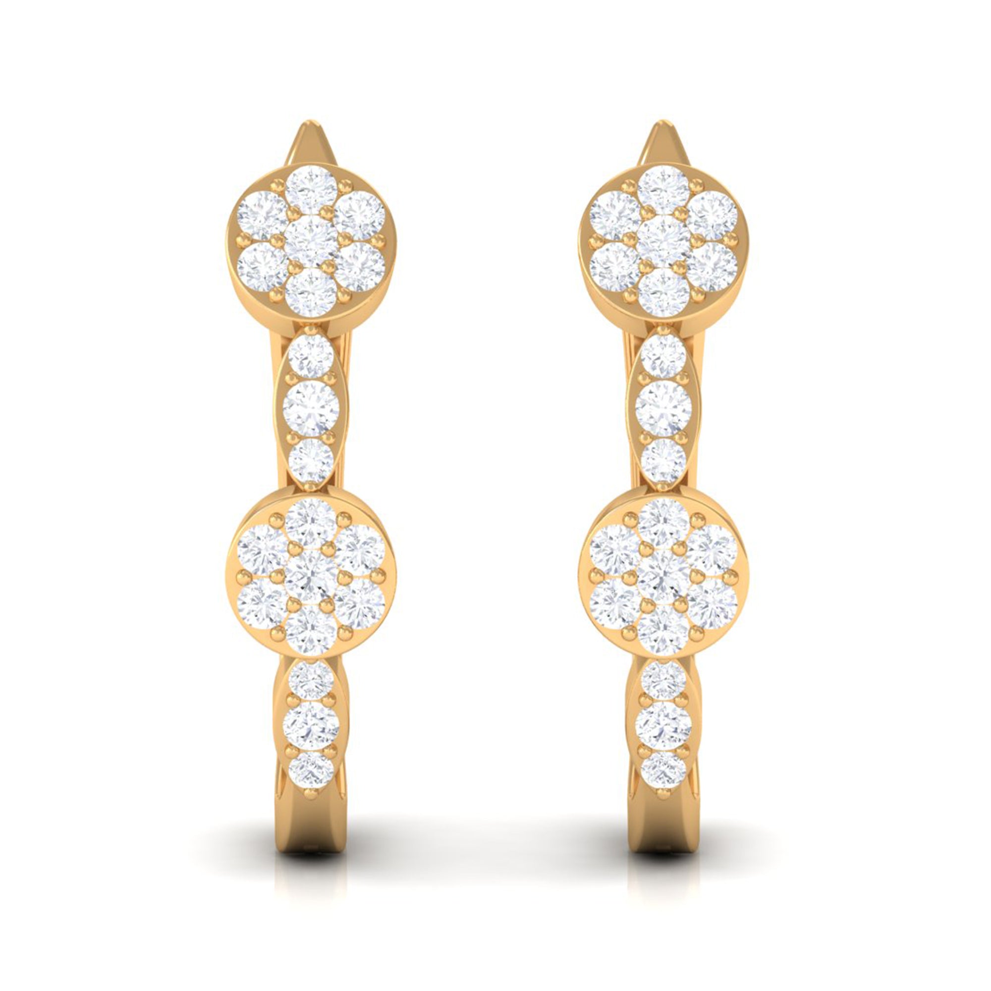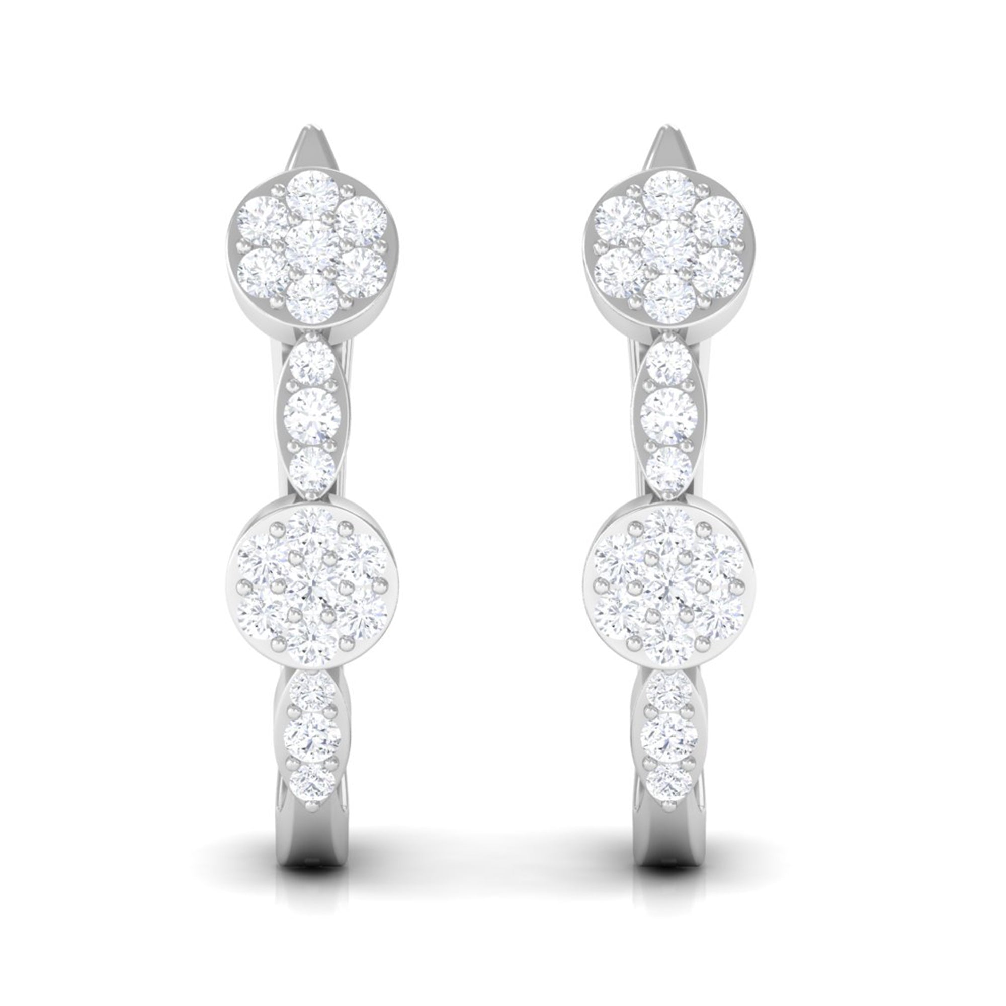 A forever fashion favorite, Diamond Hoop Earrings hang from the earlobe in a circular or semi-circular shape (creating a hoop). The center stone of Diamond lends their timeless appeal a sparkly touch. The best part? No matter what occasion you slip them on for, they make for a statement just as effortless. From the classic hoops to the ones adorned with eye-pleasing motifs such as floral, butterfly, evil eye, celestial or even religious symbols (Diamond Cross Earrings, for instance), you have a world of options before you.