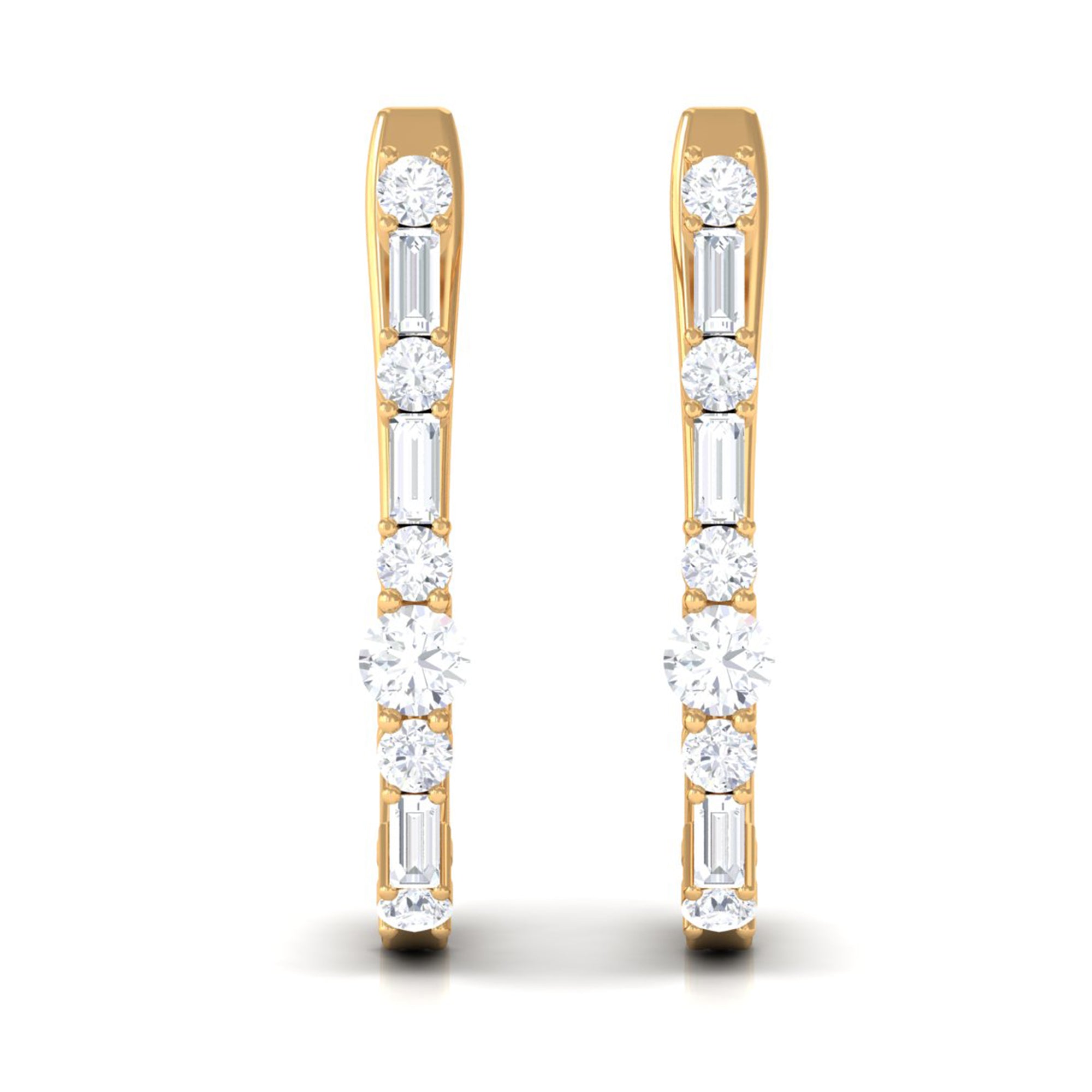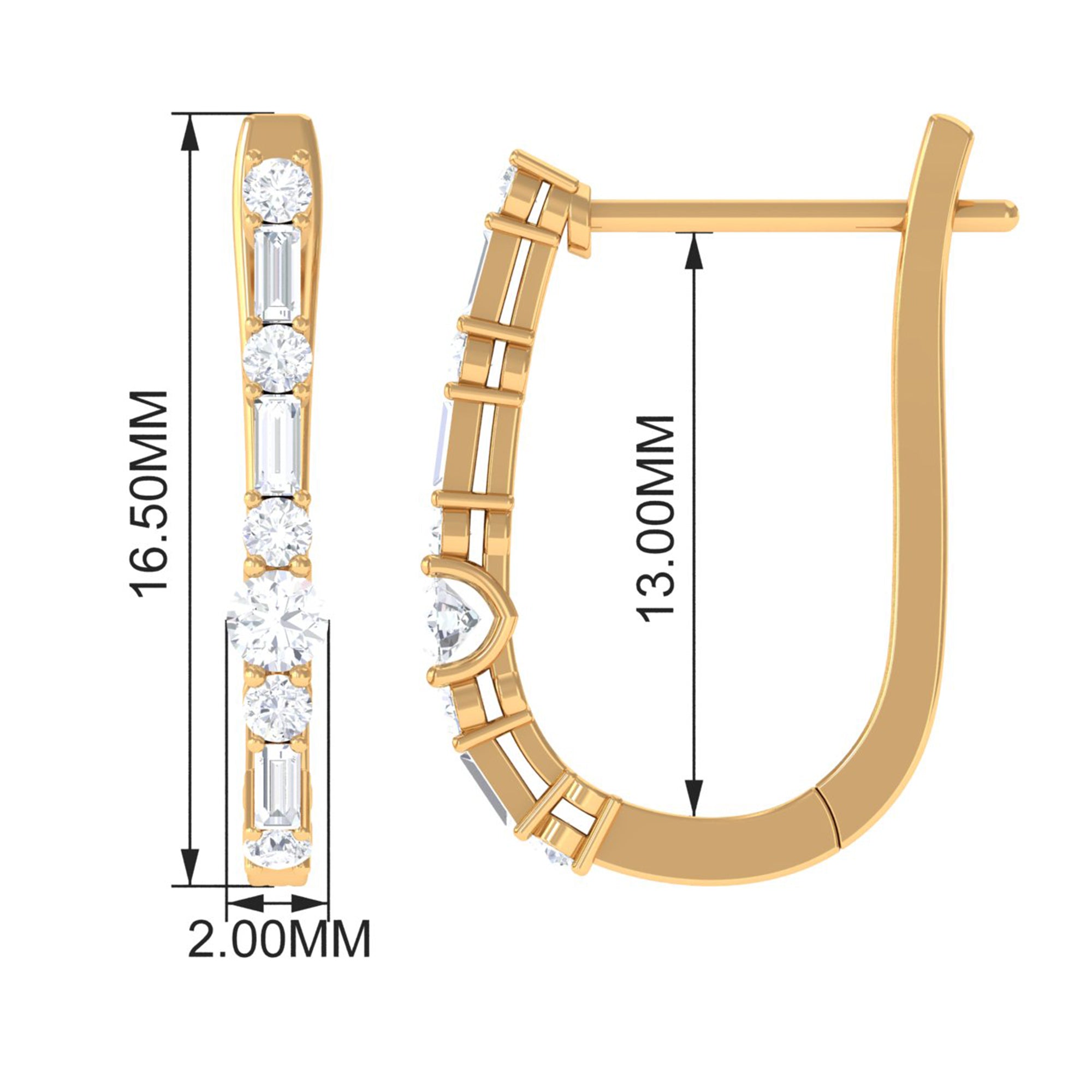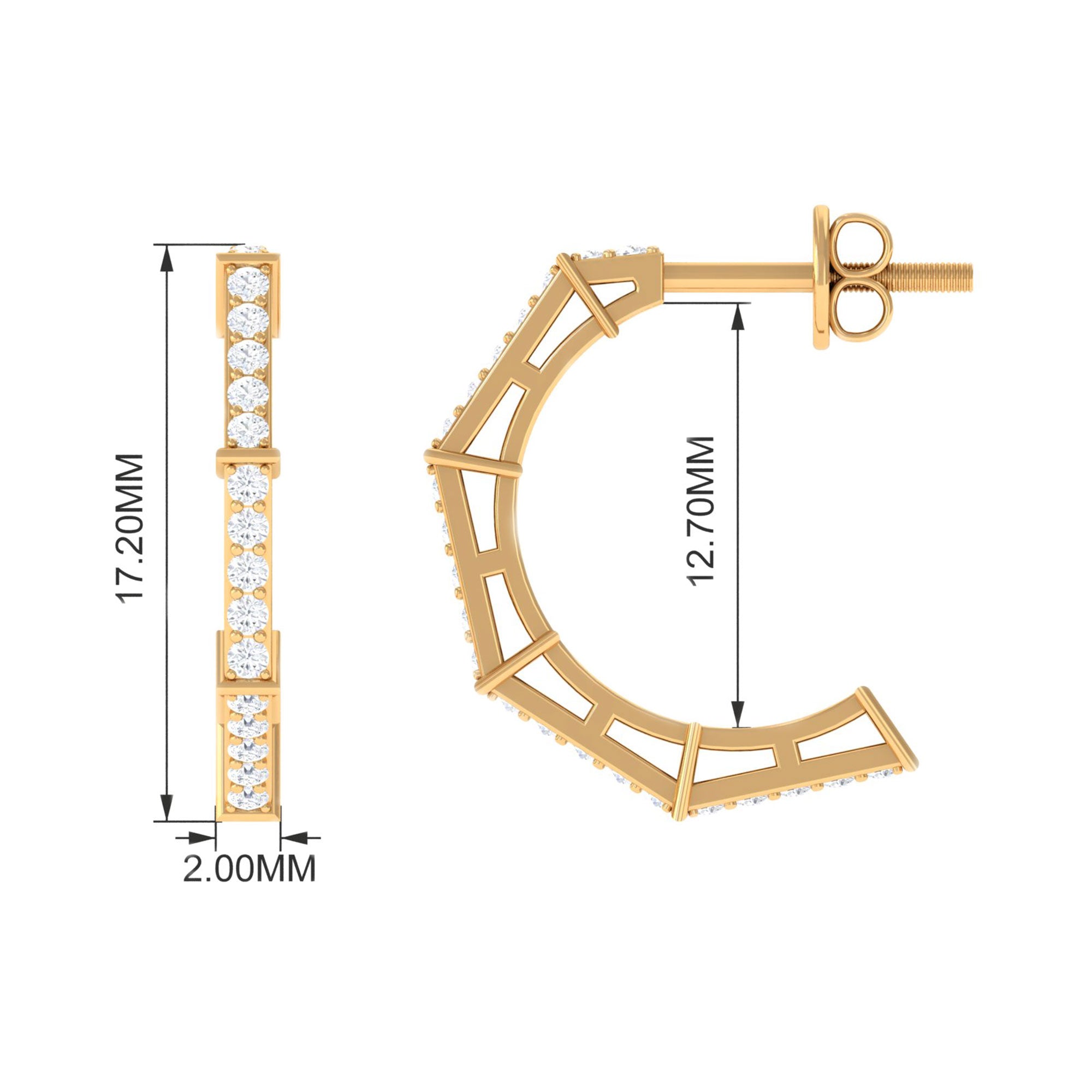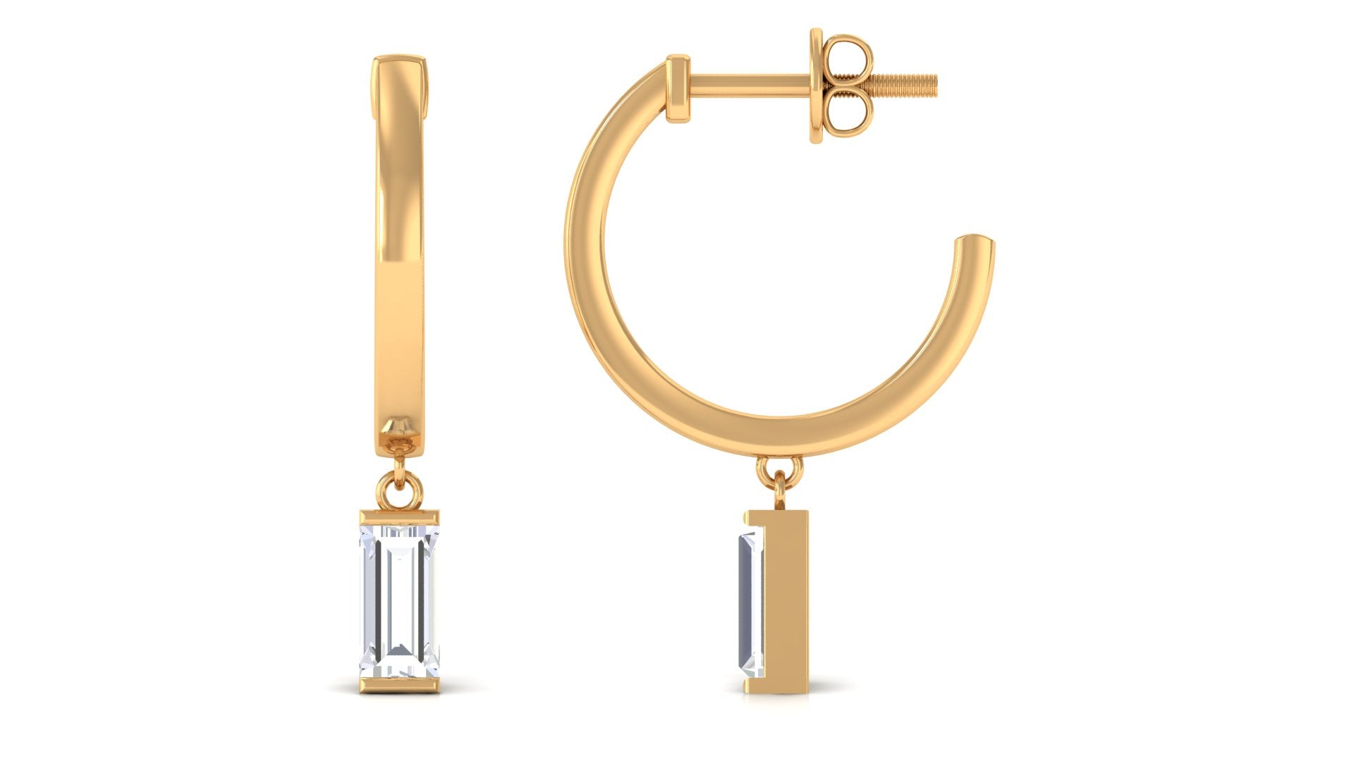 A forever fashion favorite, Diamond Hoop Earrings hang from the earlobe in a circular or semi-circular shape (creating a hoop). The center stone of Diamond lends their timeless appeal a sparkly touch. The best part? No matter what occasion you slip them on for, they make for a statement just as effortless. From the classic hoops to the ones adorned with eye-pleasing motifs such as floral, butterfly, evil eye, celestial or even religious symbols (Diamond Cross Earrings, for instance), you have a world of options before you.
