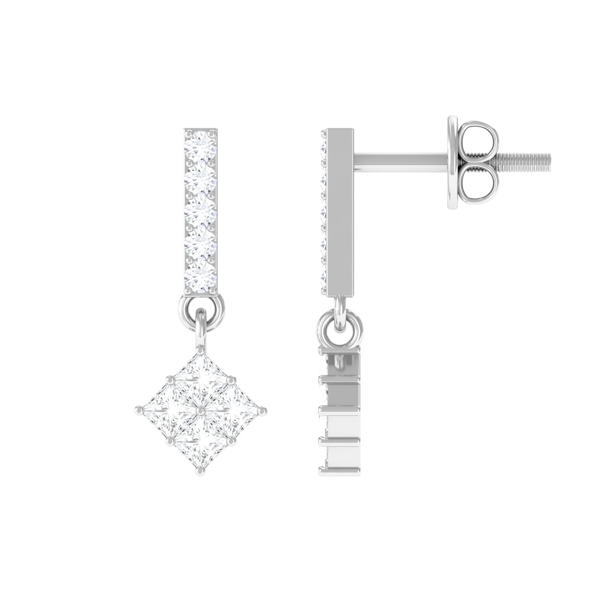 Princess Cut Diamond Earrings can be best defined as square cut with pointed corners and brilliant-style facet pattern. Interestingly, they look close to an inverted pyramid that possess two to four chevron patterns. With as many as 76 facets, they showcase a unique, sparkling effect from different angles.