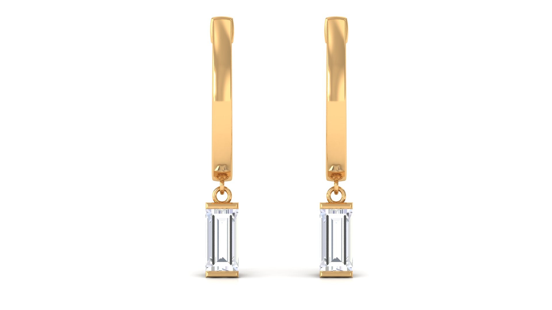 Standing out for their vintage appeal, Emerald Cut Diamond Earrings are shaped like an elongated rectangle with cropped corners. What makes them stand out is the unique hall of mirrors effect that they showcase with the help of the long, step-cut facets.