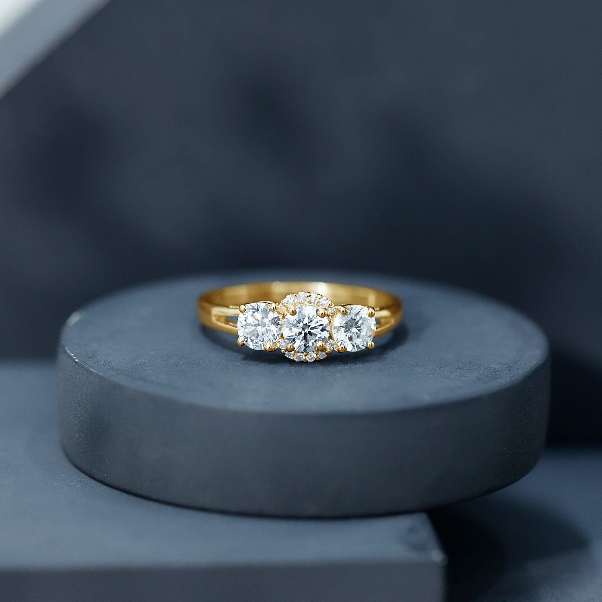 Moissanite: These are brilliant, cost-effective options to diamonds that are preferred for their durability and intense sparkle. They can not be differentiated from diamonds by a bare eye. Modern couples are choosing moissanite engagement rings for their affordability and sustainability. These stones with exceptional fire and brilliance can be easily crafted into all types of designs from vintage solitaires to intricate designer rings.