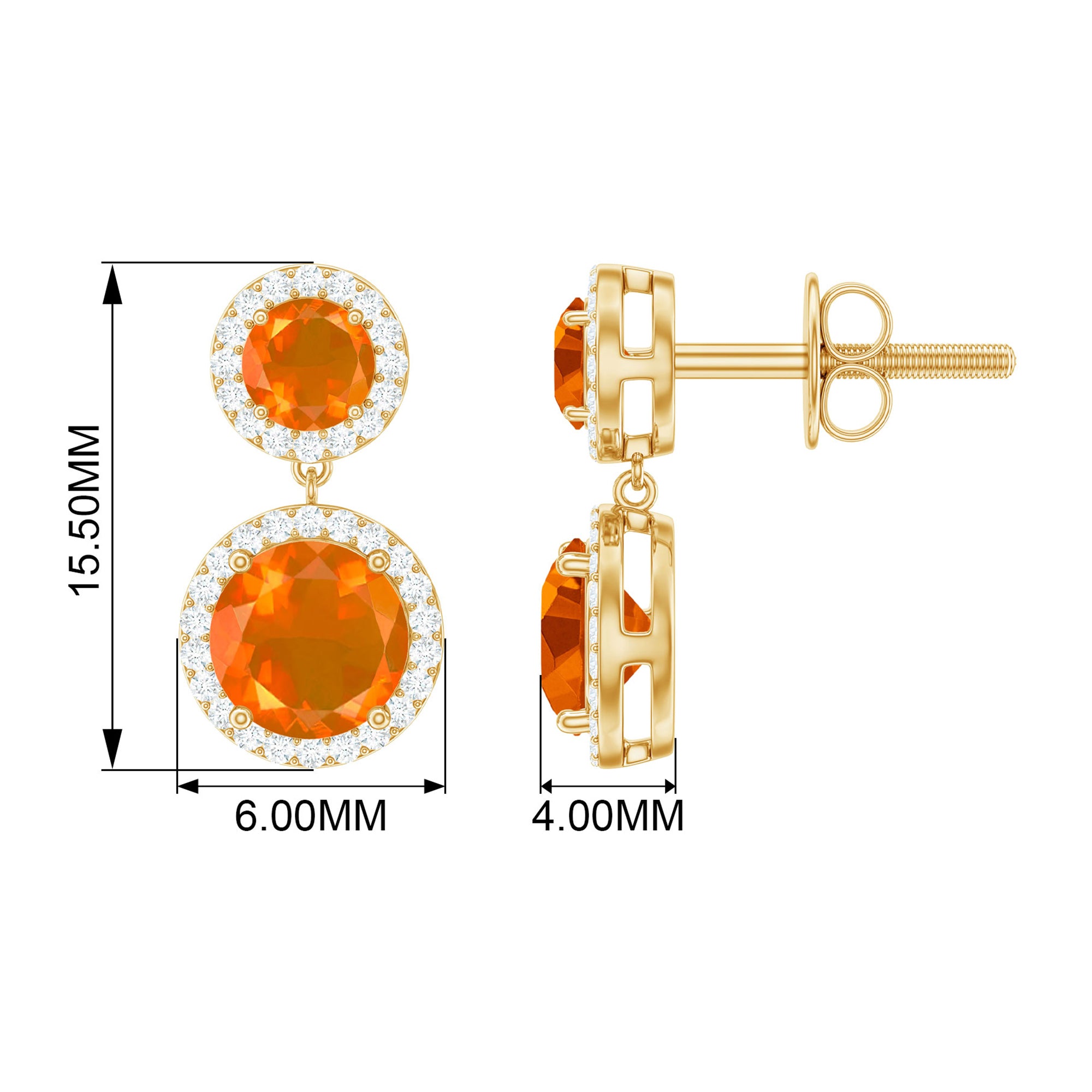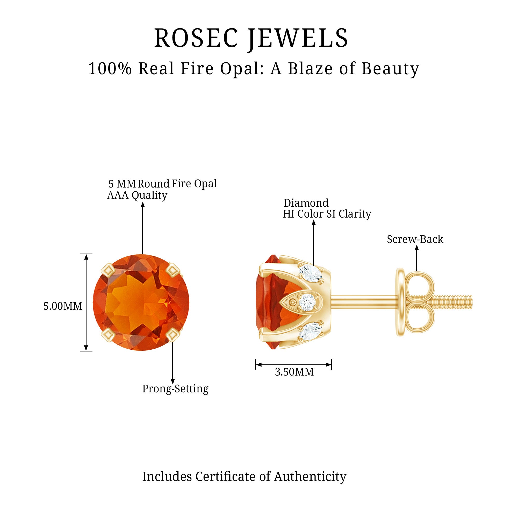 Color: At Rosec Jewels, our earrings feature the finest fire opals that exhibit a spectrum. Our fire opals have a rich and saturated color that showcases from vivid reds to bright oranges.