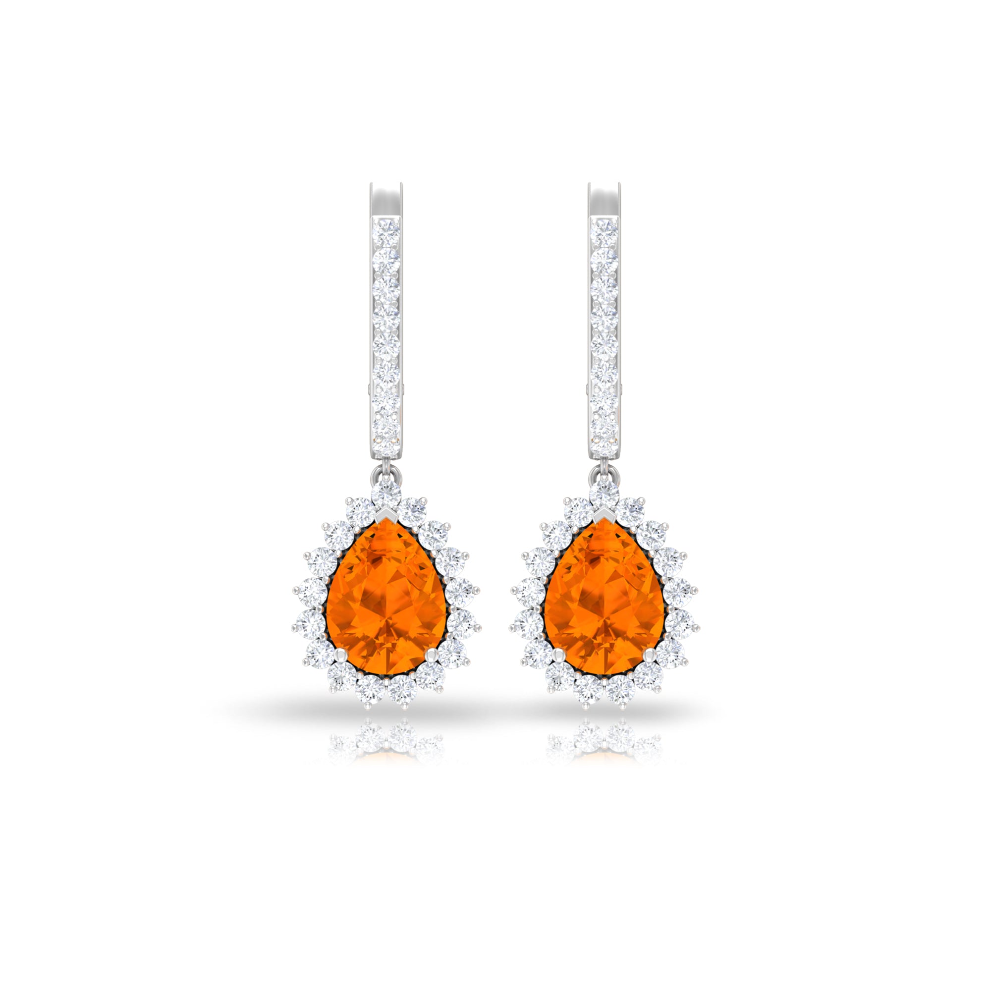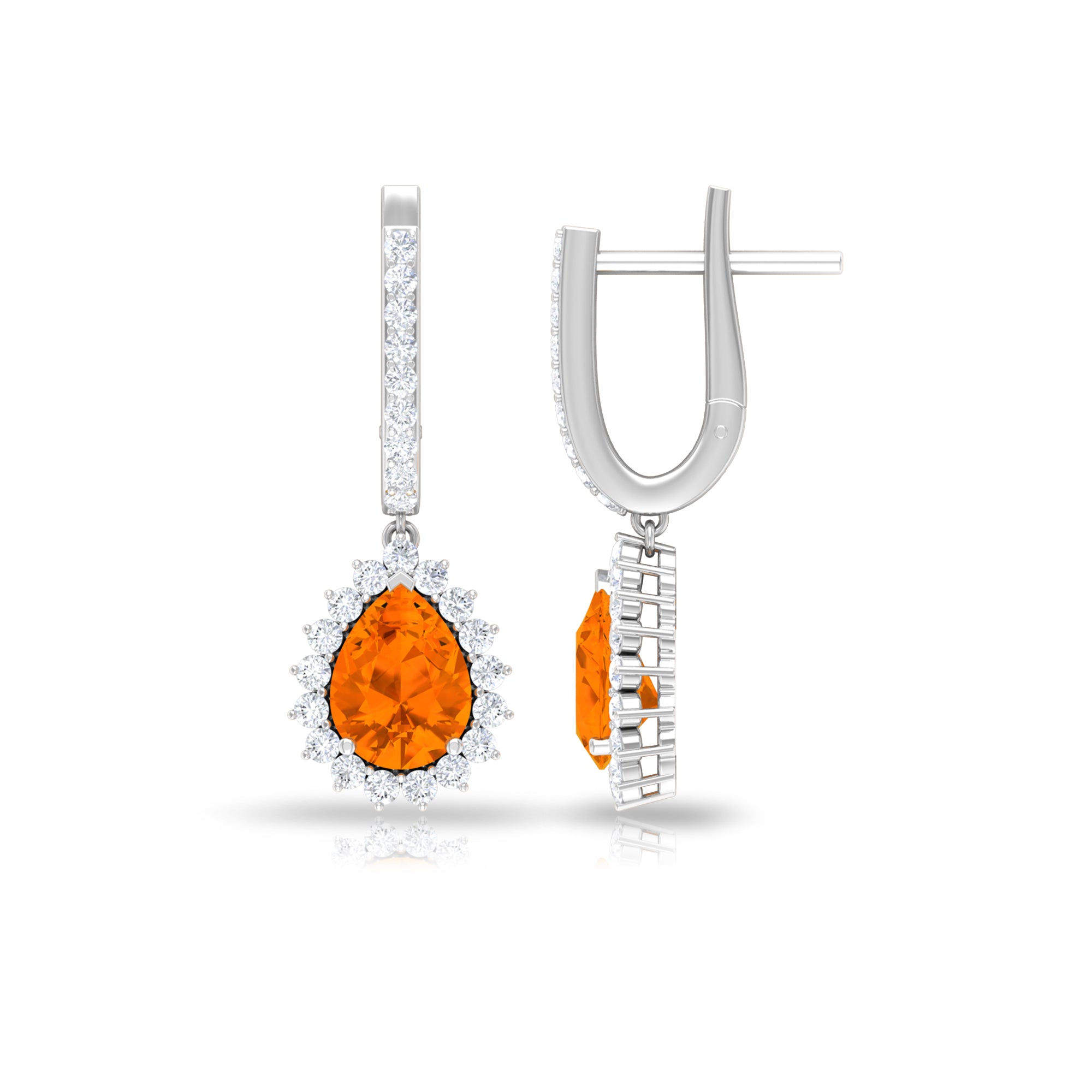 Want to buy fashionable and modern styles of earrings? Explore our fire opal hoop earrings collections with natural diamond and halo designs. Fire opal drop earrings are also one of the best styles in the Hoop earrings. White gold compliments the fiery red opal and gives you a modern look in this fashionable era.