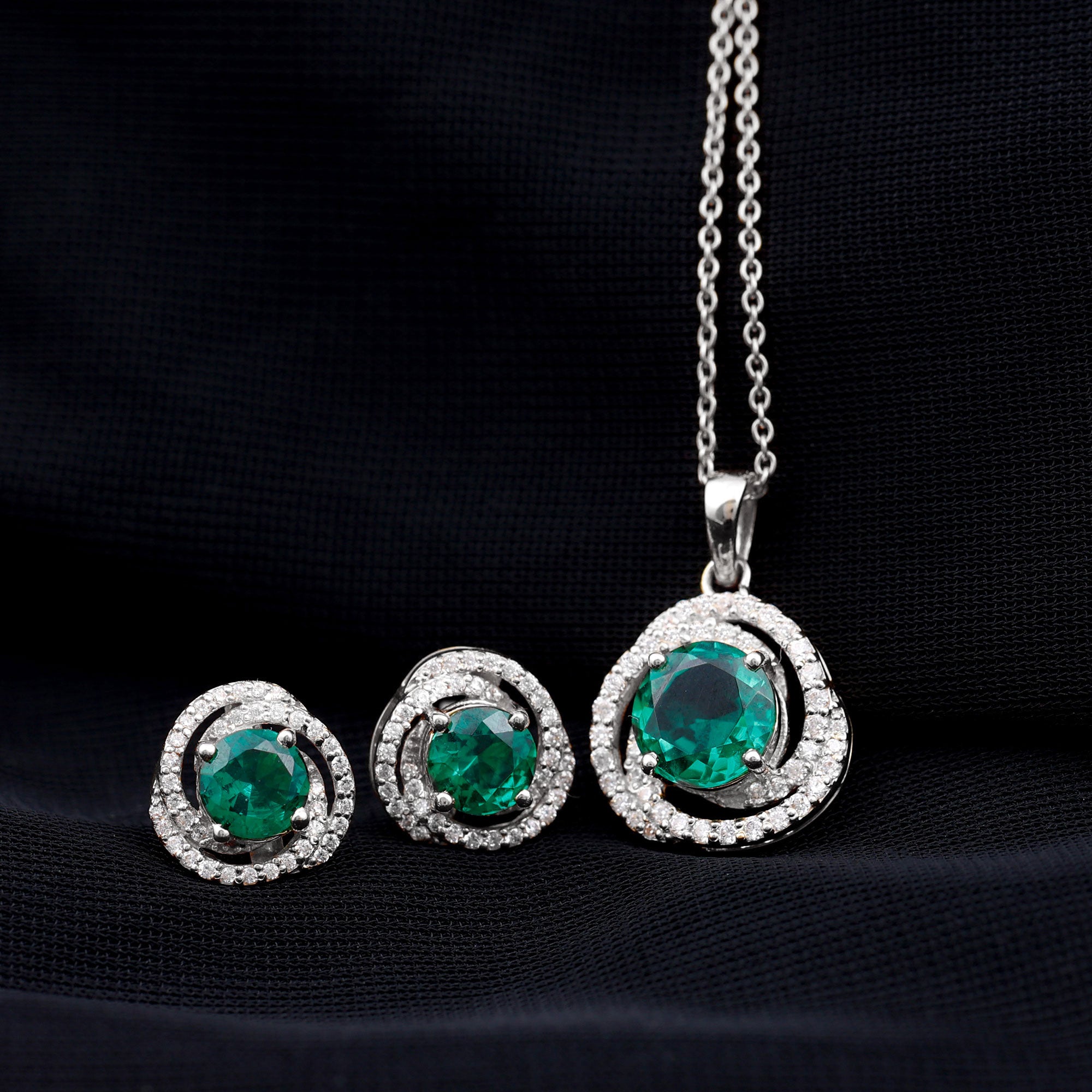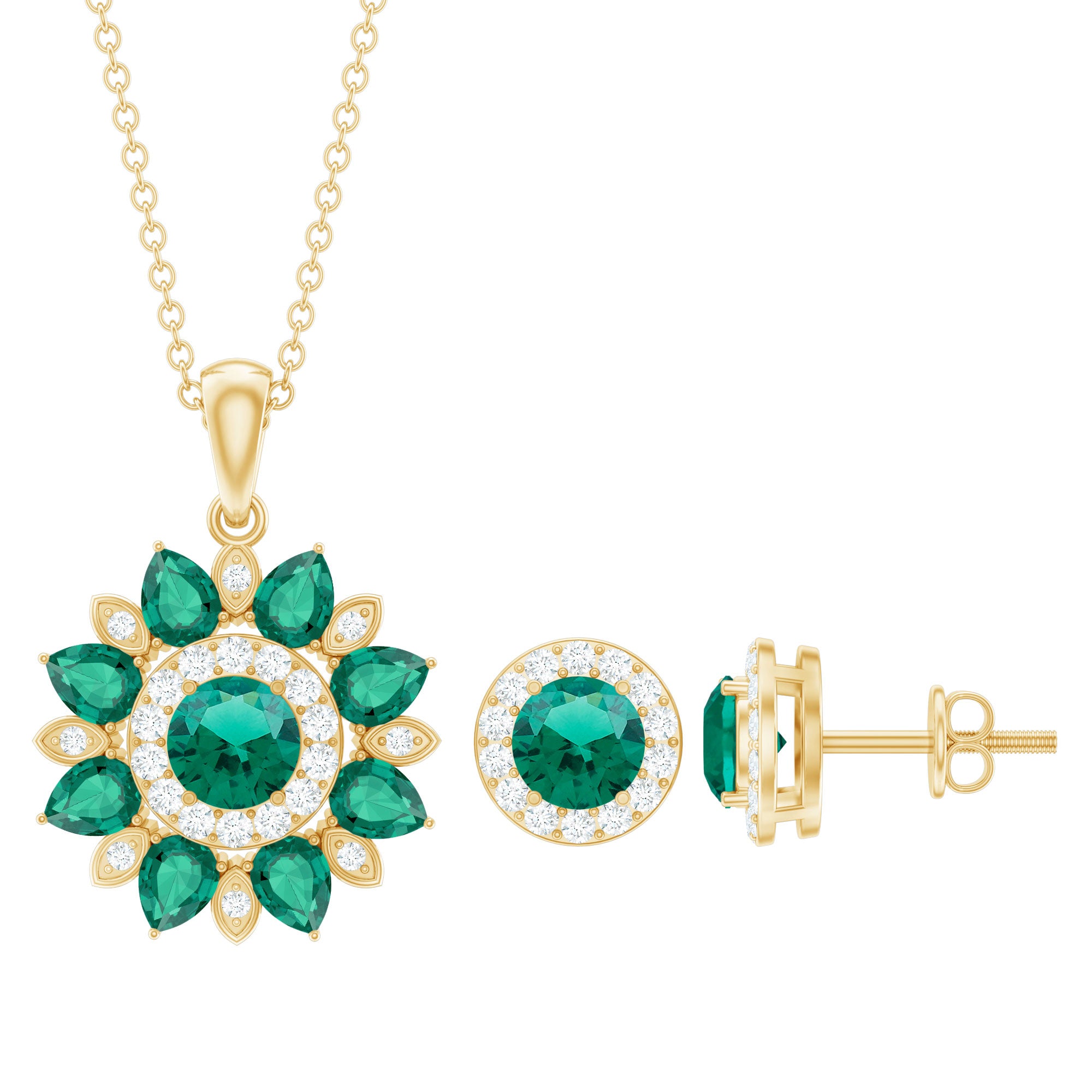 Created Emerald halo necklace design is all about a lab emerald gemstone in the center protected by small shining gemstones for added sparkle or colored gemstones for a more vibrant look. These stylish neck pieces can add a touch of glamour to any look.