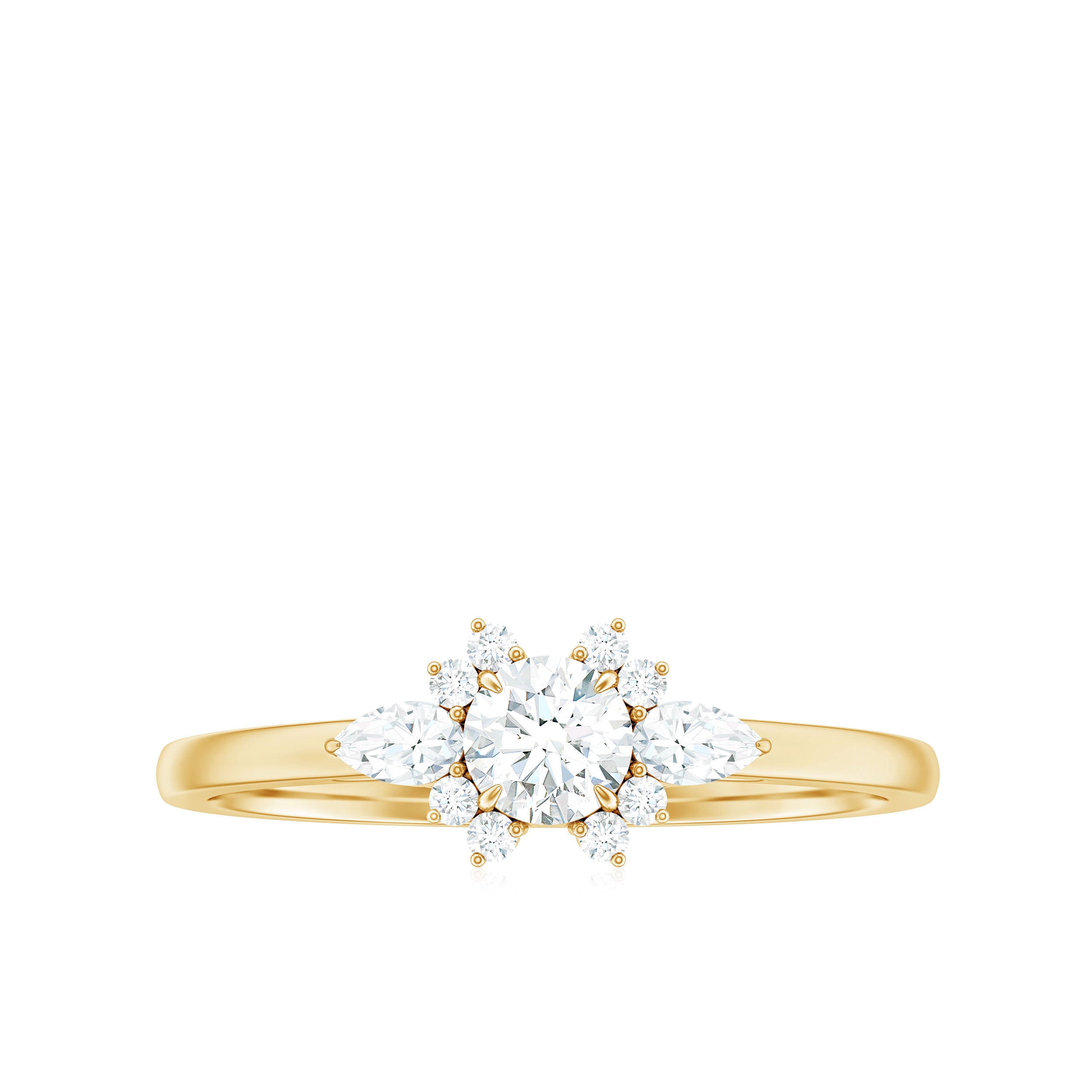 Mark the new beginning of your life with this Diamond Promise Ring is adorned by a Round Cut Diamond sits in a Claw Setting with Pear and Round Diamond Accent. Gracefully crafted in Gold, this gold ring shines with the promise of every tomorrow.