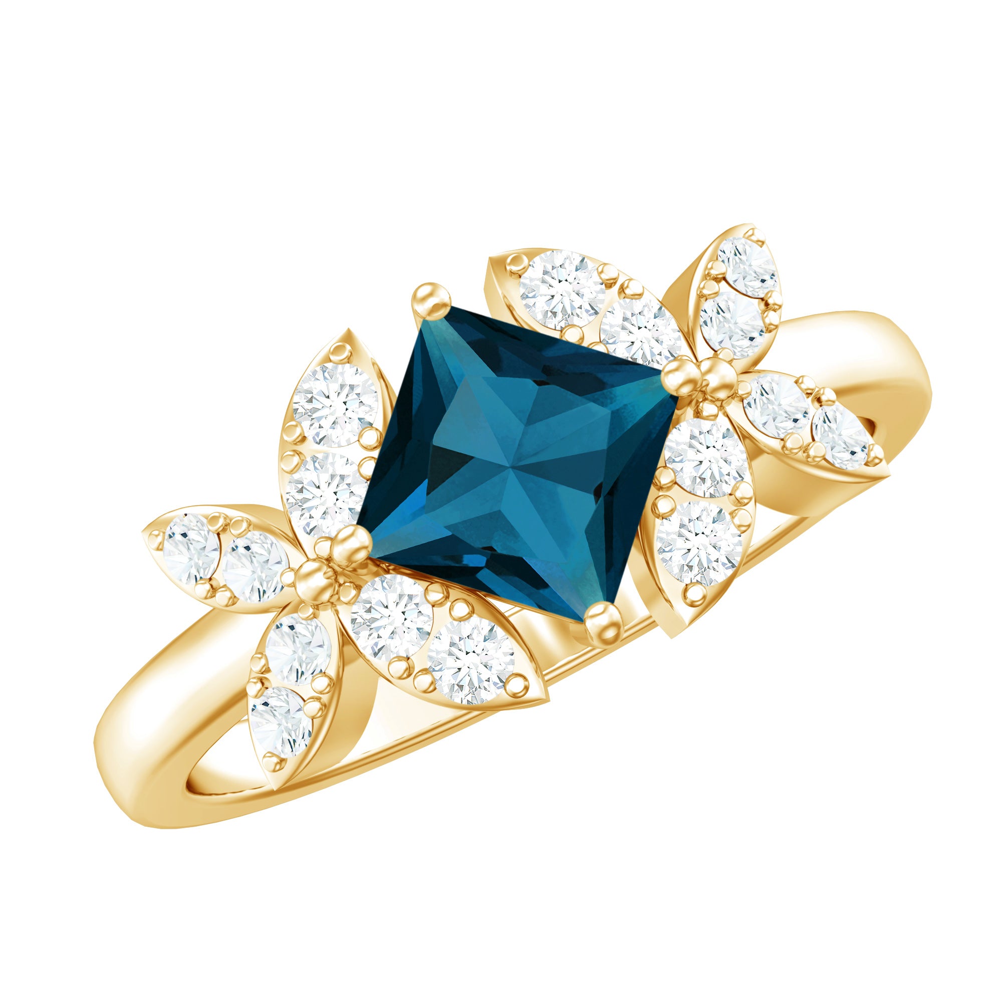 6mm Princess Cut London Blue Topaz Floral Engagement Ring with Diamond