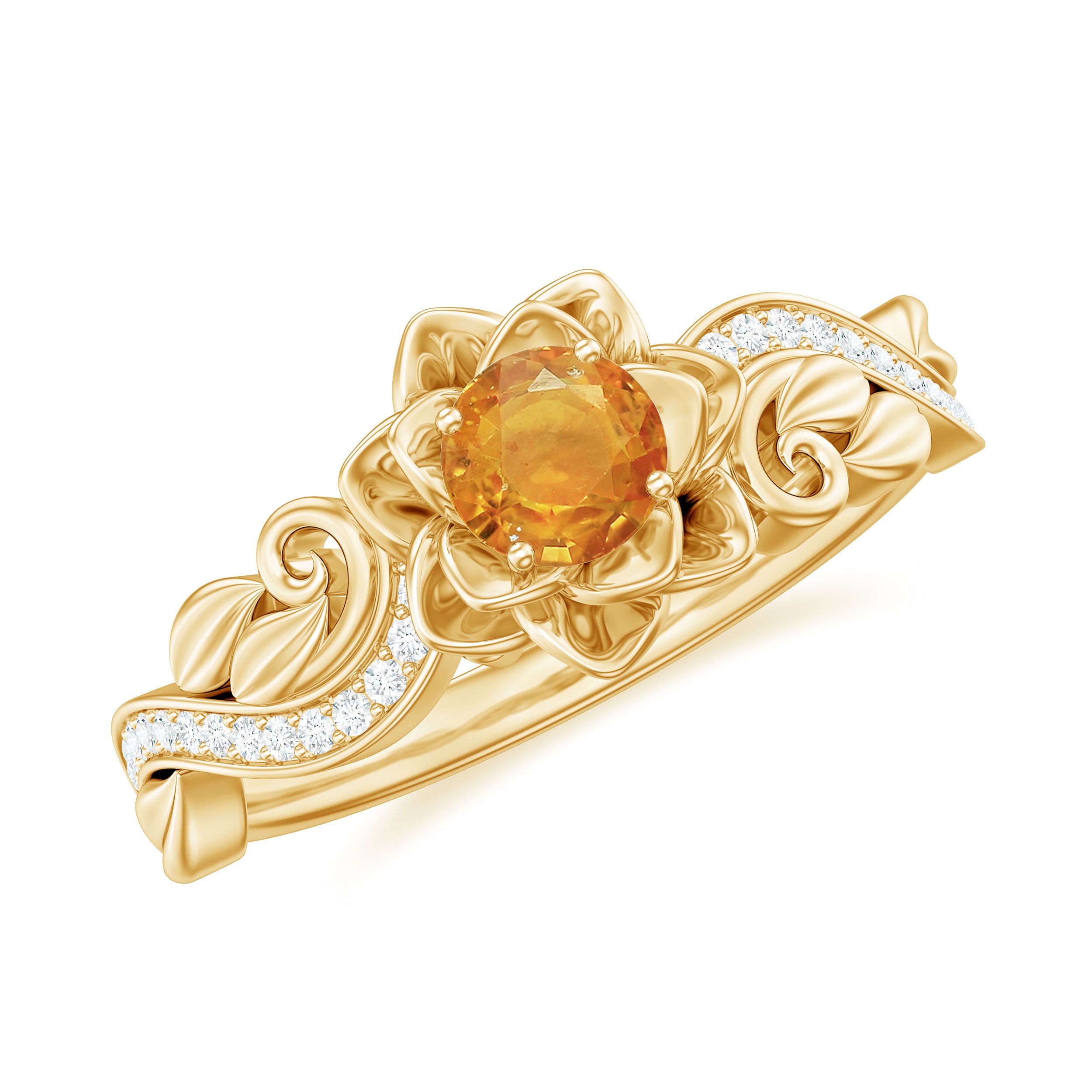 Experience the elegance of this Orange Sapphire Floral Engagement Ring. Its flower-shaped gold metal band, sparkling Diamond stones on the shank, and radiant orange sapphire create a glamorous and classic look. Expertly crafted from solid gold, this ring is the perfect choice for the fashion-forward woman.