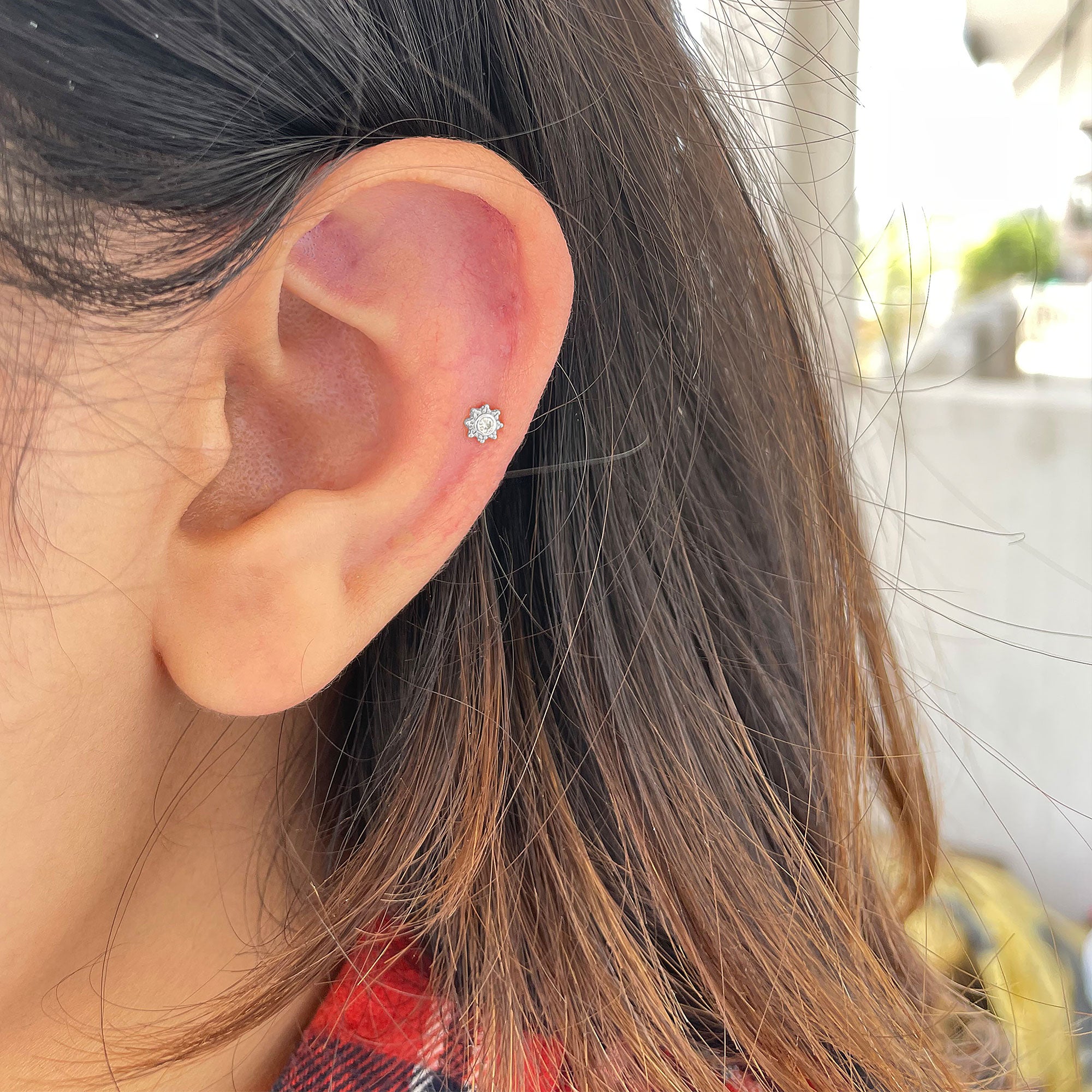 Minimal Diamond Cartilage Earring Stud with Flat Back