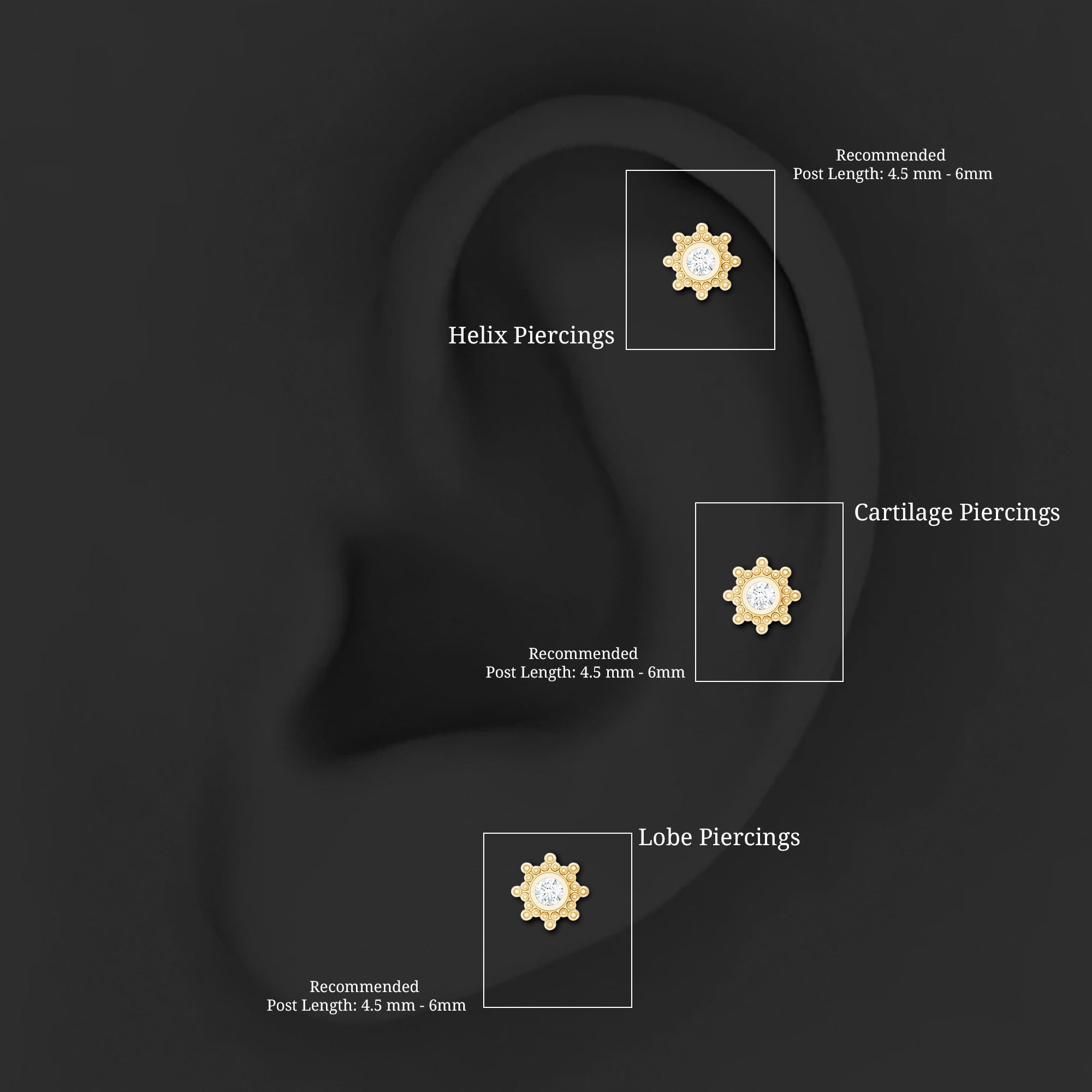 Style this Diamond Beaded Conch Earring with your favorite outfits, as it is embellished with Round Cut Diamond secured in Bezel Setting with Beaded Detailing. Wear this Dainty Earring on your Helix, Cartilage, Tragus, or Upper Lobe Piercing. This Cartilage Earring beholds the shine of HI-SI Quality Diamond which will add sparkles to the personality of the wearer. Grab this Minimal Earring for your loved ones and wait for her priceless reaction. This Diamond Stud Earring will be delivered to you in quality packaging.