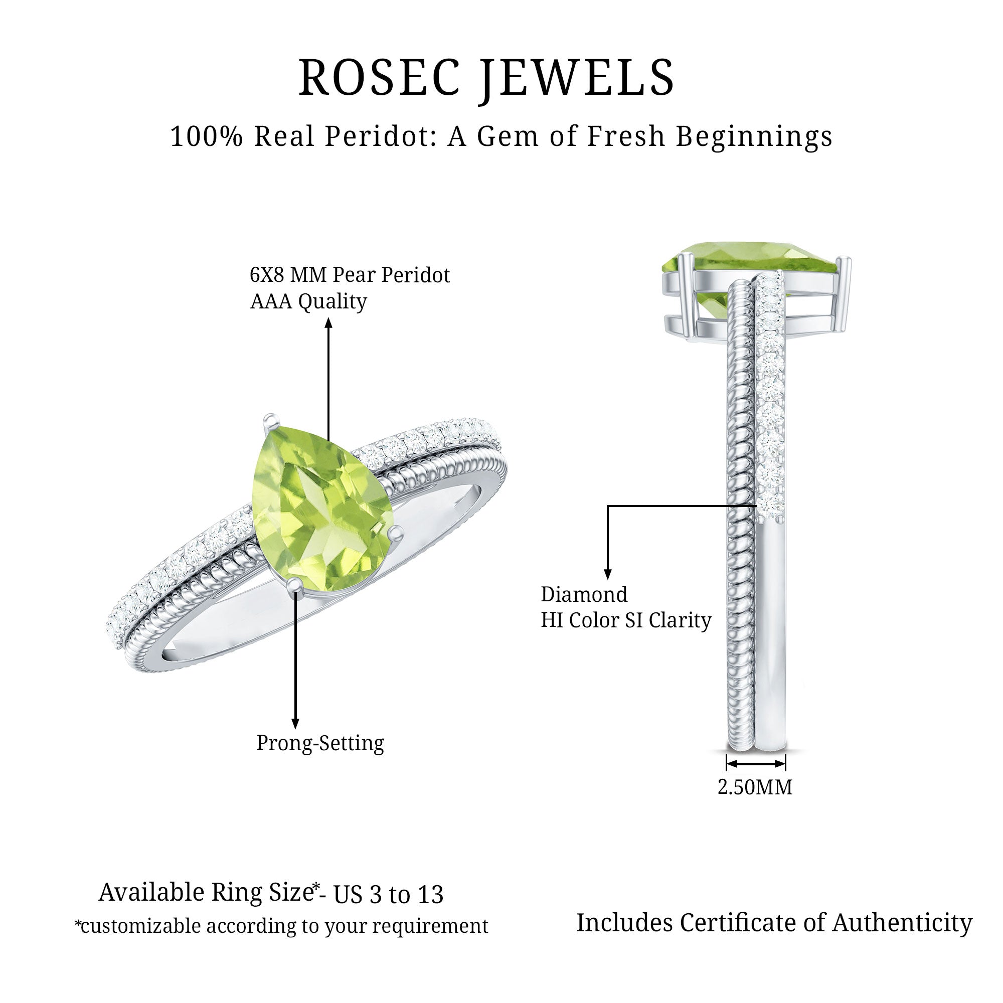 Embrace simplicity with this Peridot Solitaire Ring adorned with Diamond and Twisted Rope, a graceful fusion of timeless charm and modern elegance.
