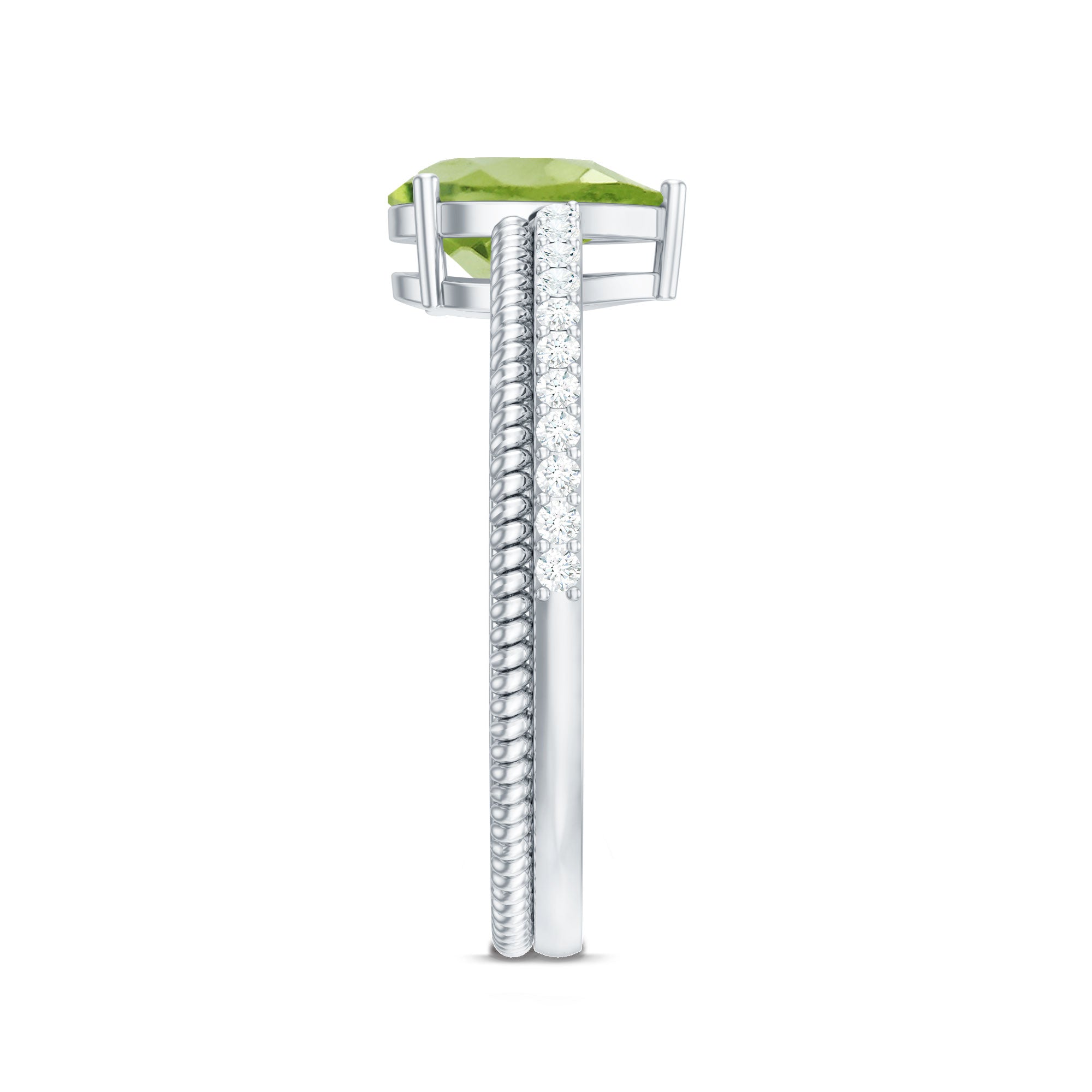 Solitaire Peridot and Diamond Ring with Twisted Rope