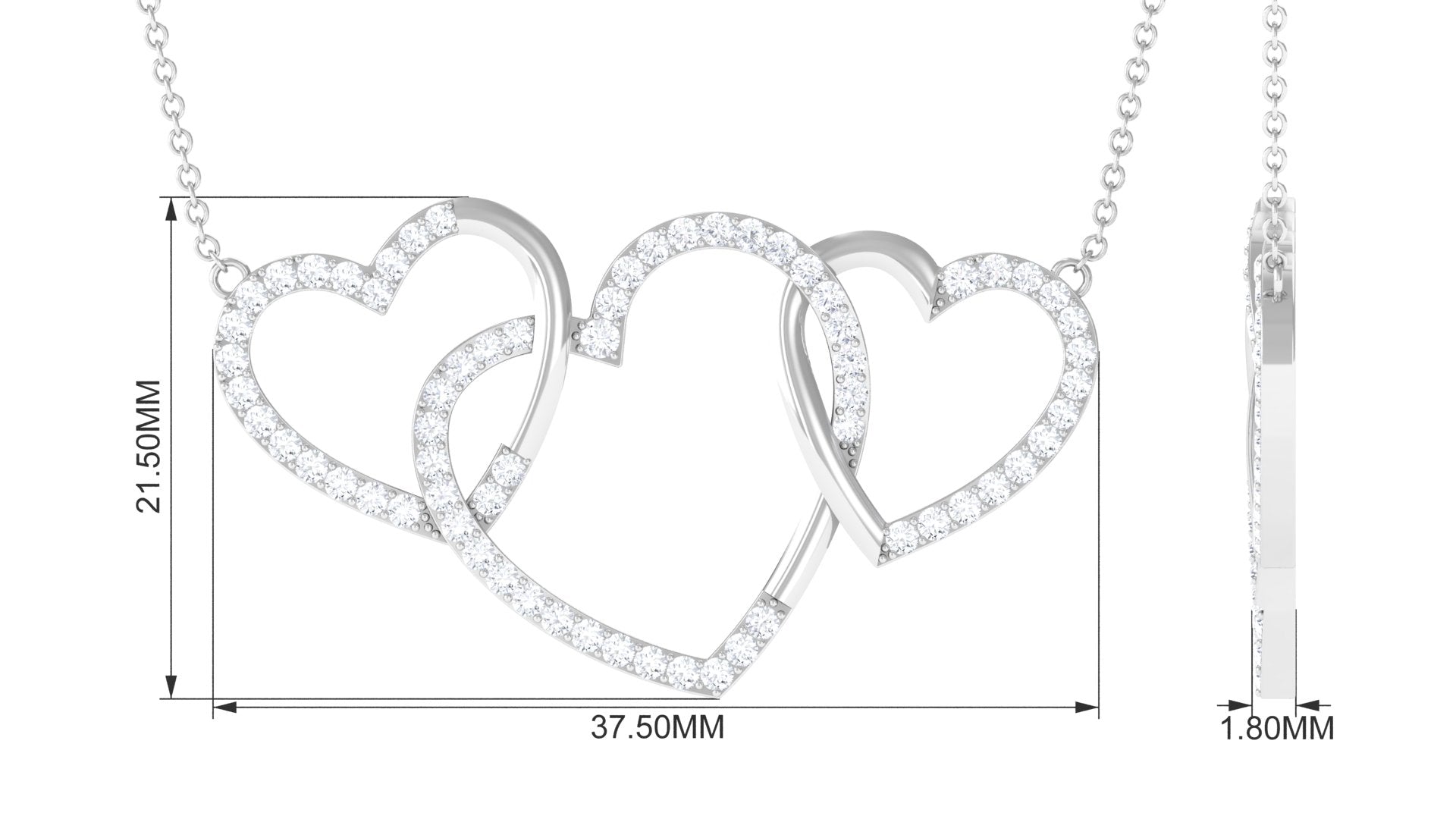 This Diamond Heart Necklace is a beautiful symbol of everlasting love and a strong bond, shining brilliantly. Made with three interlinked open heart designs and adorned with round cut Diamonds in pave setting, this Promise Necklace beautifully represents love. It features HI-SI Quality Stones that emit timeless beauty and exceptional clarity. It is the perfect gift for anniversaries, Valentines Day, birthdays, or any moment to show how much someone means to you. This Three Heart Necklace is a touching way to celebrate a love that endures forever. The craftsmanship of this Heart Shaped Necklace is impressive, making it a true piece of art. A representation of your lasting love and commitment, this necklace is destined to be cherished for years to come. It includes a certificate of authenticity, ensuring its quality and worth, and is packaged in a high-quality jewelry box, making this Interlocking Necklace a fantastic addition to your everyday style with its unmatched sparkle and romantic flair.