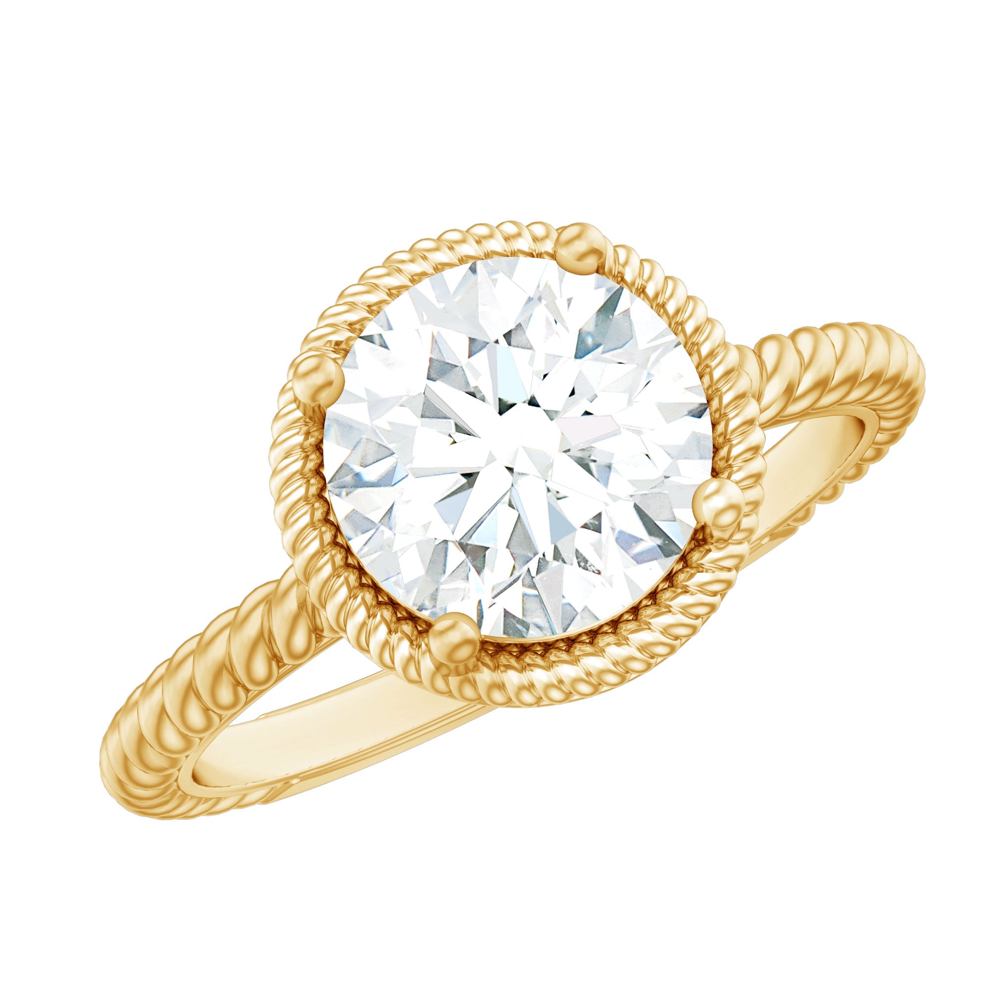 - With big gemstones in diamond and moissanite, color of the gemstone should be in relation to its setting and metal so that it appears almost colorless. 2 CT stone looks great with white, yellow and rose gold metal.