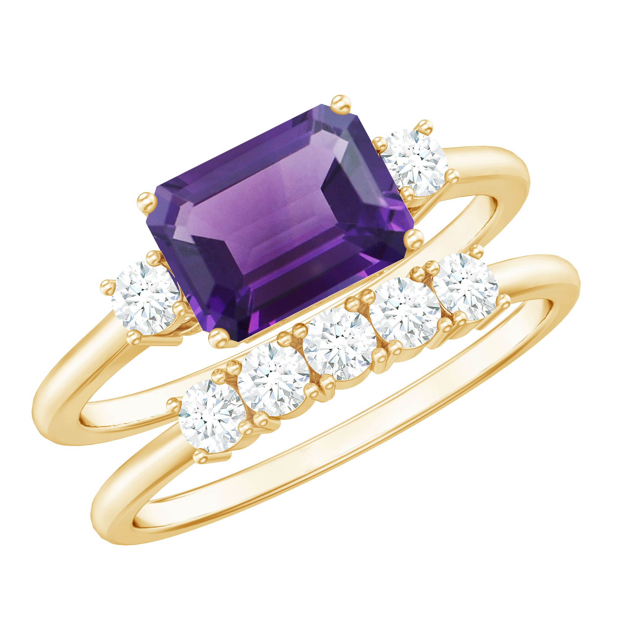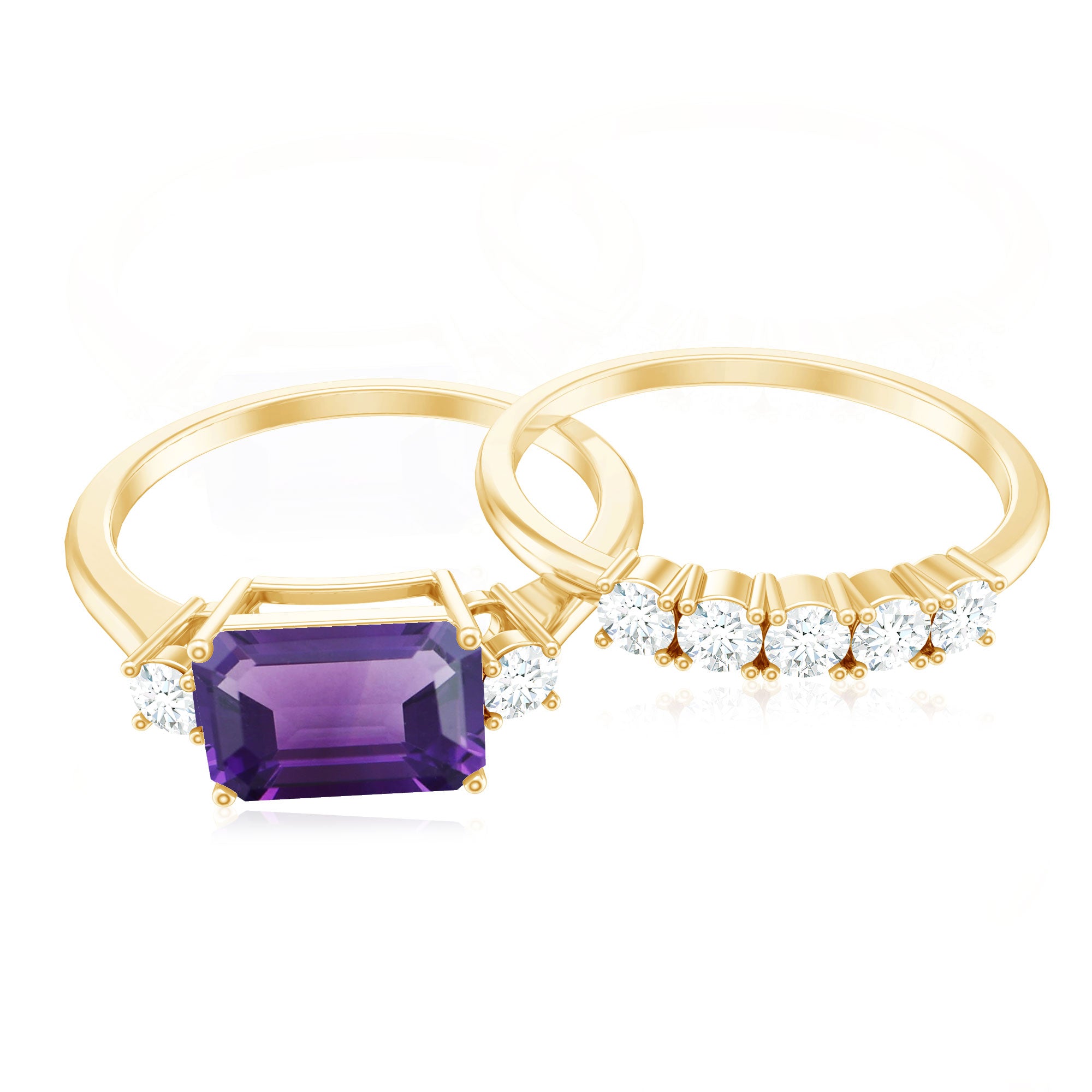 Amethyst eternity rings are the symbol of never-ending love and long-time commitment. Feature precious metal and gemstones set in full circle or half circle around the rings. you can choose occasional styles of eternity rings like amethyst wedding rings, promise rings, and other styles.