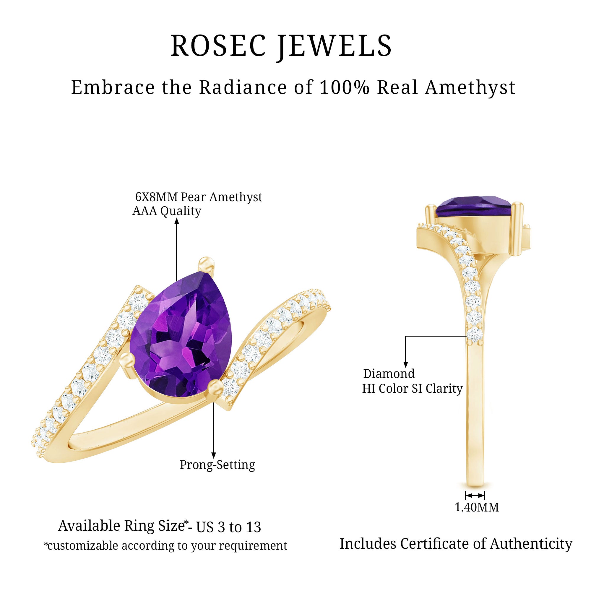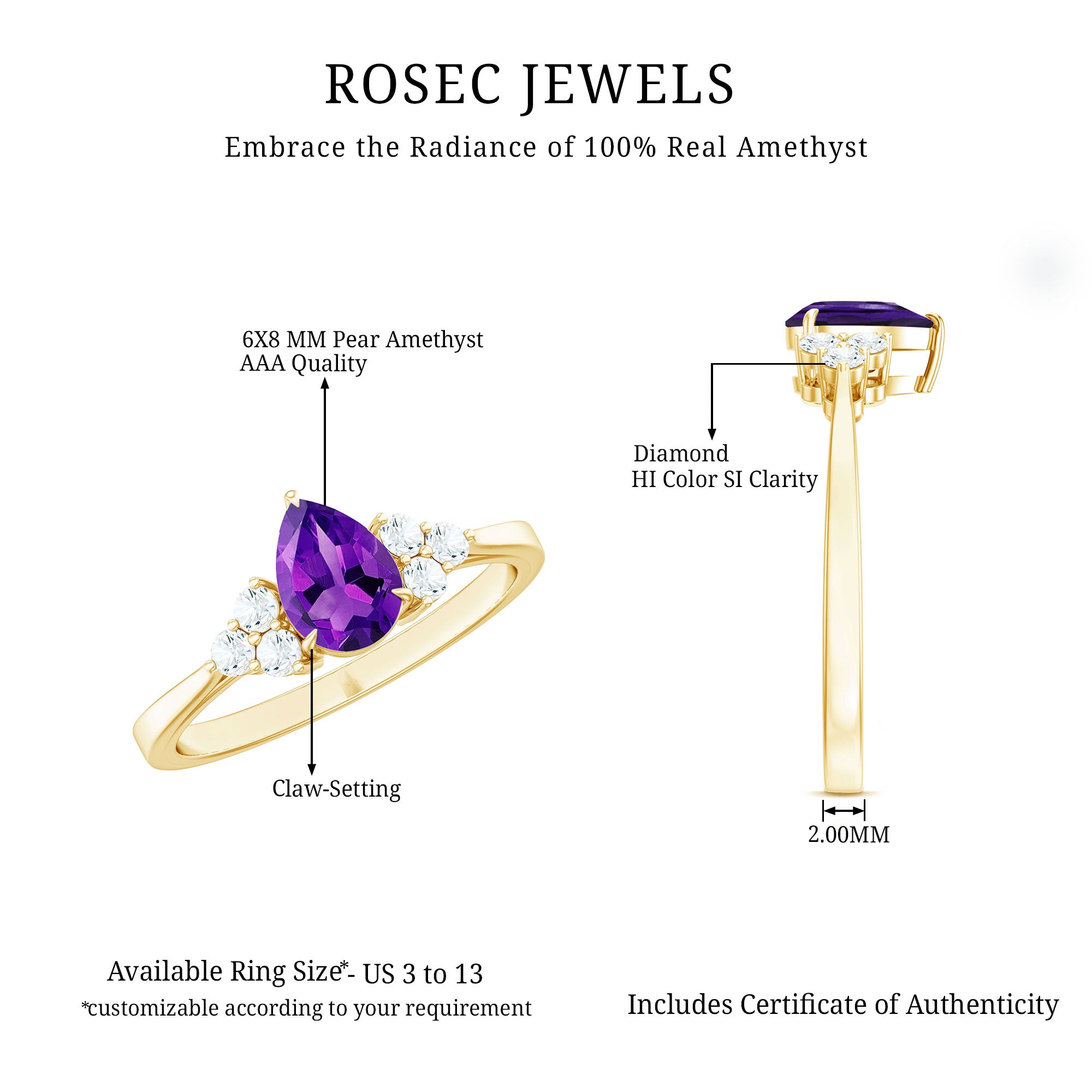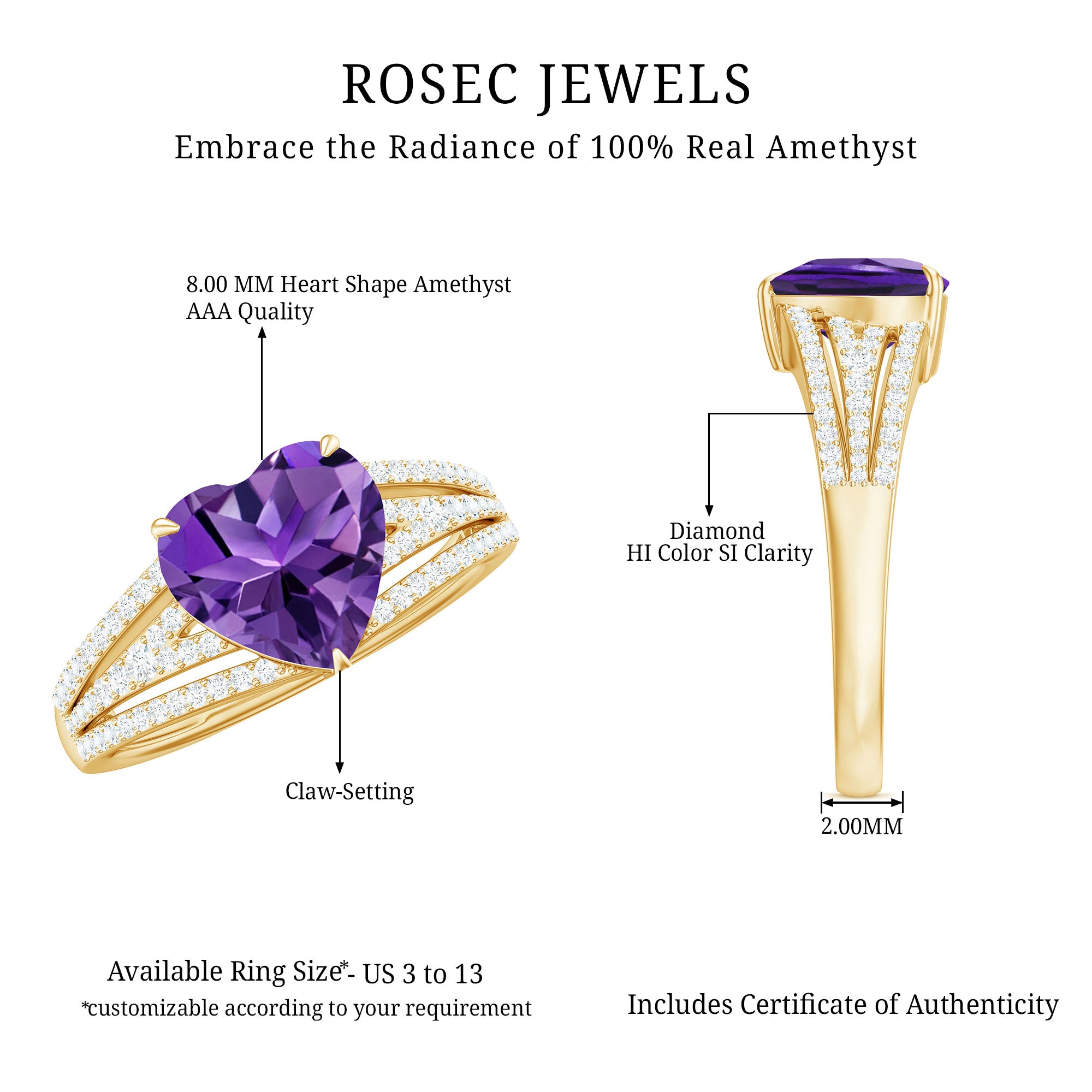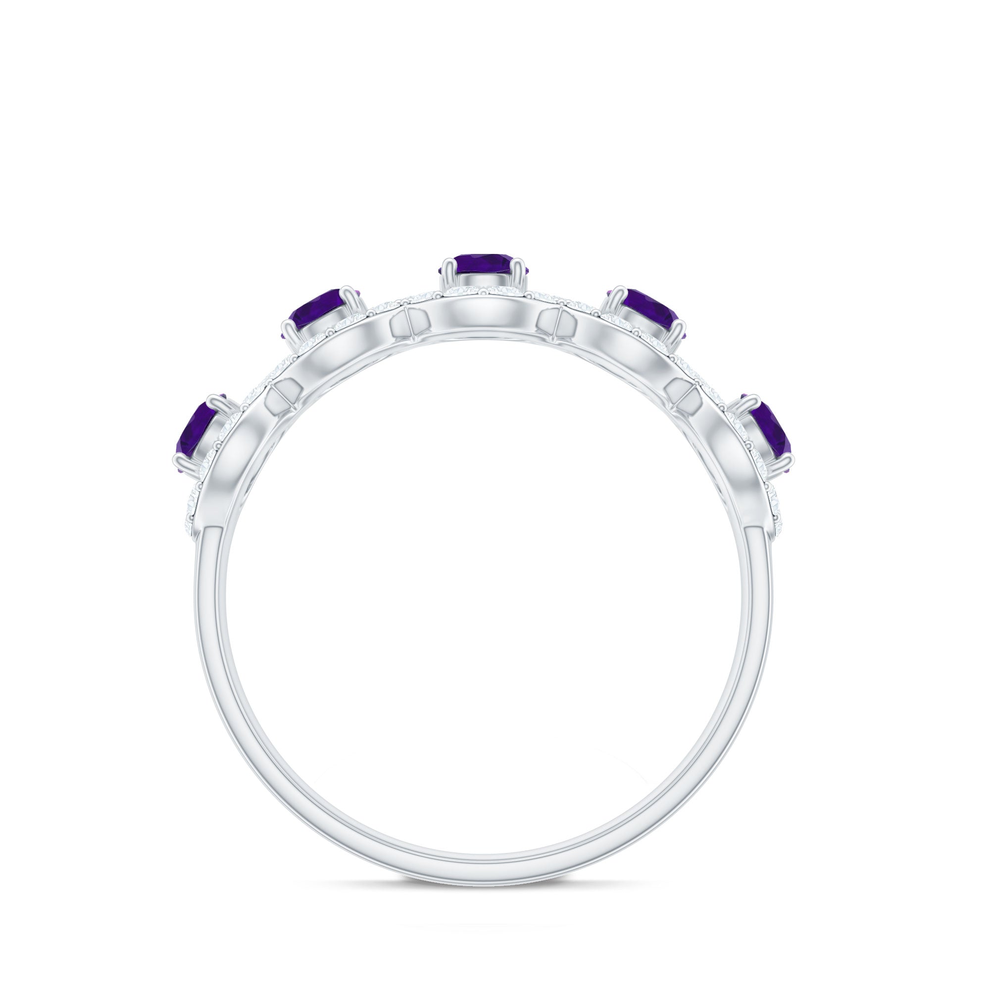Promise rings are used for making promises or commitments with your partner and friends, and are also known as pre-engagement rings. Promise rings generally have smaller stone sizes than engagement rings so they are less costlier. While amethyst is famous for its calming energies and spiritual powers, making it a perfect choice for promise rings. We can opt for an amethyst gemstone of less than 1 CT for the promise rings in solitaire, eternity, infinity, and many more styles.