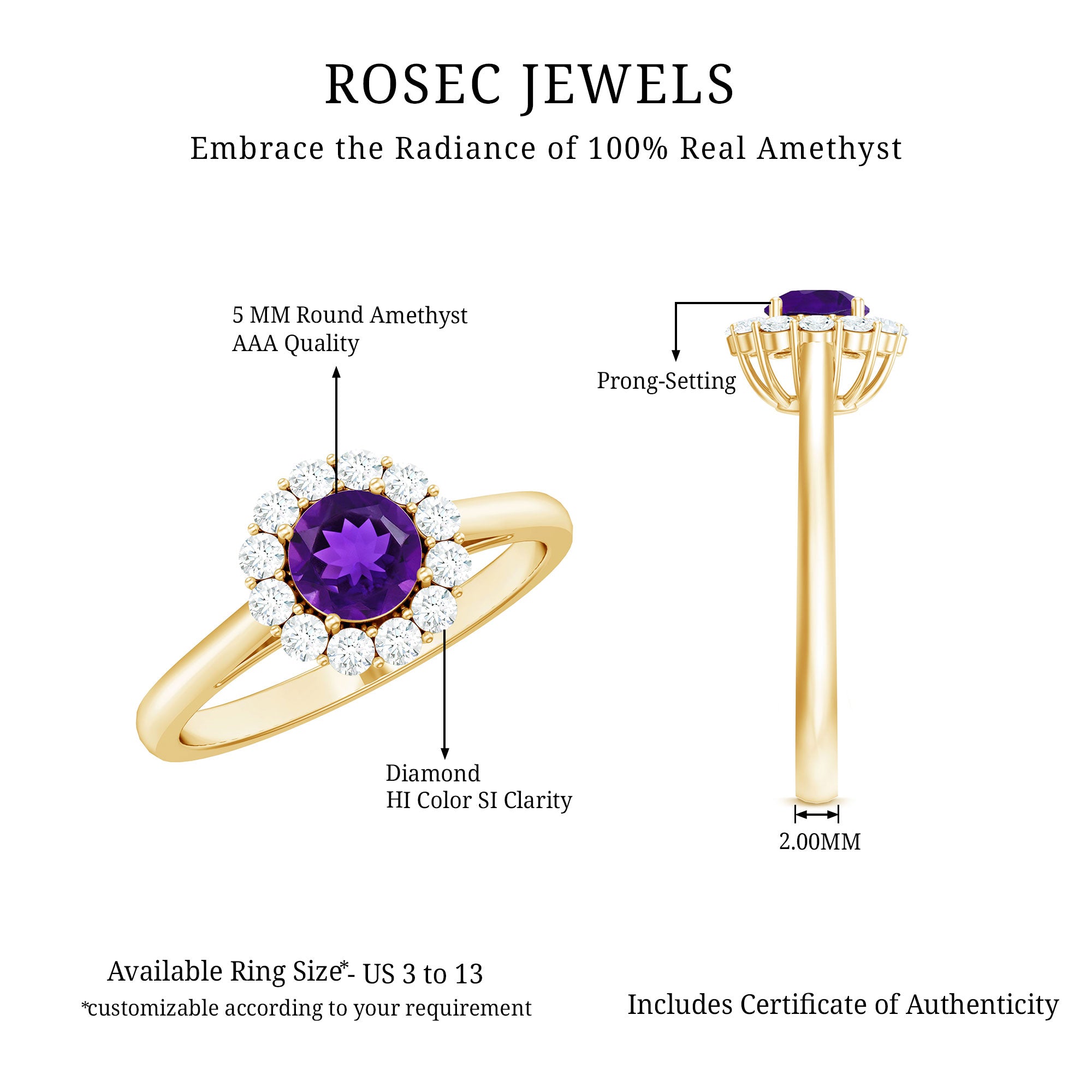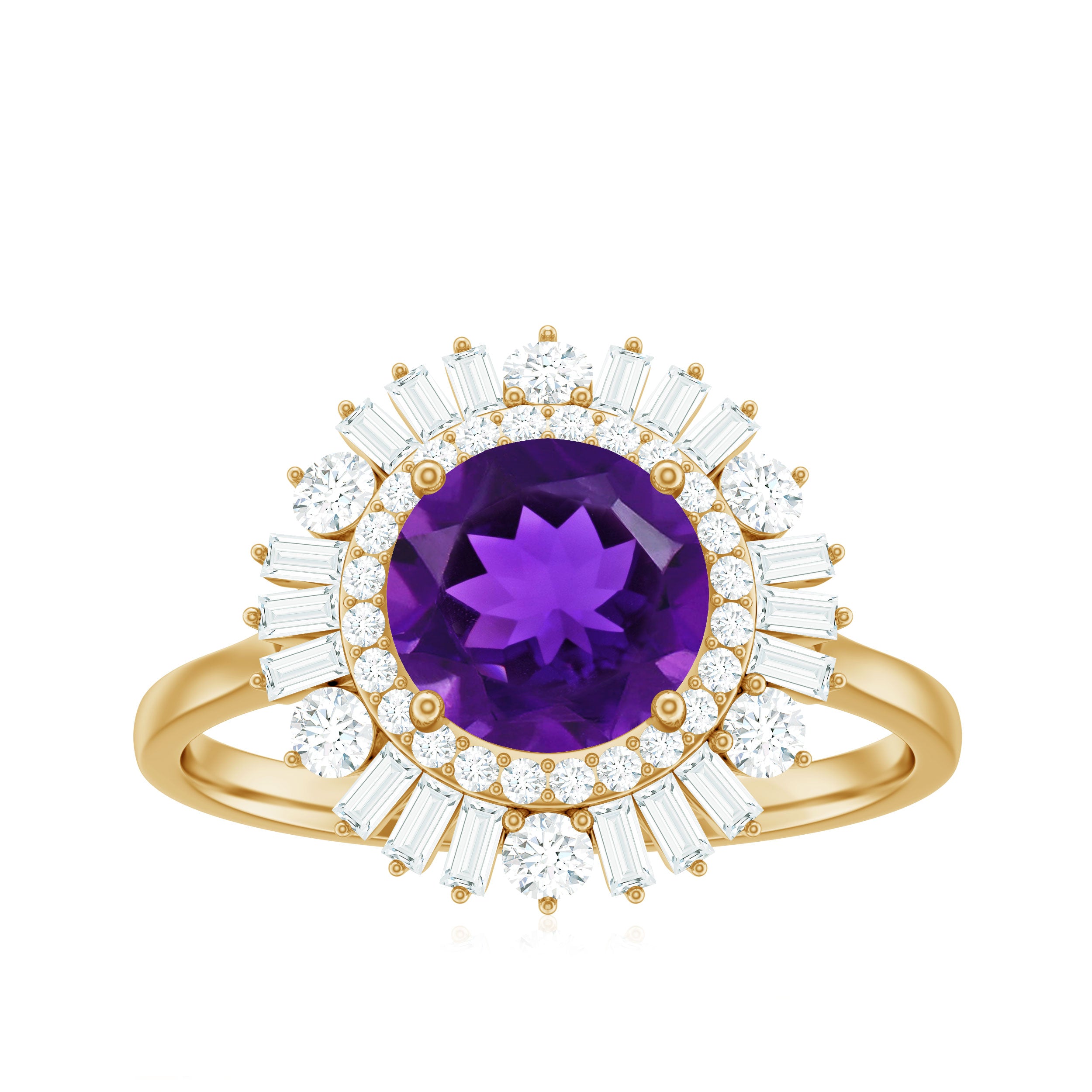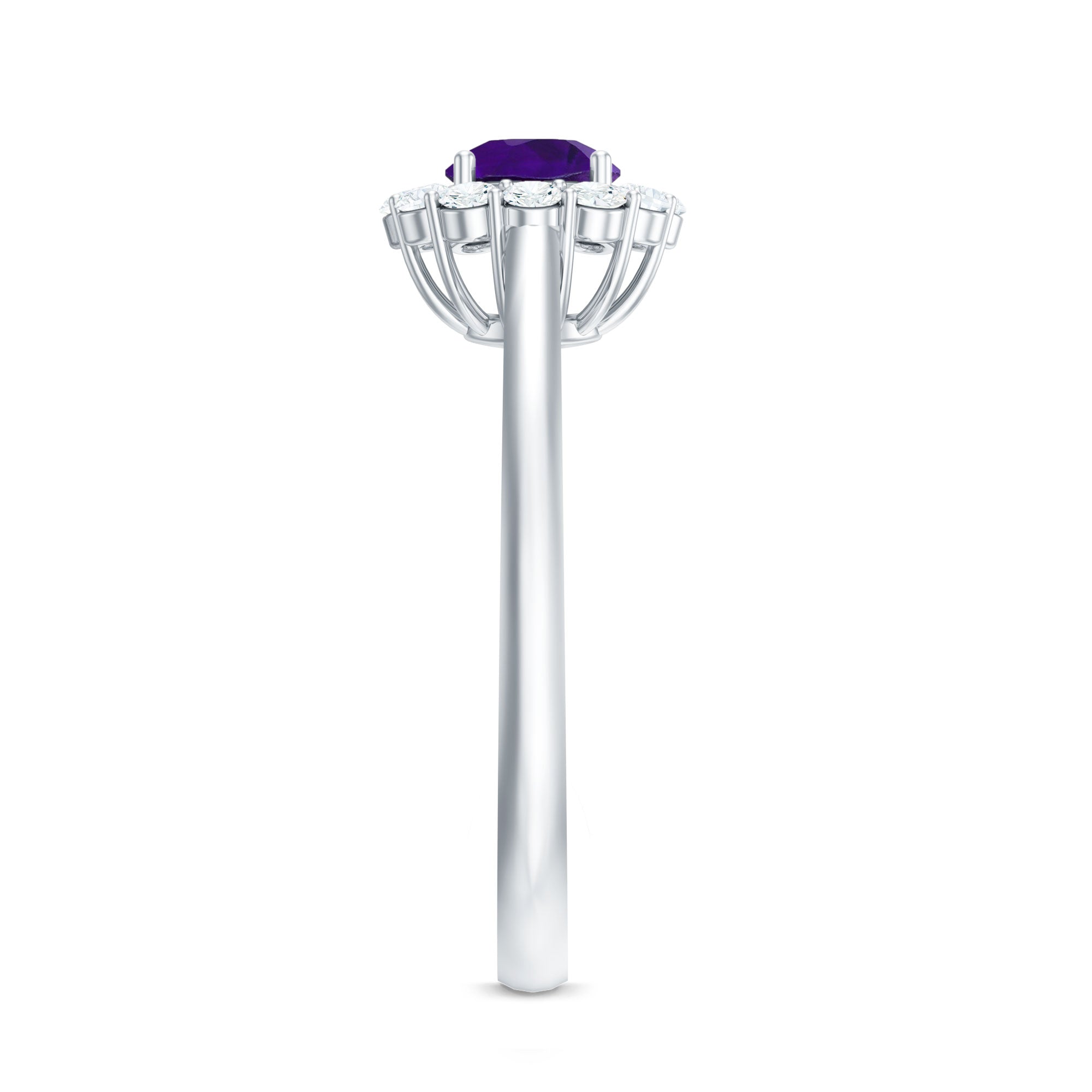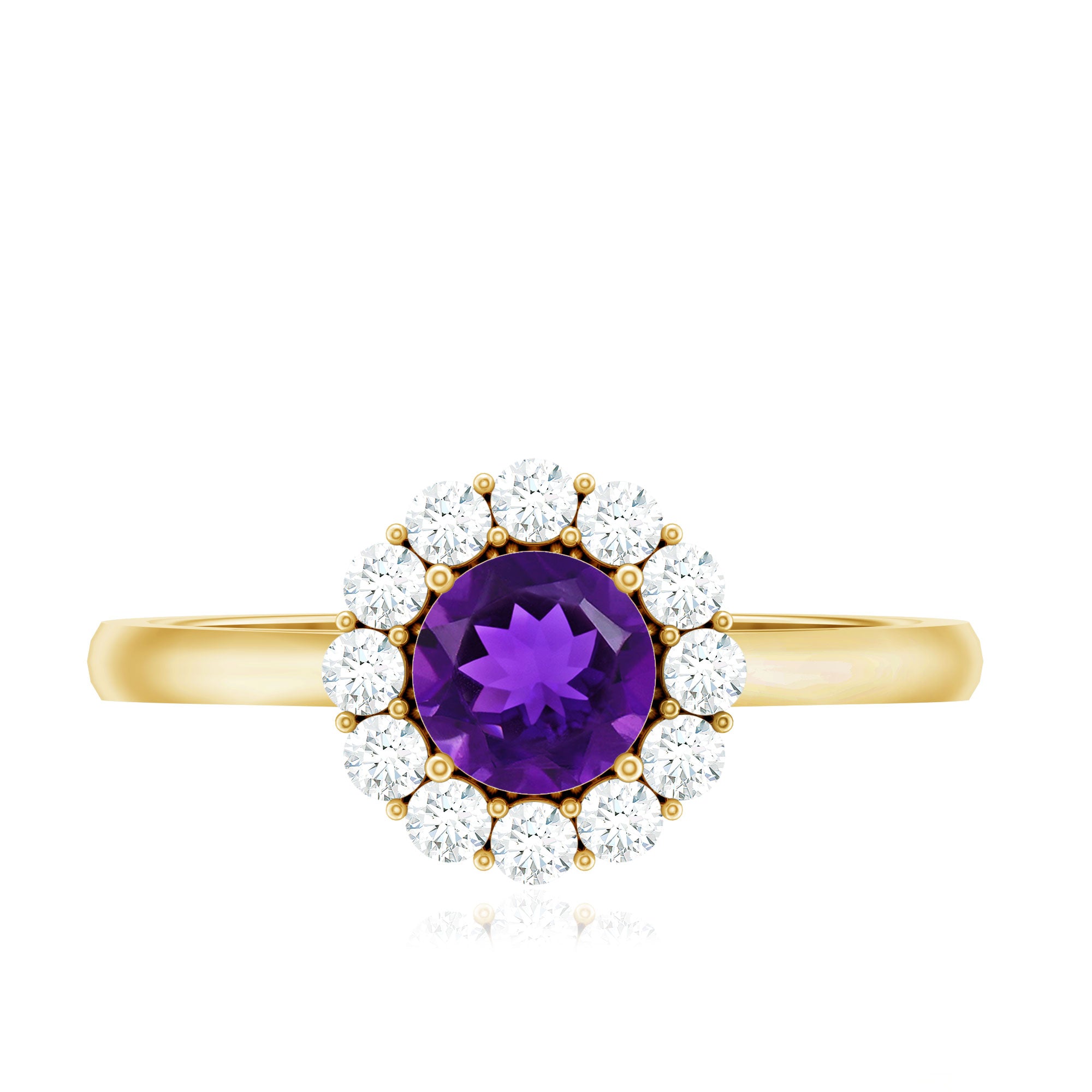Halo gemstone settings are one of the best choices in amethyst engagement rings for women. you can wear these designs on other special occasions like parties, engagements, weddings, and parties.