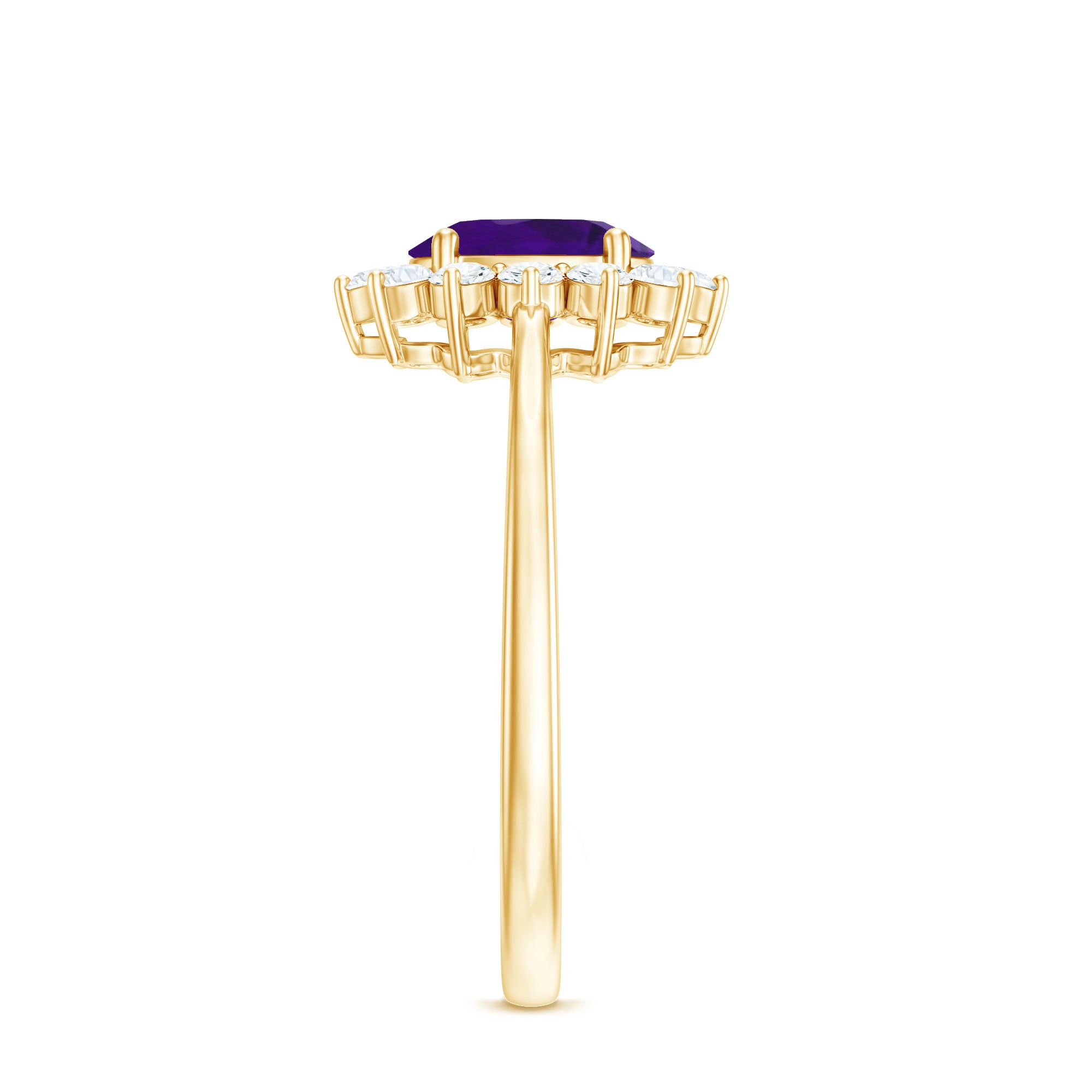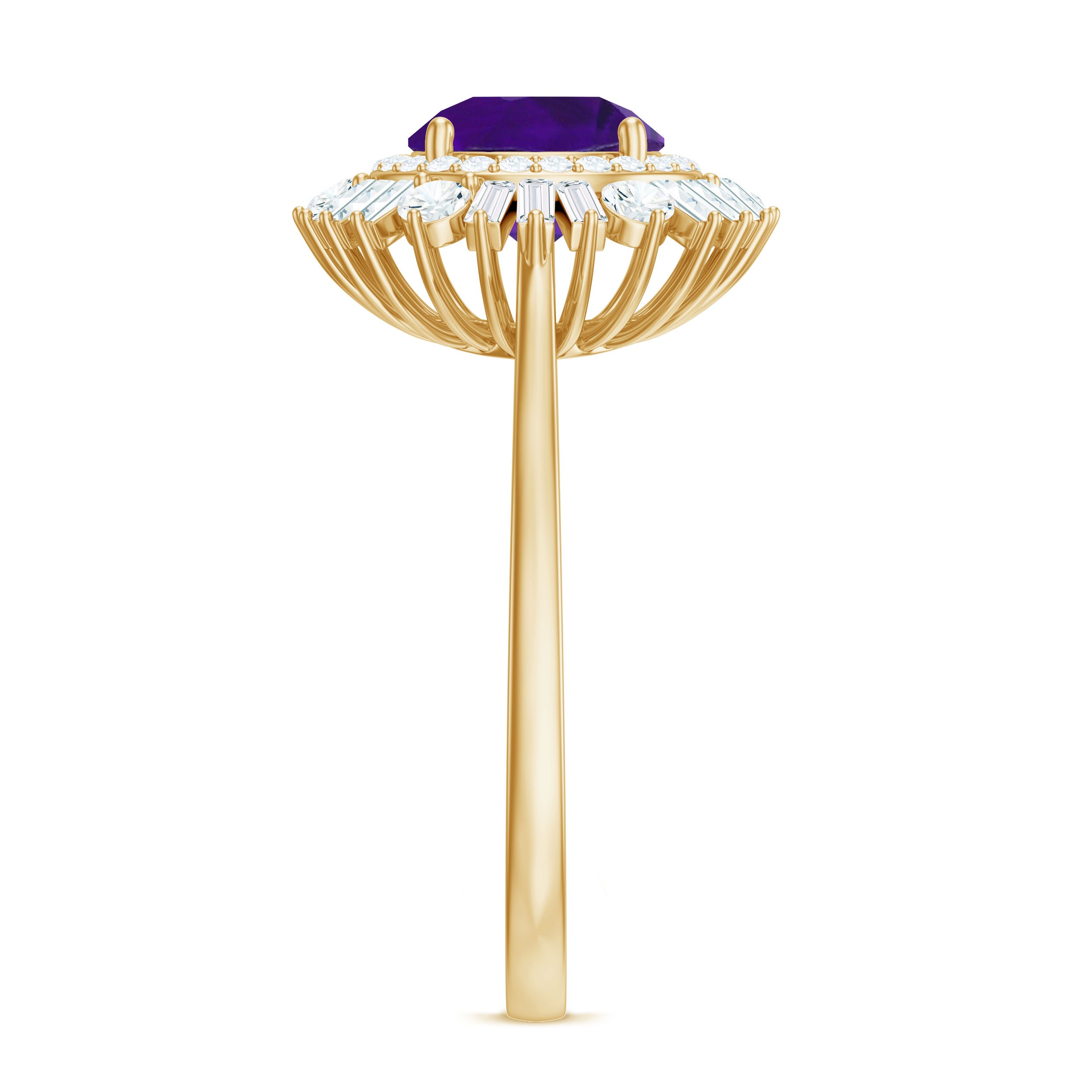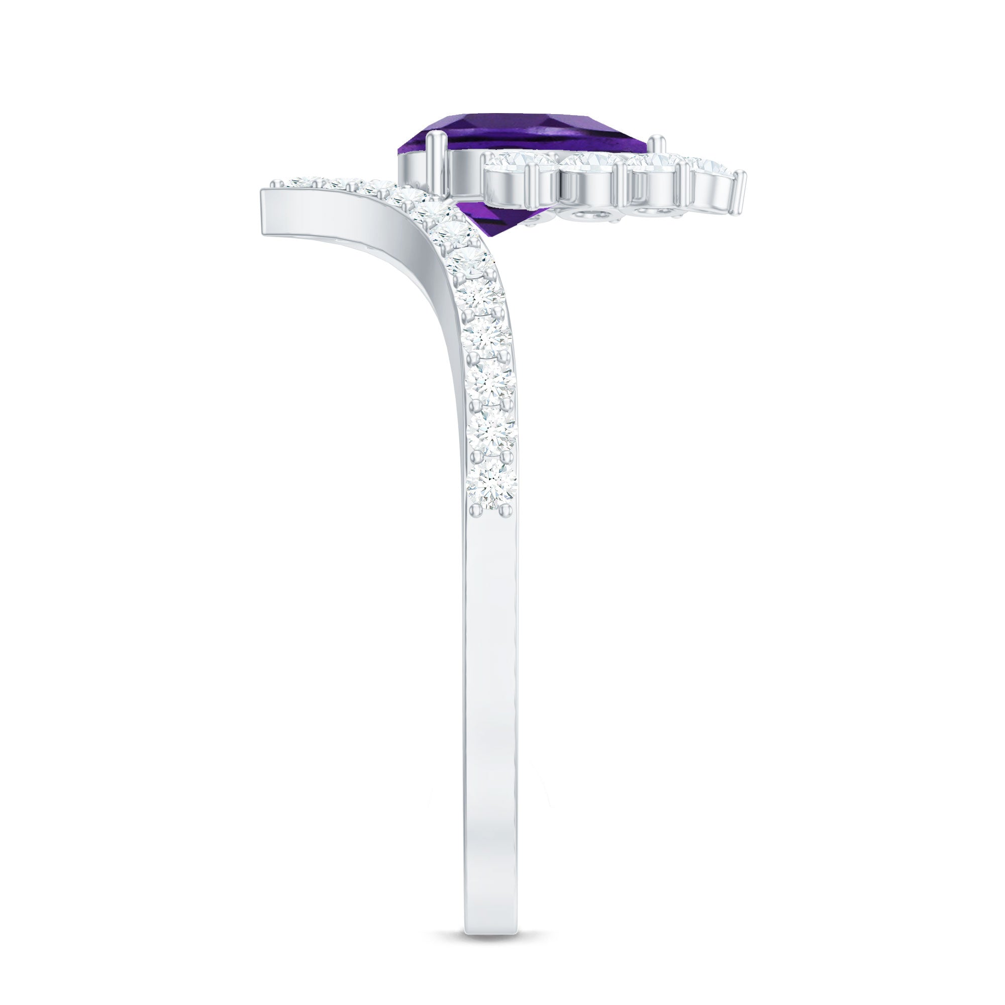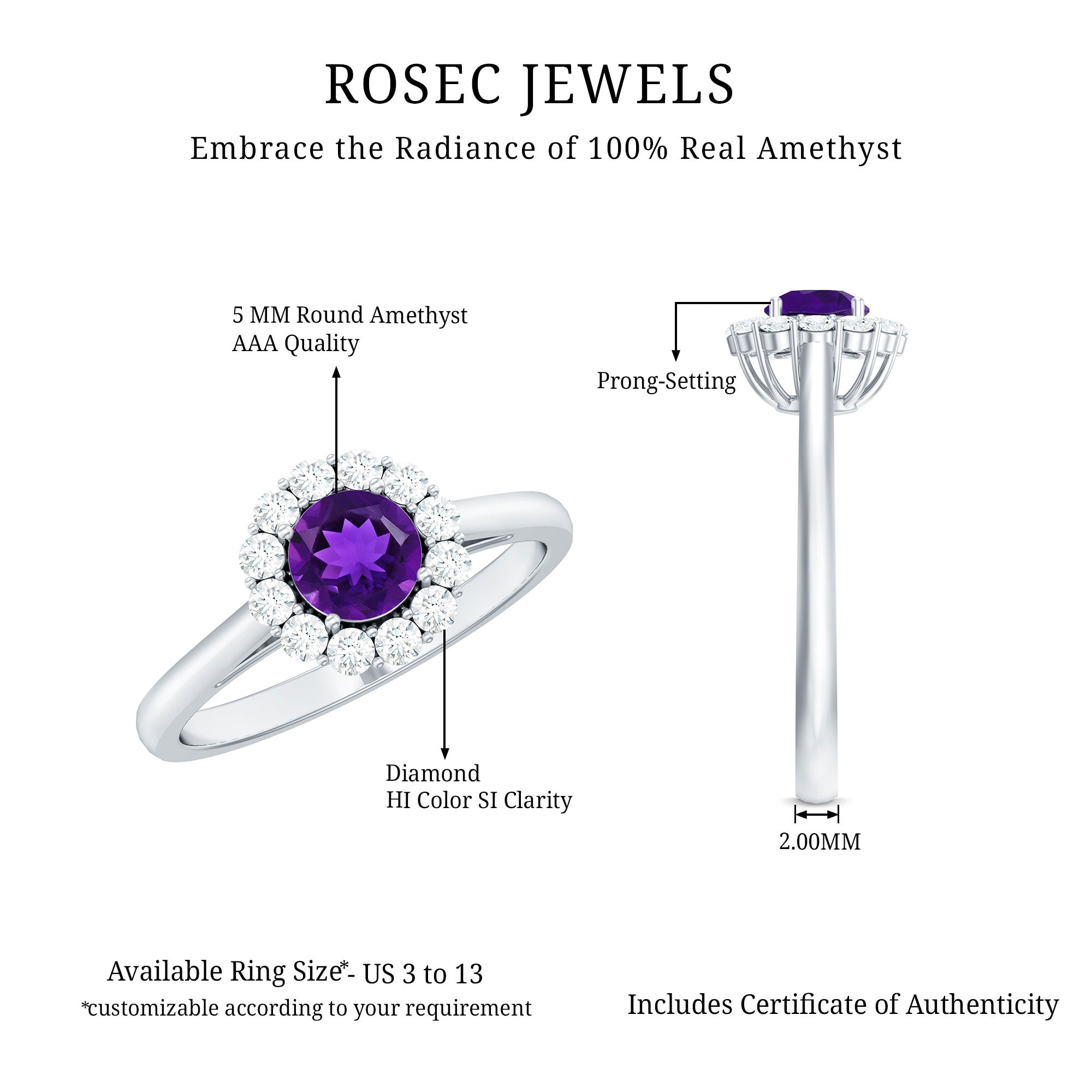Halo gemstone settings are one of the best choices in amethyst engagement rings for women. you can wear these designs on other special occasions like parties, engagements, weddings, and parties.