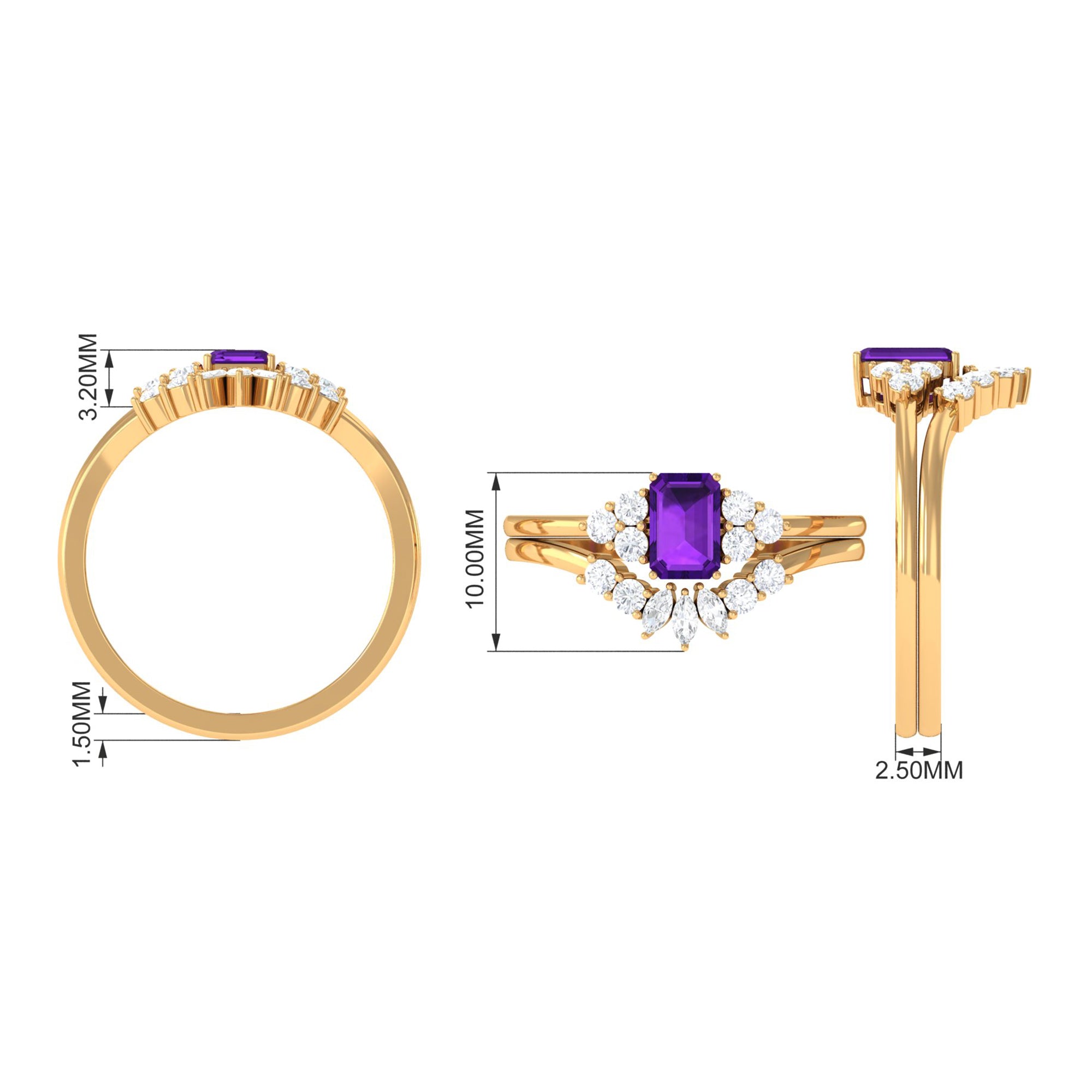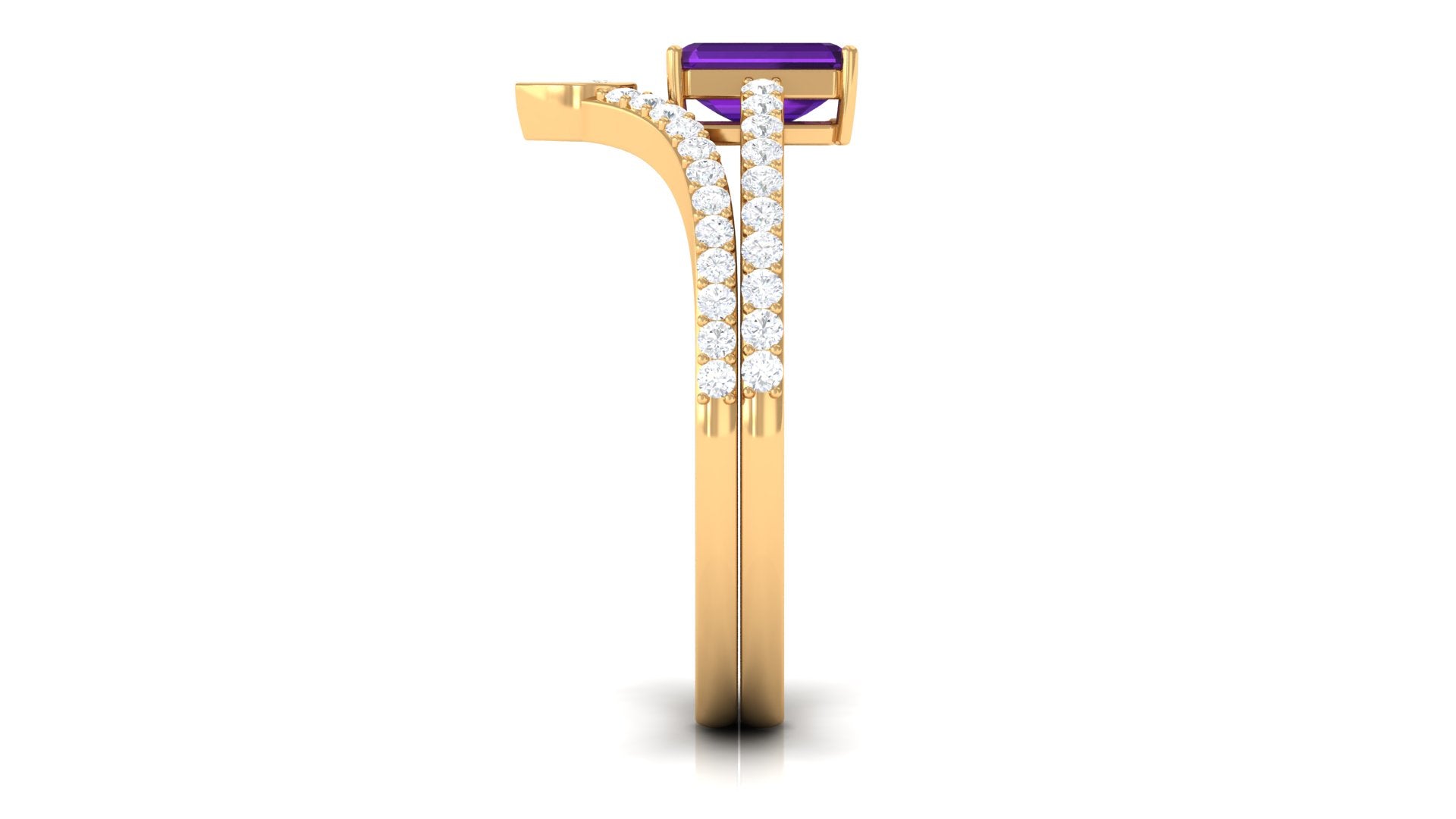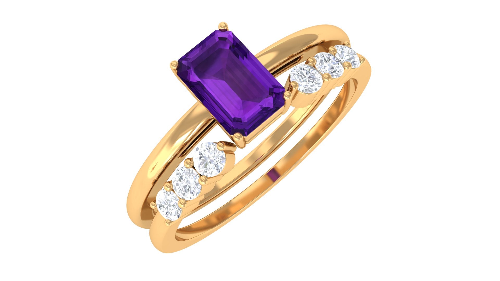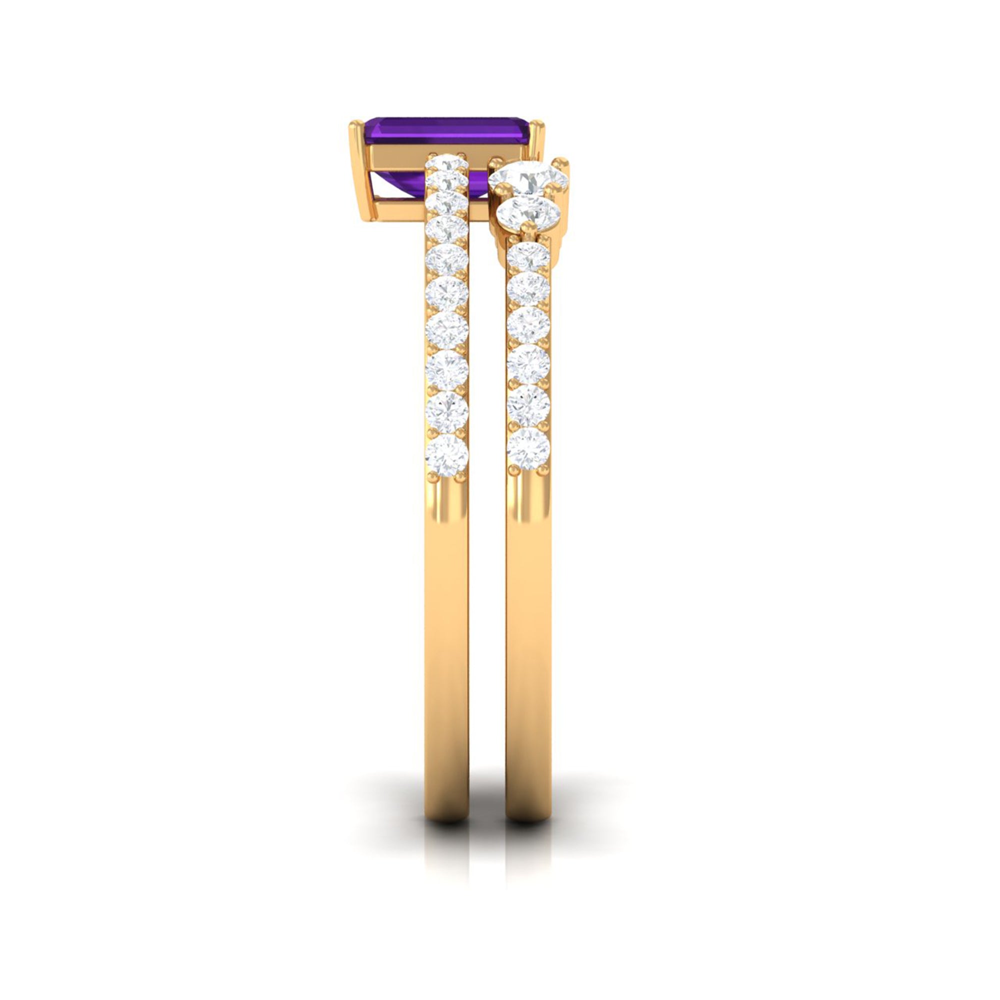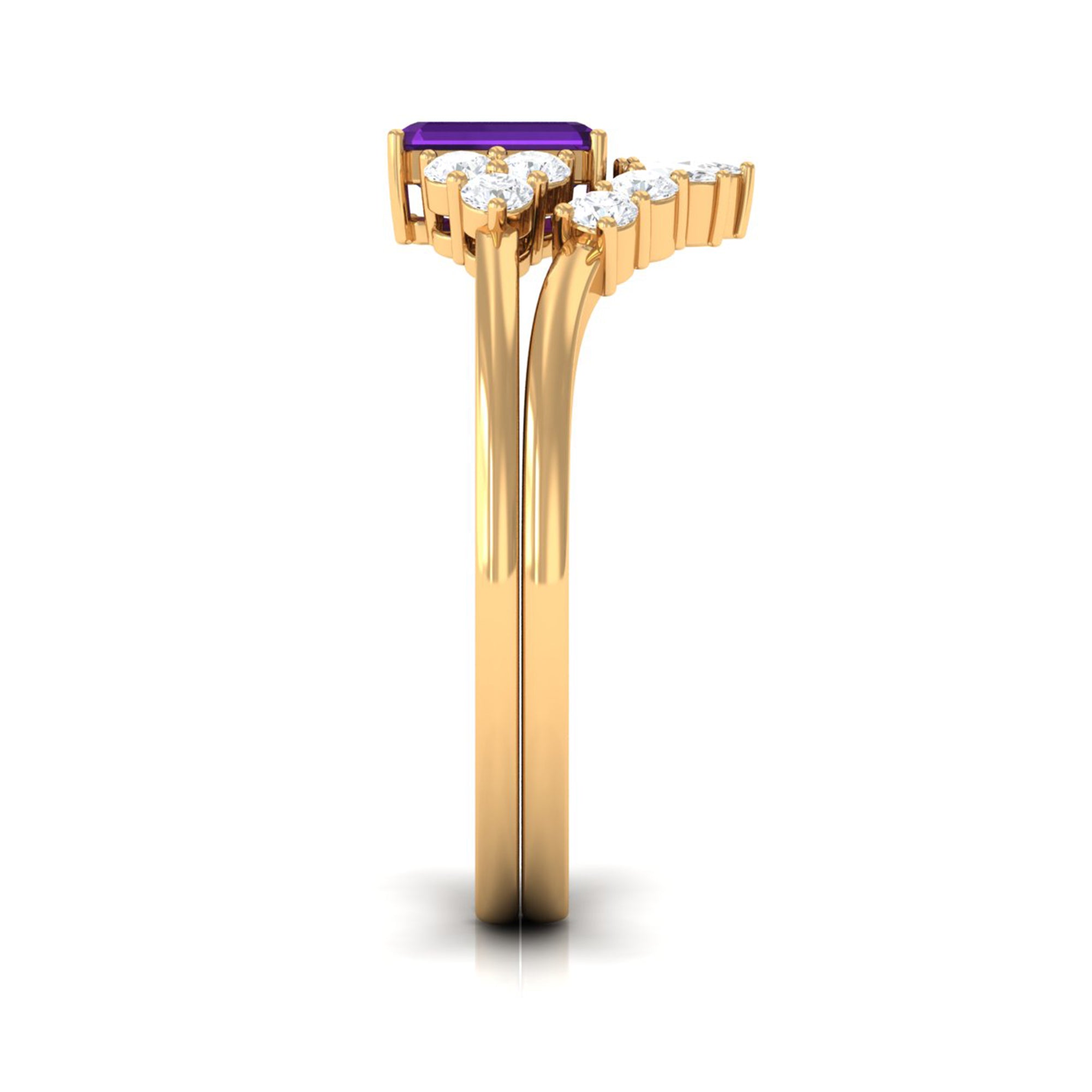 Rosec Jewels’ experienced team of gemologists and artisans are the backbone behind the fine artistic delicacies of our collection of wedding rings for women. After thorough examination of all the quality factors, an amethyst finds it way to wedding rings. An exotic range of amethyst rings for wedding by different combinations of gemstone shapes, gemstone settings and gold embellishments comes handy.