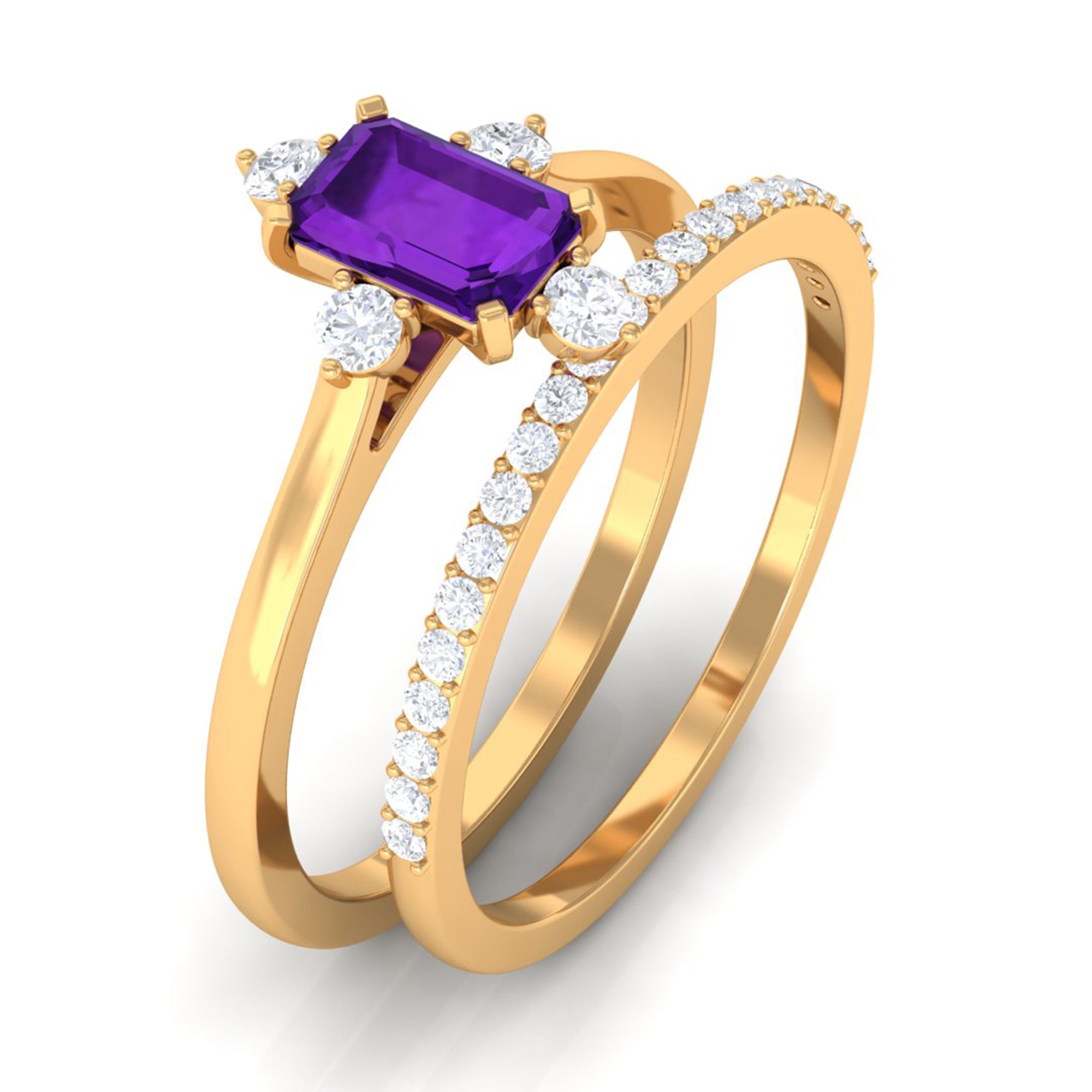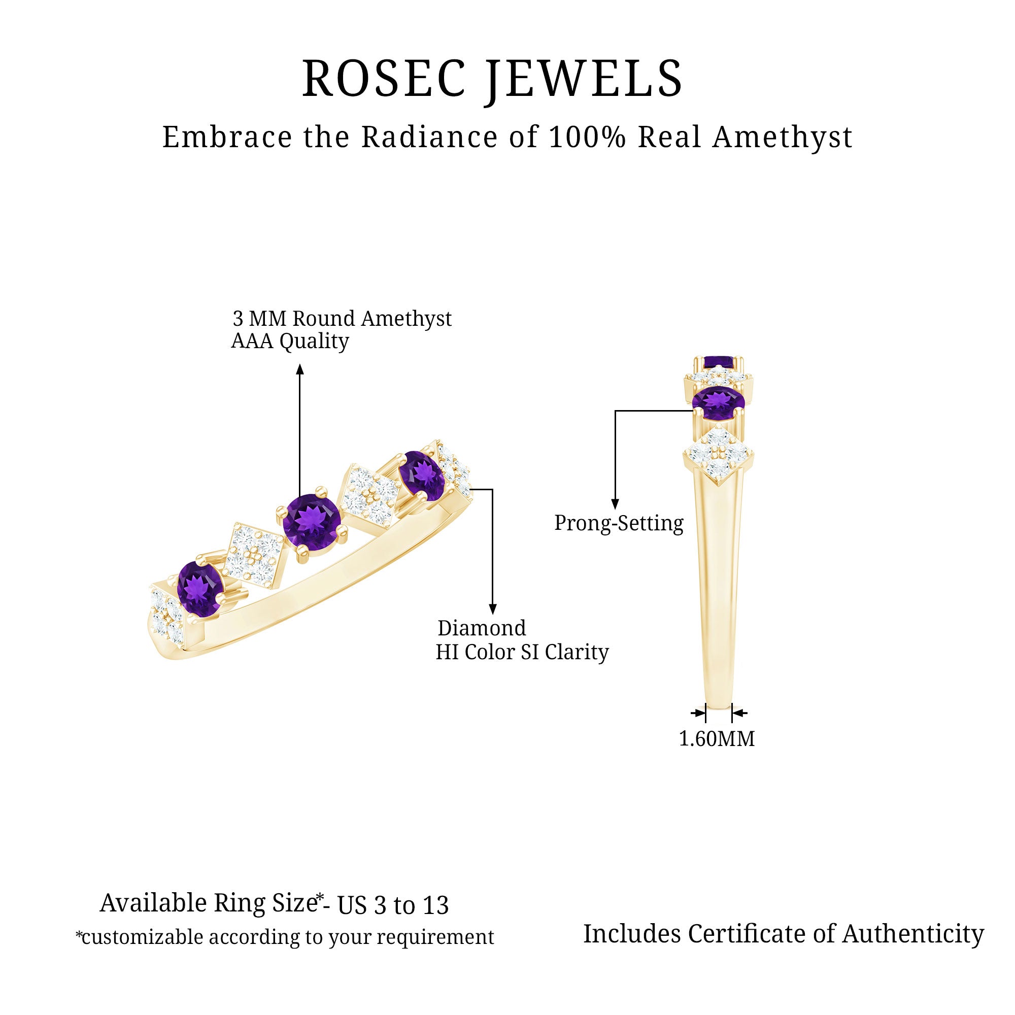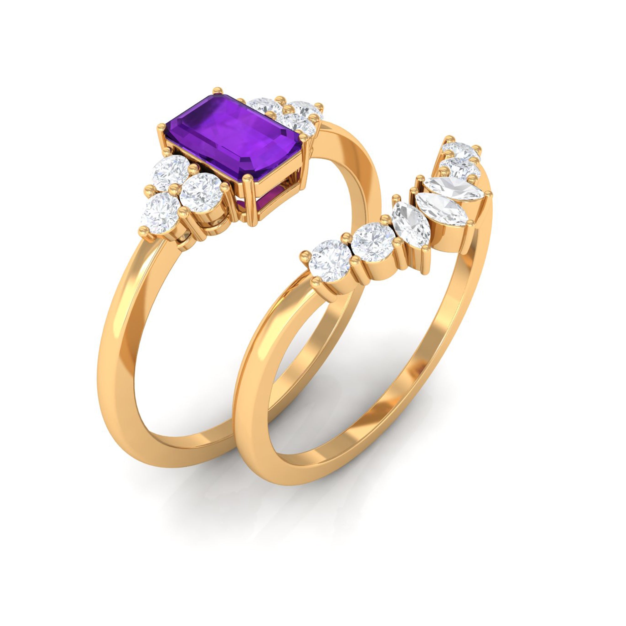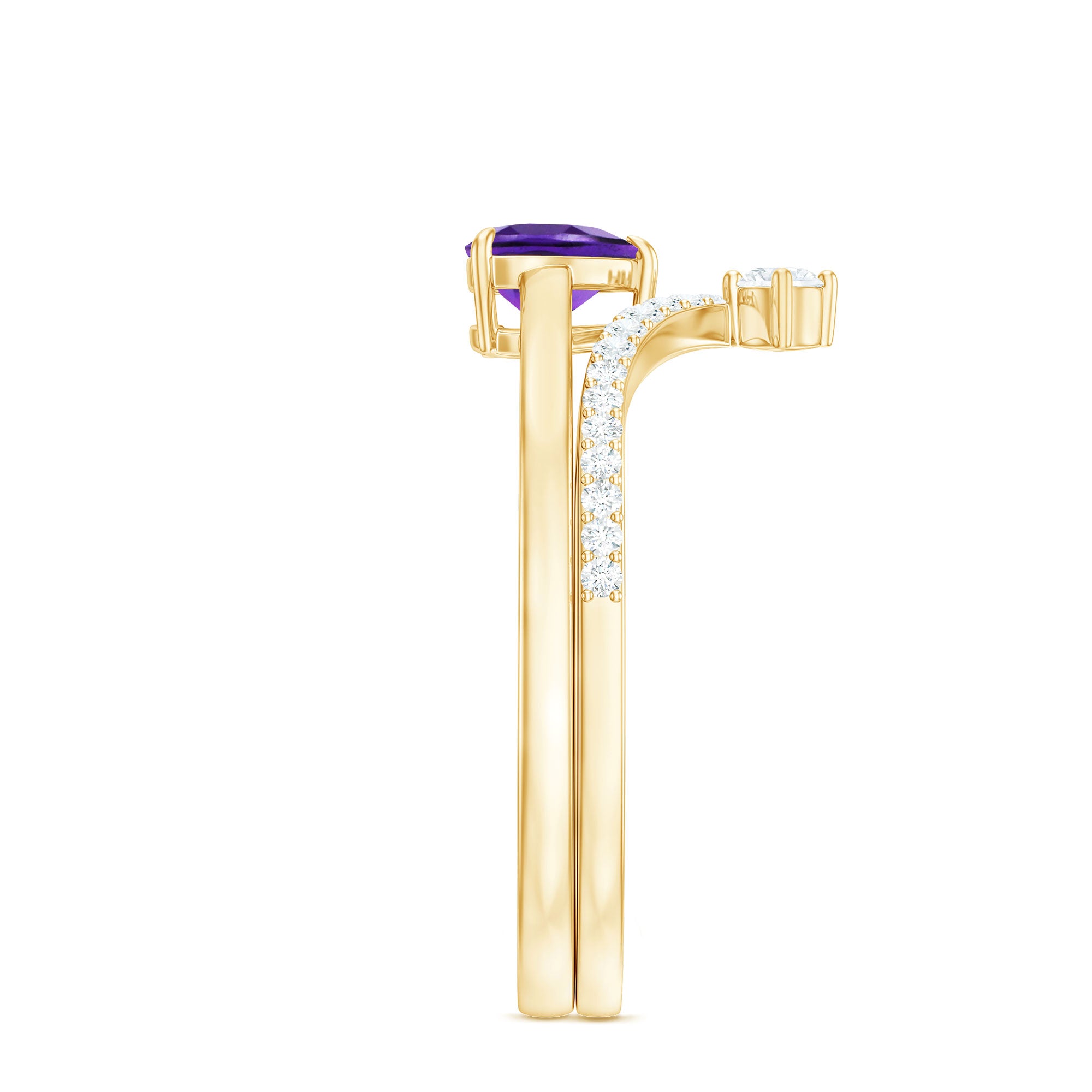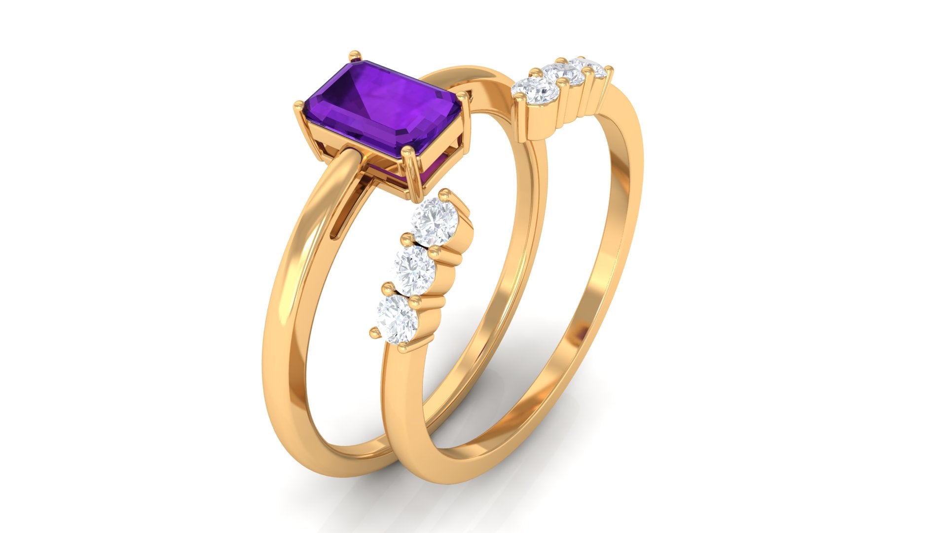 Rosec Jewels’ experienced team of gemologists and artisans are the backbone behind the fine artistic delicacies of our collection of wedding rings for women. After thorough examination of all the quality factors, an amethyst finds it way to wedding rings. An exotic range of amethyst rings for wedding by different combinations of gemstone shapes, gemstone settings and gold embellishments comes handy.