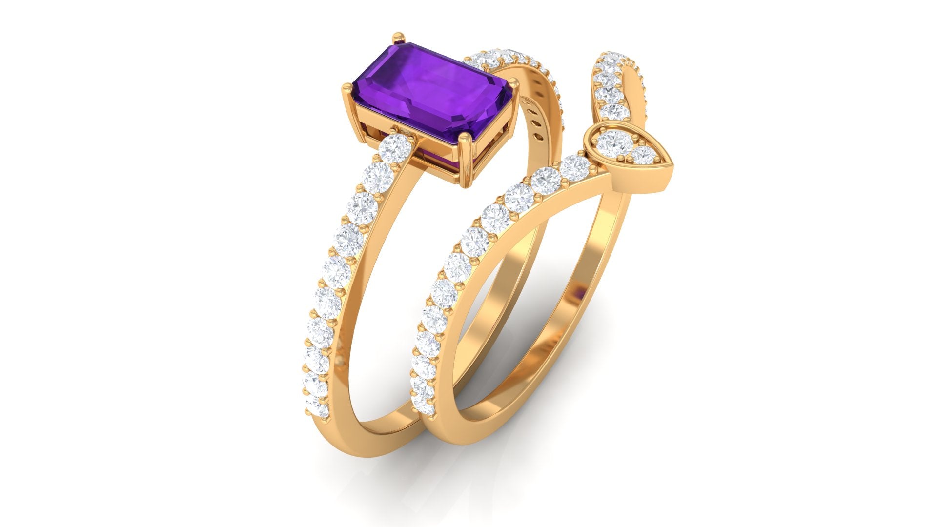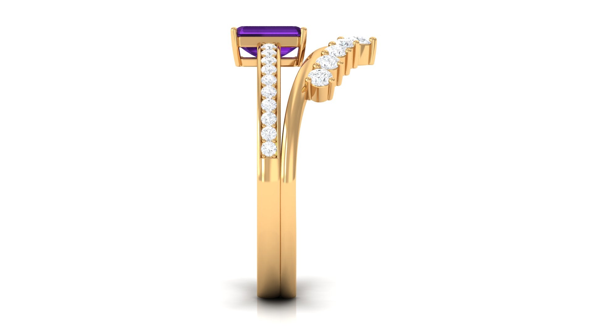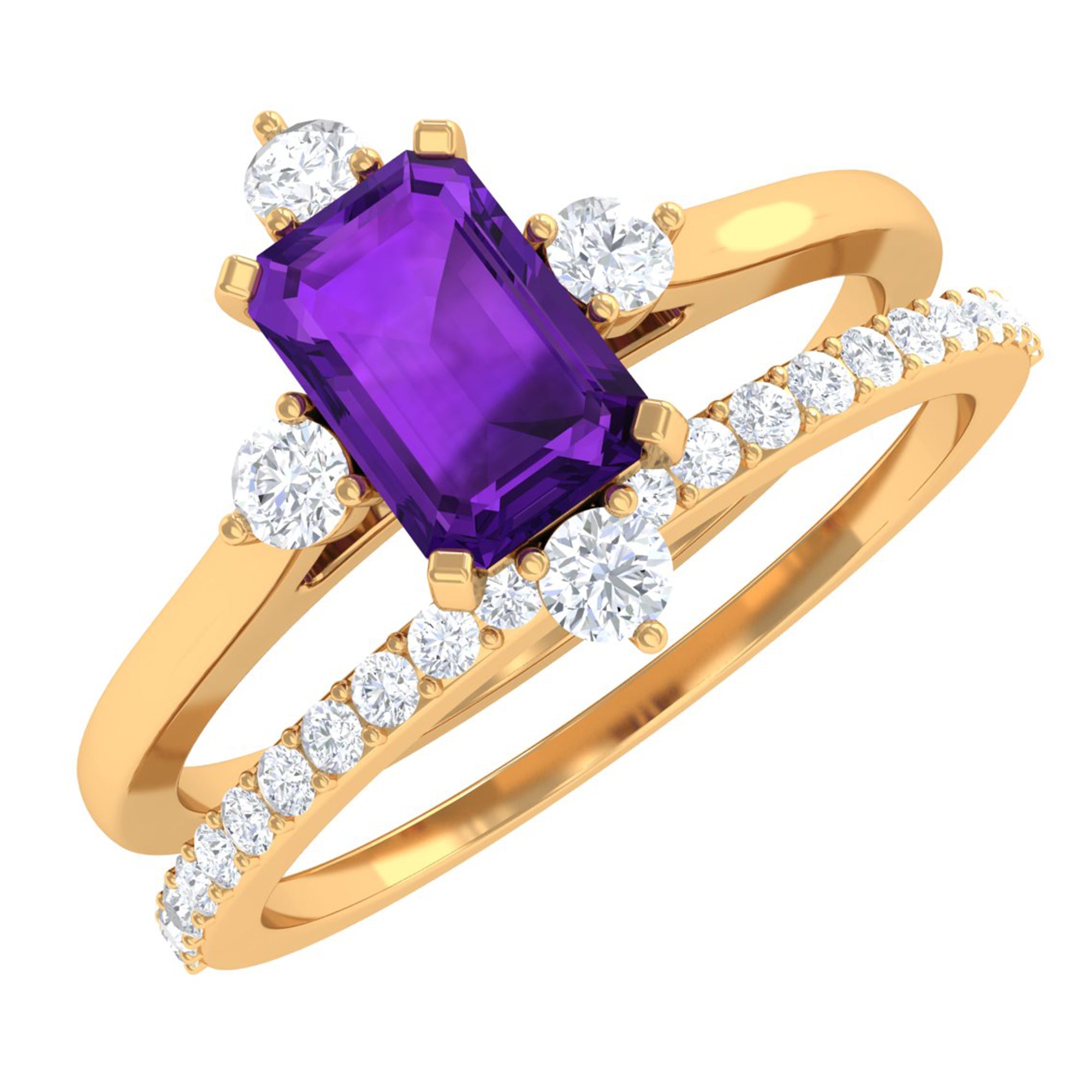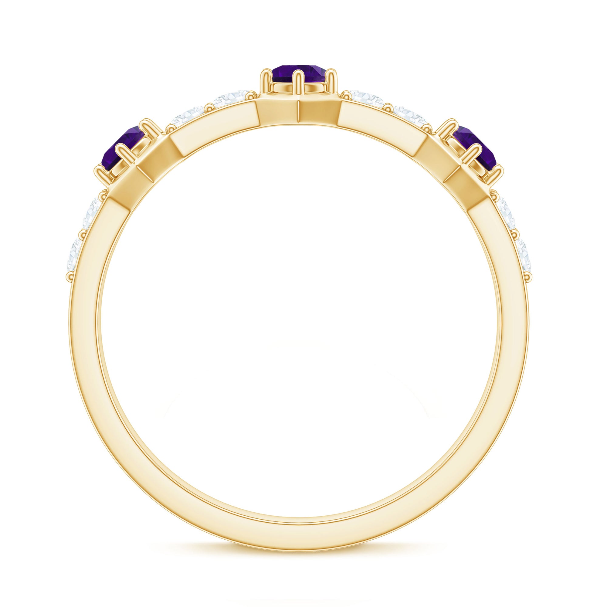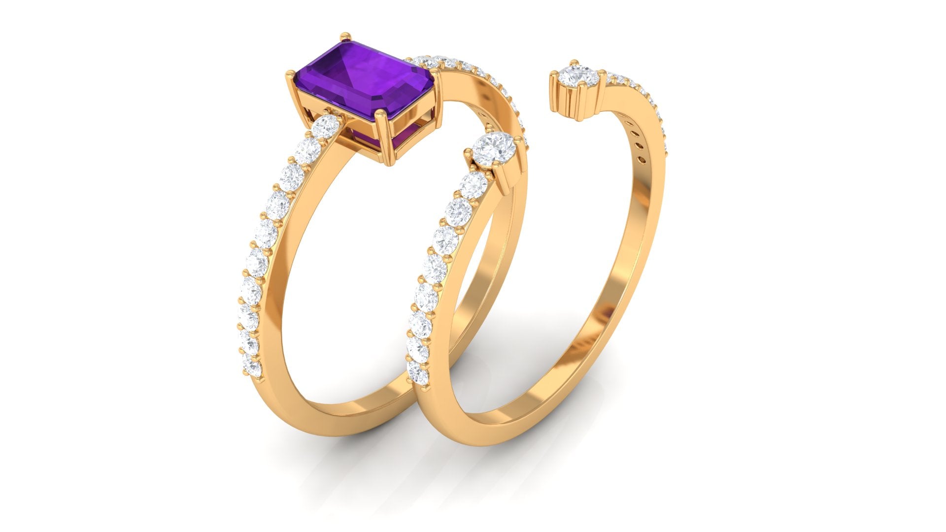 Rosec Jewels’ experienced team of gemologists and artisans are the backbone behind the fine artistic delicacies of our collection of wedding rings for women. After thorough examination of all the quality factors, an amethyst finds it way to wedding rings. An exotic range of amethyst rings for wedding by different combinations of gemstone shapes, gemstone settings and gold embellishments comes handy.