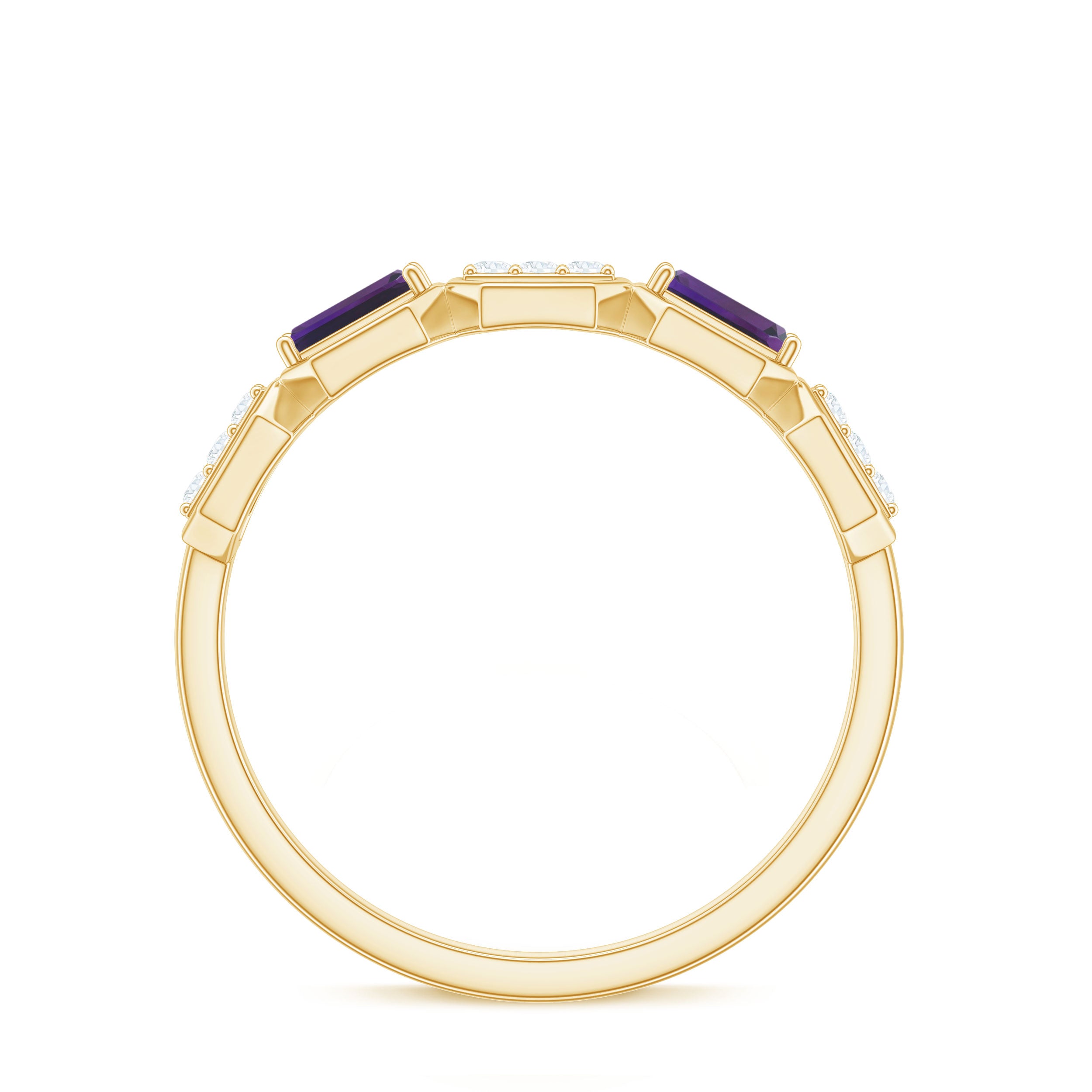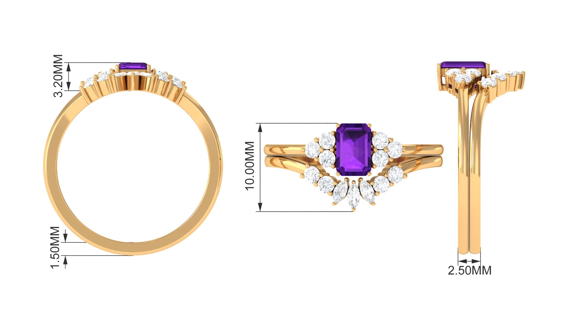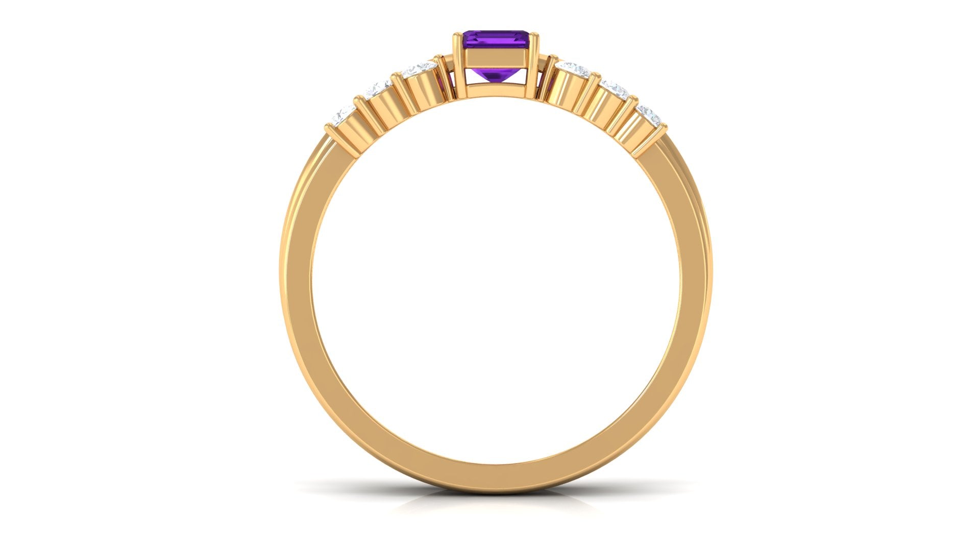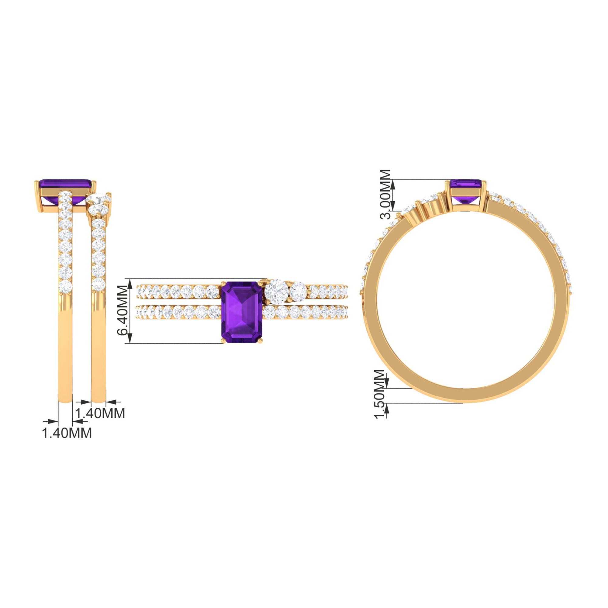 Rosec Jewels’ experienced team of gemologists and artisans are the backbone behind the fine artistic delicacies of our collection of wedding rings for women. After thorough examination of all the quality factors, an amethyst finds it way to wedding rings. An exotic range of amethyst rings for wedding by different combinations of gemstone shapes, gemstone settings and gold embellishments comes handy.