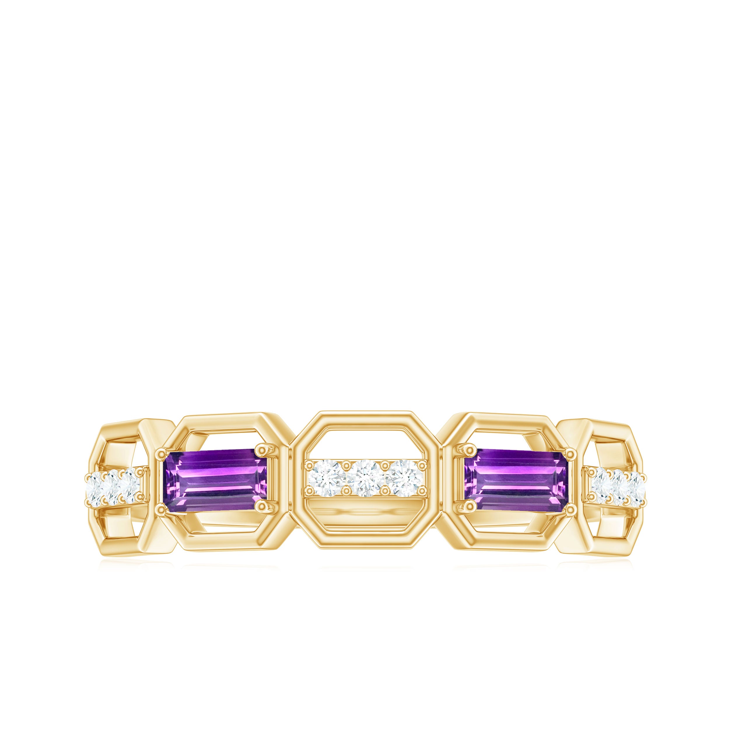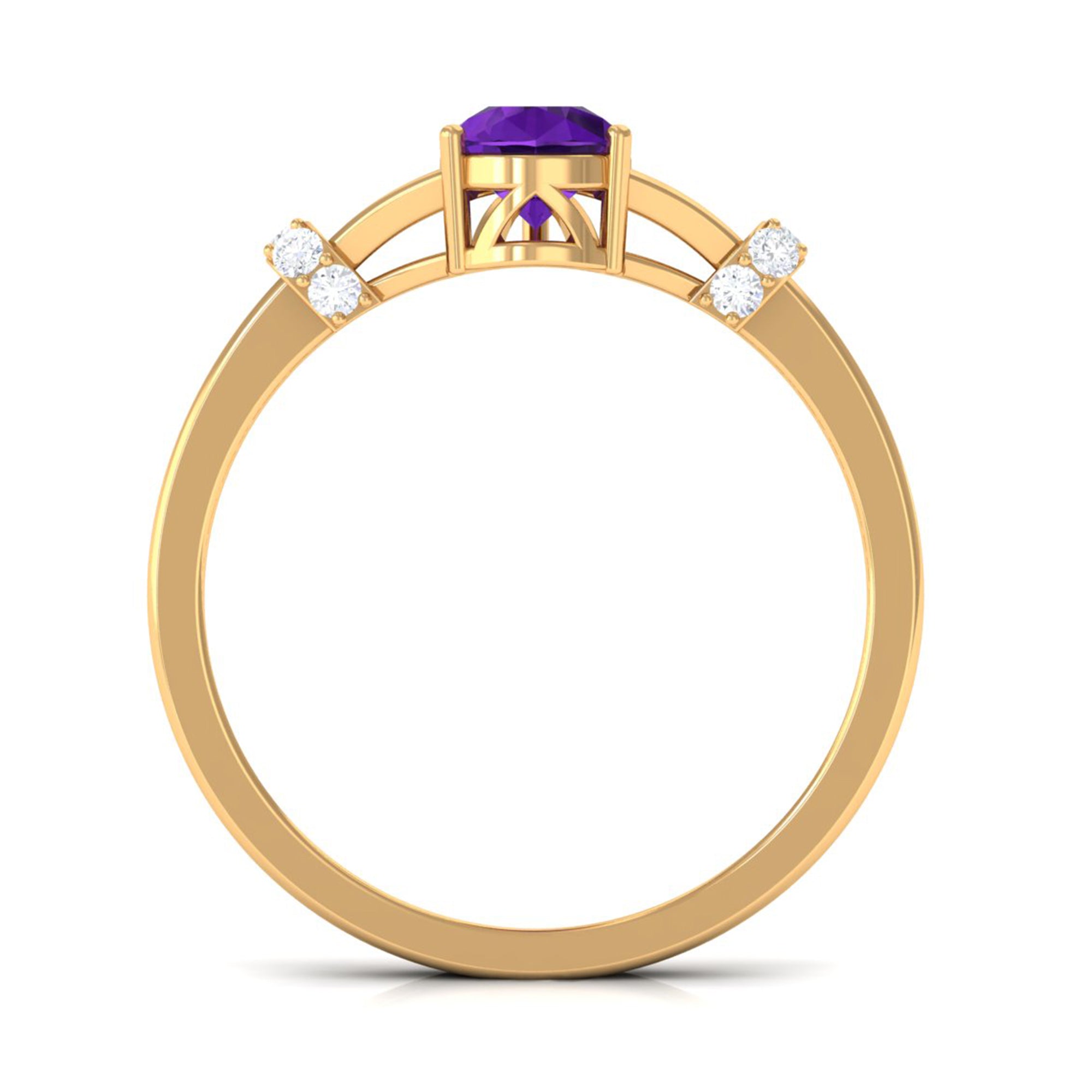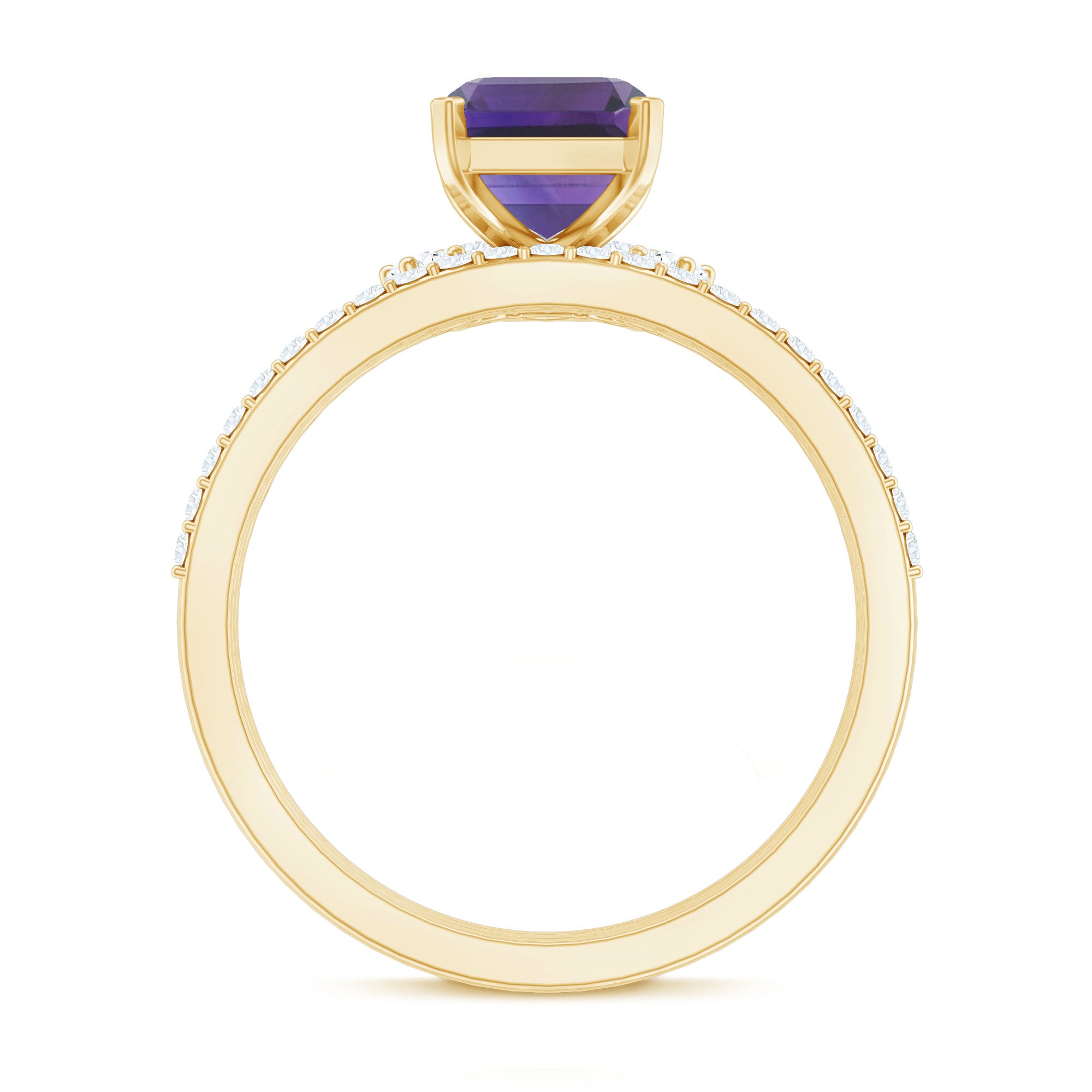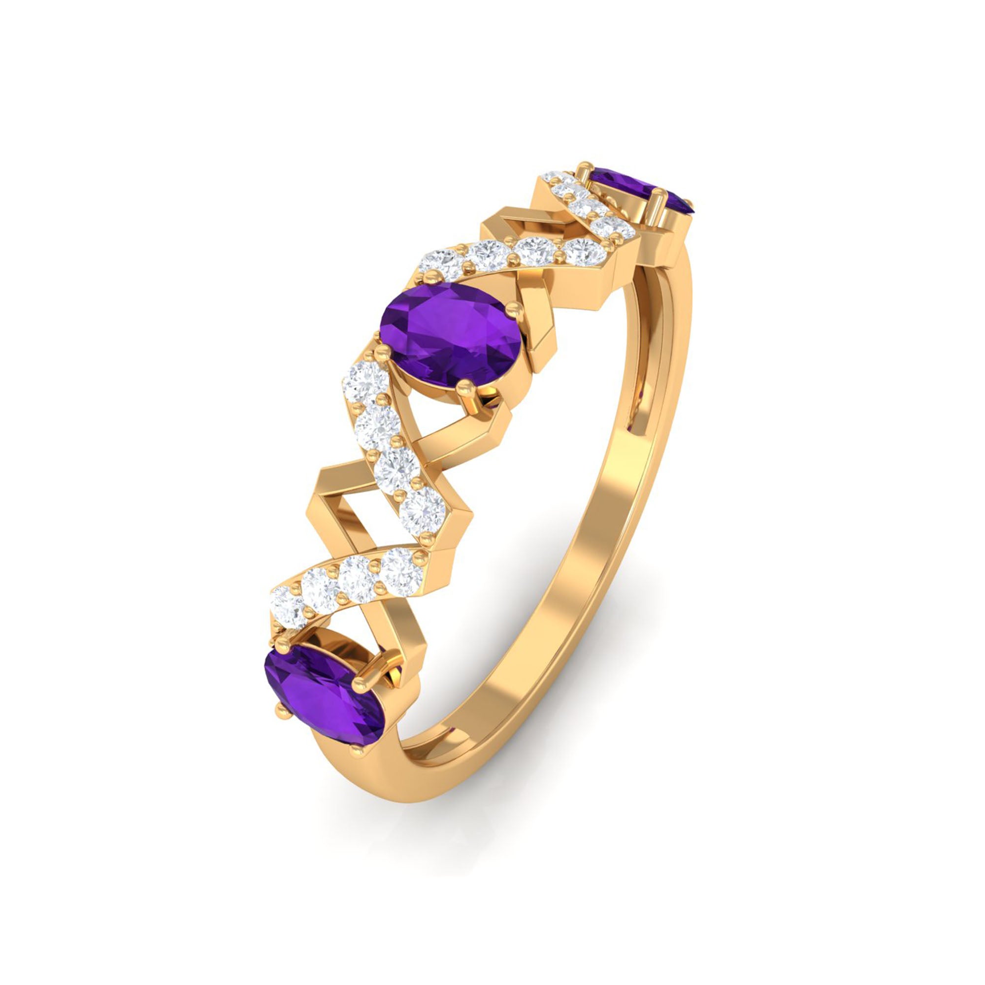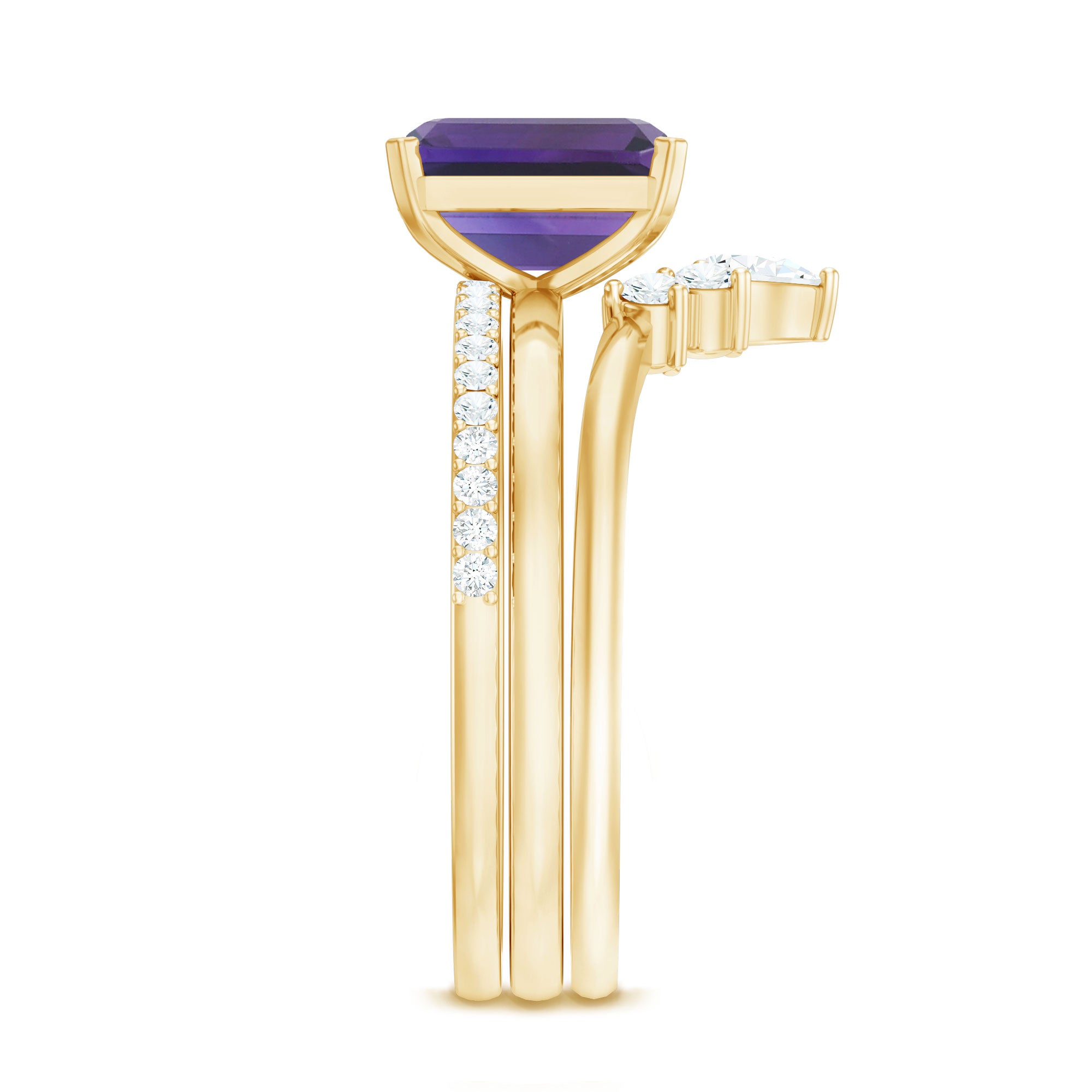 Rosec Jewels’ experienced team of gemologists and artisans are the backbone behind the fine artistic delicacies of our collection of wedding rings for women. After thorough examination of all the quality factors, an amethyst finds it way to wedding rings. An exotic range of amethyst rings for wedding by different combinations of gemstone shapes, gemstone settings and gold embellishments comes handy.