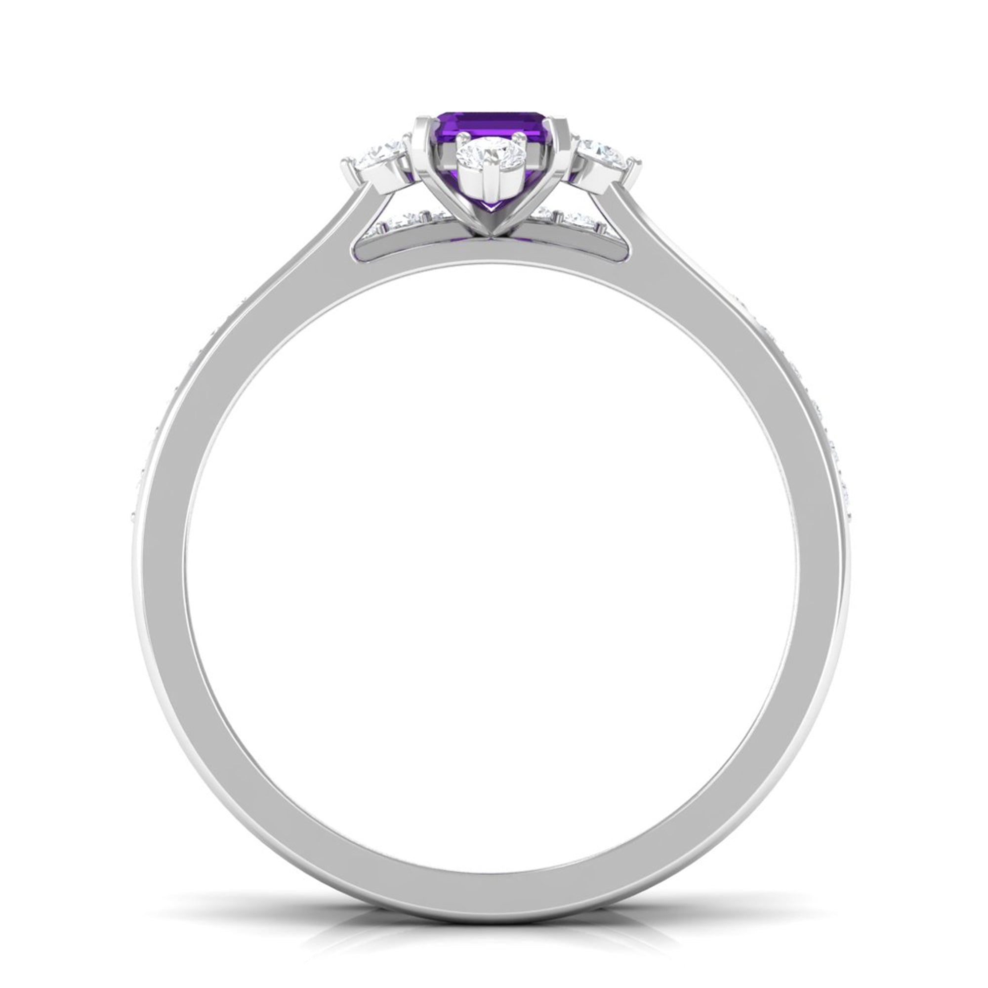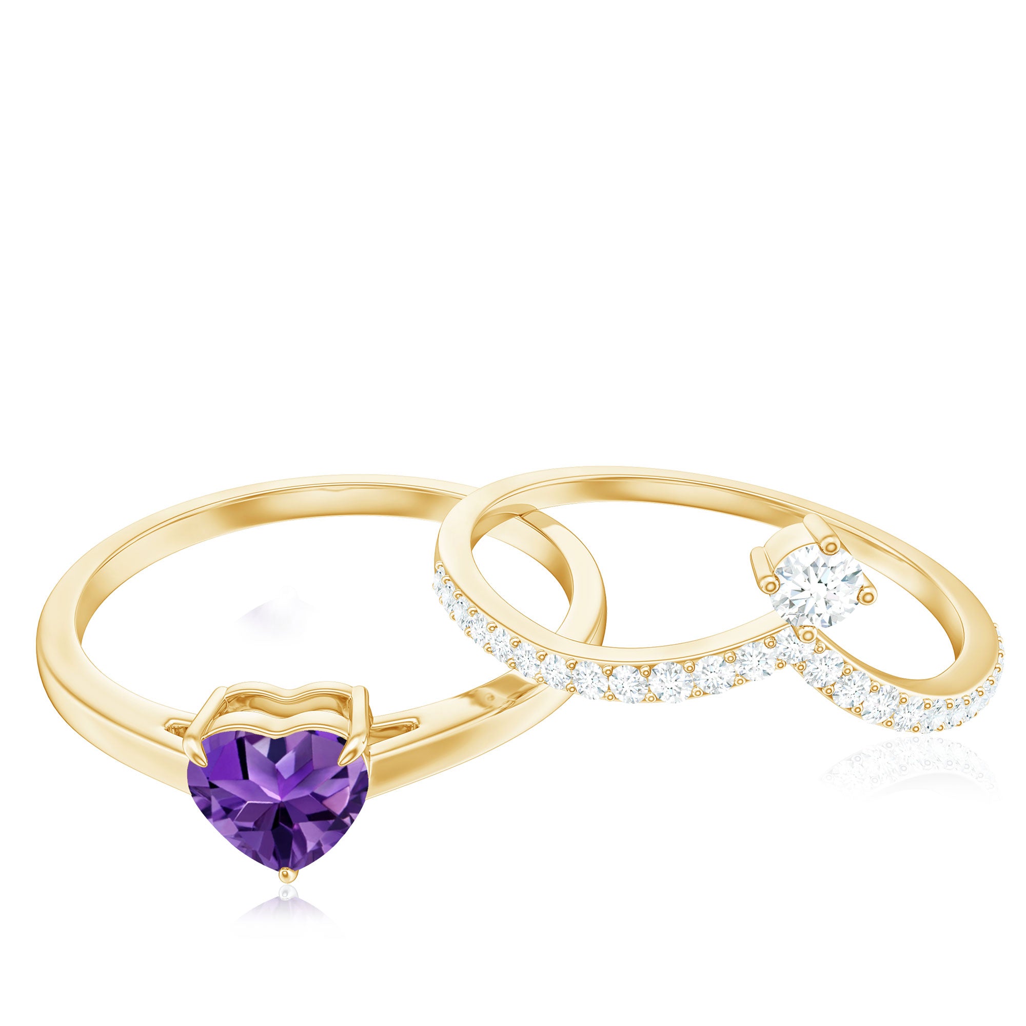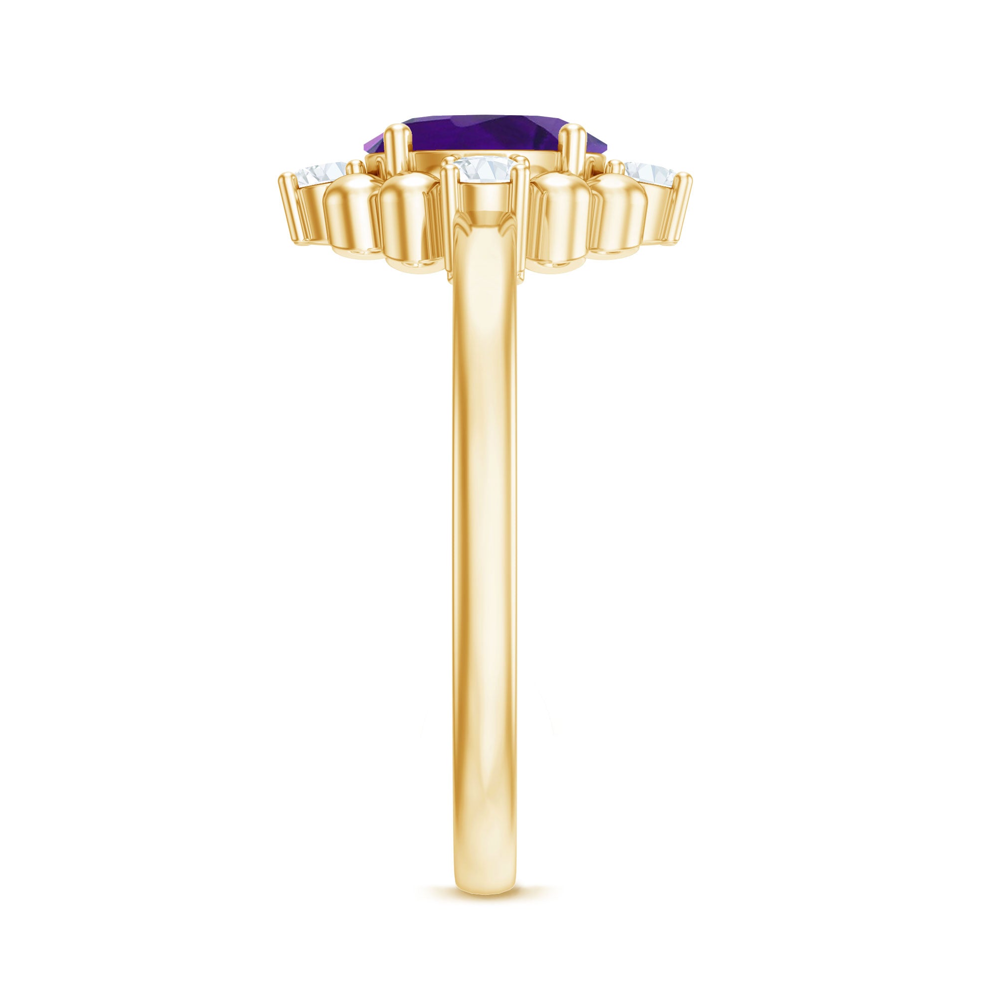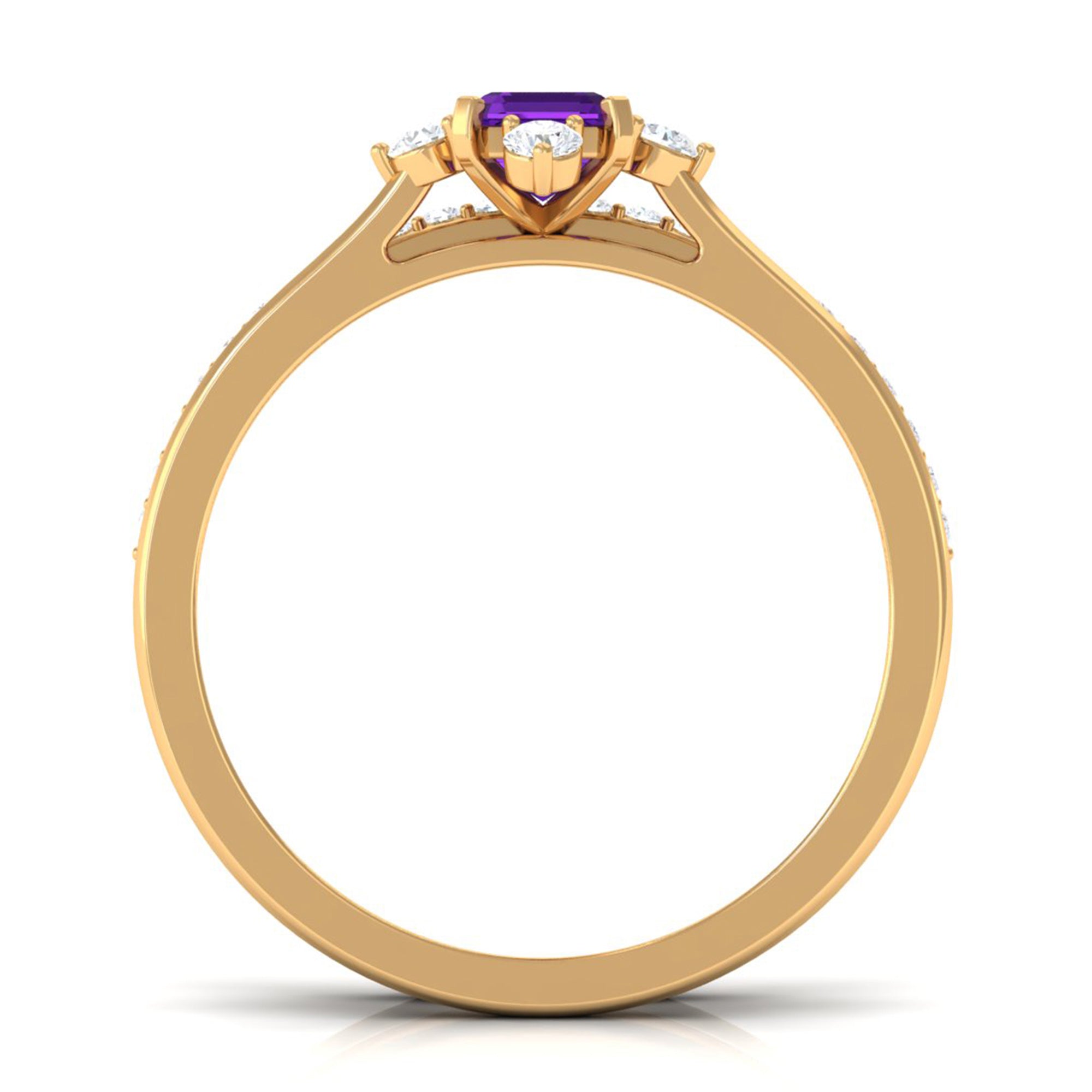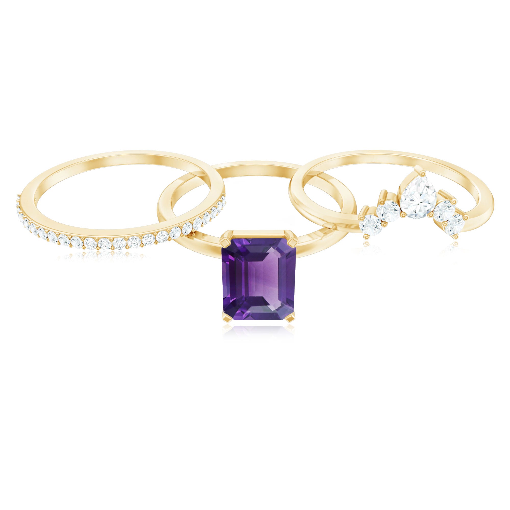 Rosec Jewels’ experienced team of gemologists and artisans are the backbone behind the fine artistic delicacies of our collection of wedding rings for women. After thorough examination of all the quality factors, an amethyst finds it way to wedding rings. An exotic range of amethyst rings for wedding by different combinations of gemstone shapes, gemstone settings and gold embellishments comes handy.