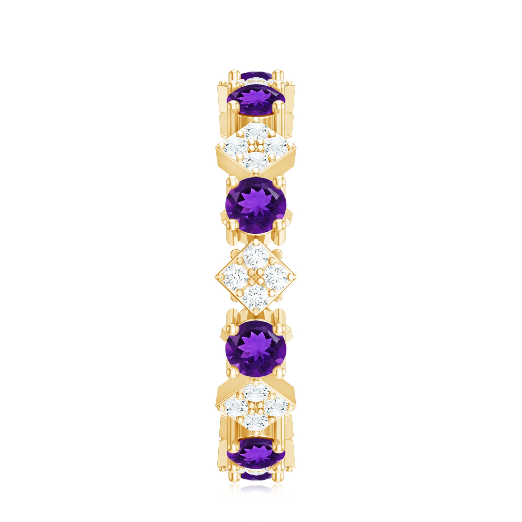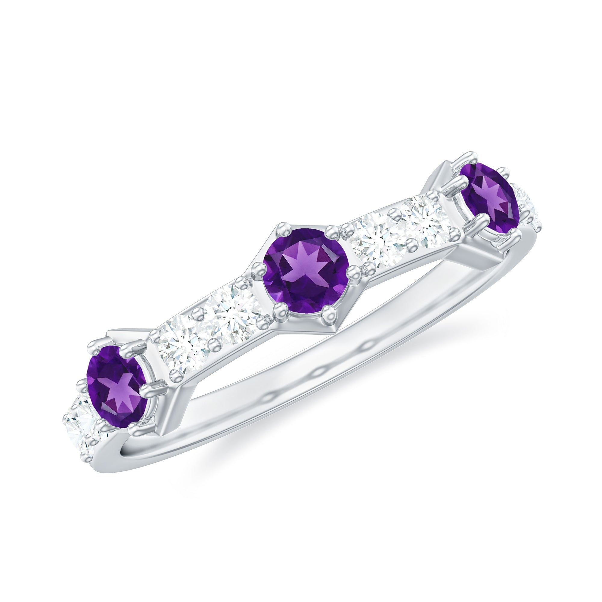 • Clarity: Amethyst wedding bands must be looked for eye-clean gemstones in case of faceted amethysts.