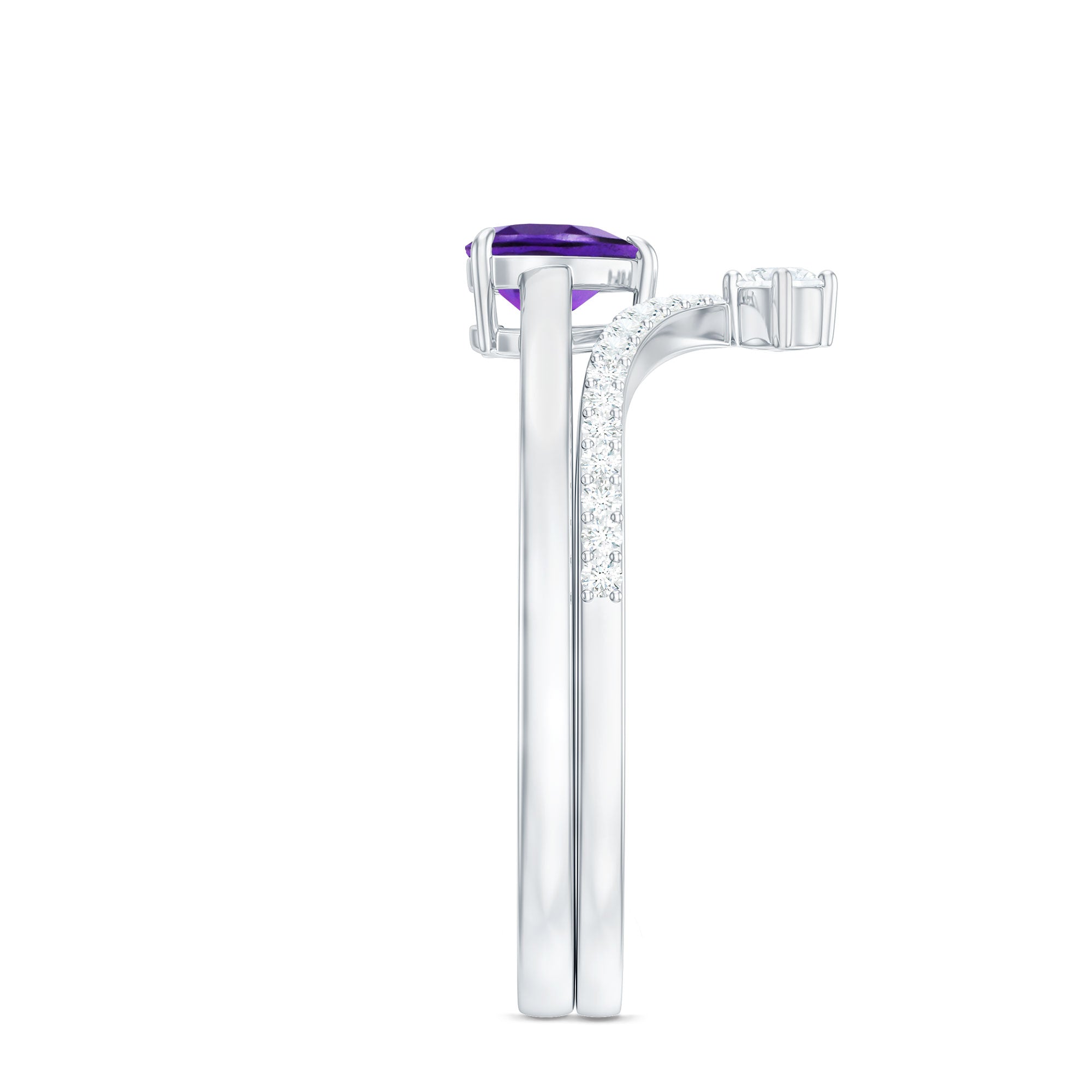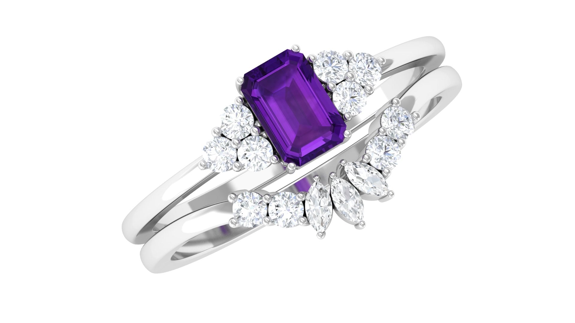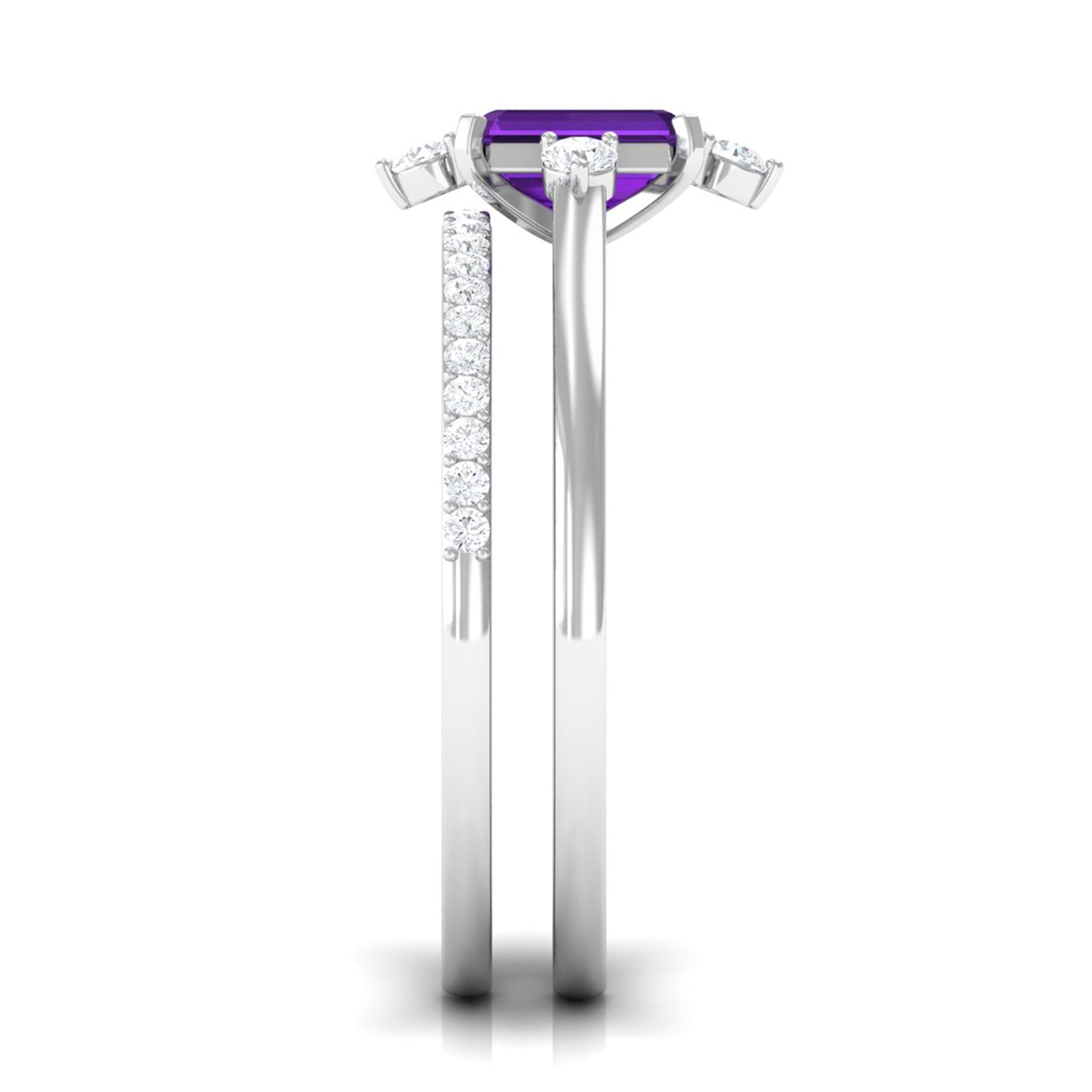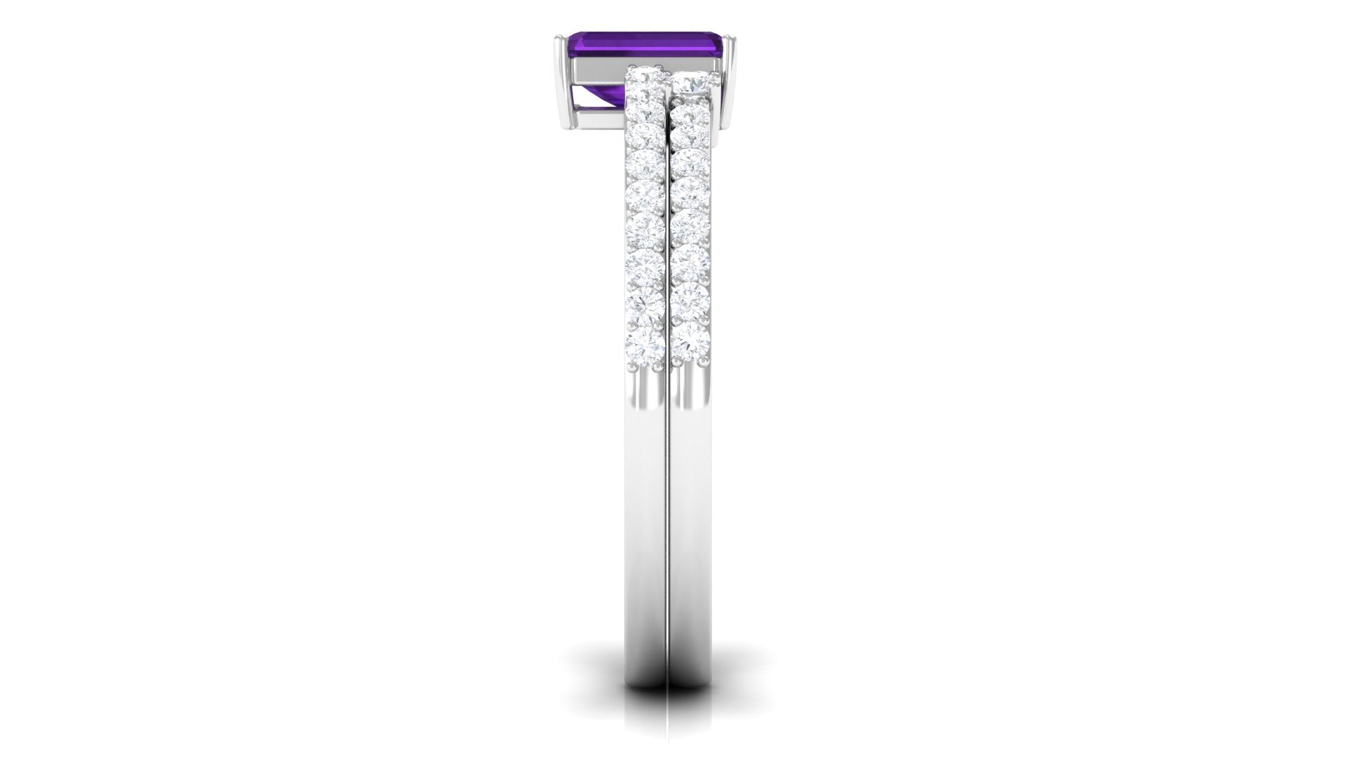 Let our amethyst wedding rings bear witness to your marriage vows with its alluring purple hues to let her heart go merry. The adorable purple gemstone of the quartz family has been a growing popularity among jewelers to craft fantastic amethyst wedding bands. The birthstone of February is believed to have positive influence on the wearer born in February. The considerable hardness and the mesmerizing beauty make amethyst a suitability when it comes to designing non-traditional amethyst wedding ring set for couples.