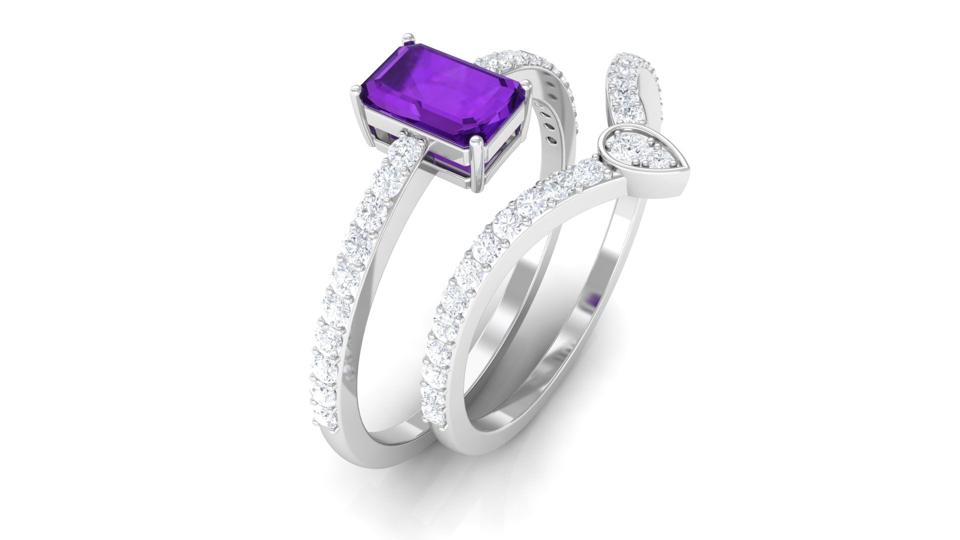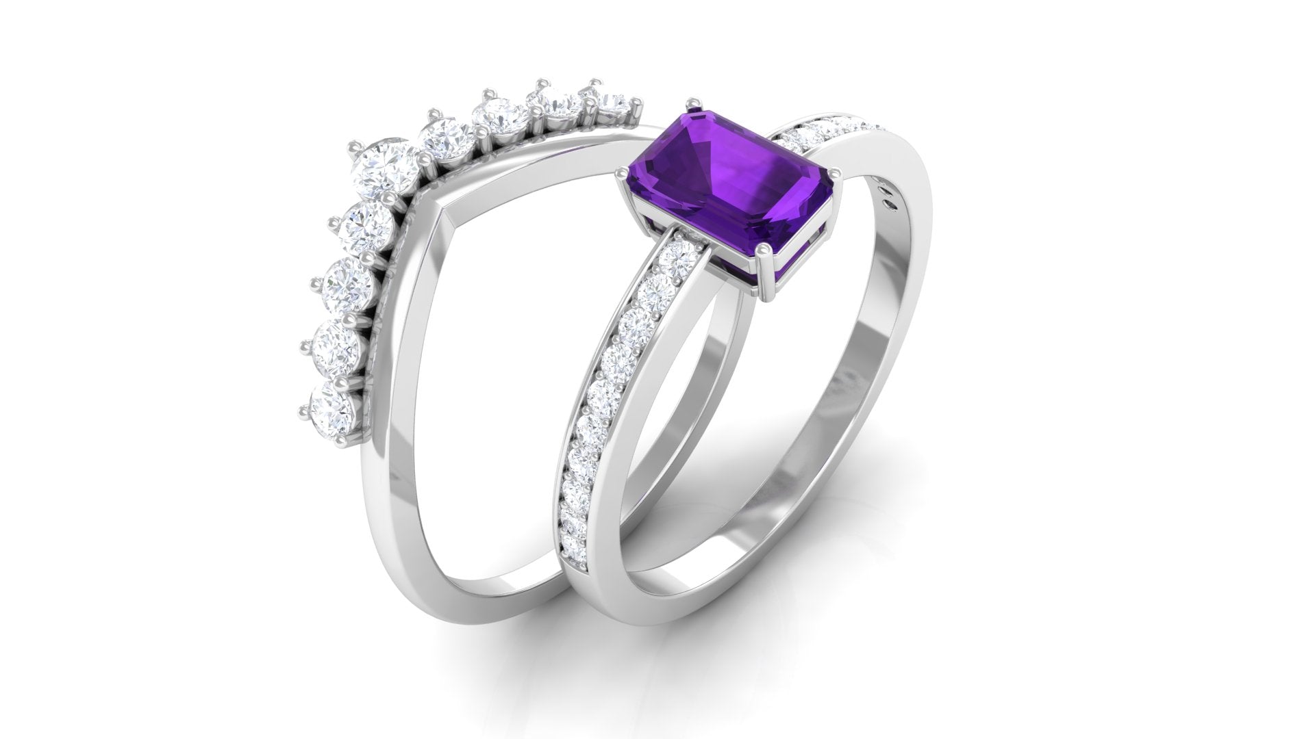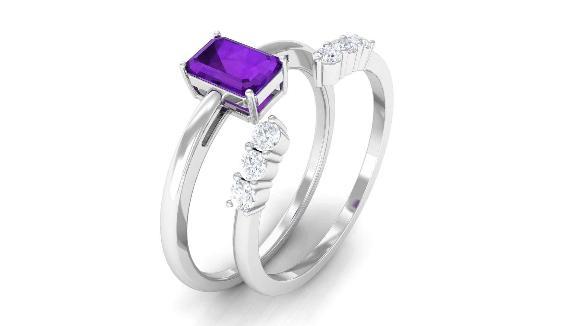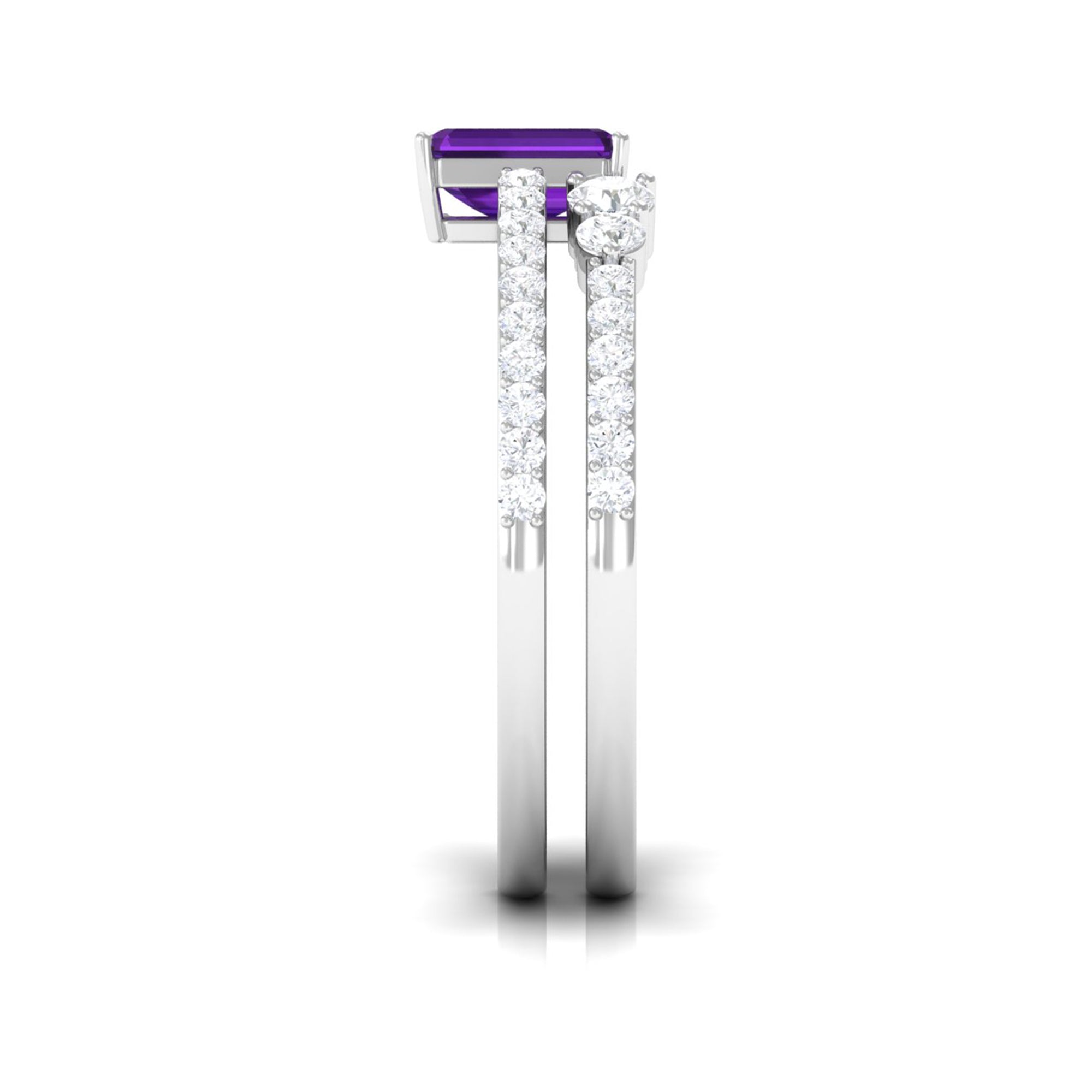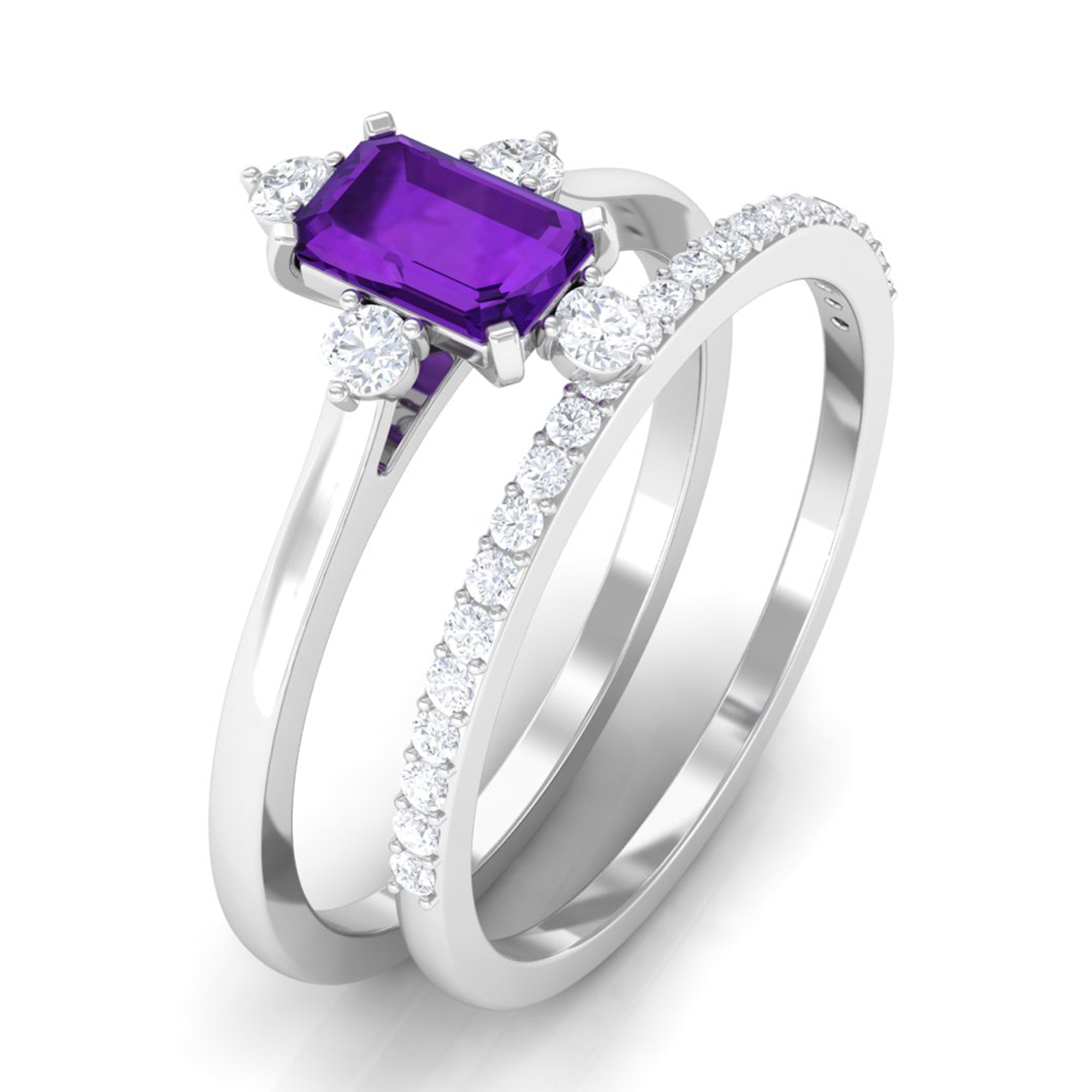 Let our amethyst wedding rings bear witness to your marriage vows with its alluring purple hues to let her heart go merry. The adorable purple gemstone of the quartz family has been a growing popularity among jewelers to craft fantastic amethyst wedding bands. The birthstone of February is believed to have positive influence on the wearer born in February. The considerable hardness and the mesmerizing beauty make amethyst a suitability when it comes to designing non-traditional amethyst wedding ring set for couples.