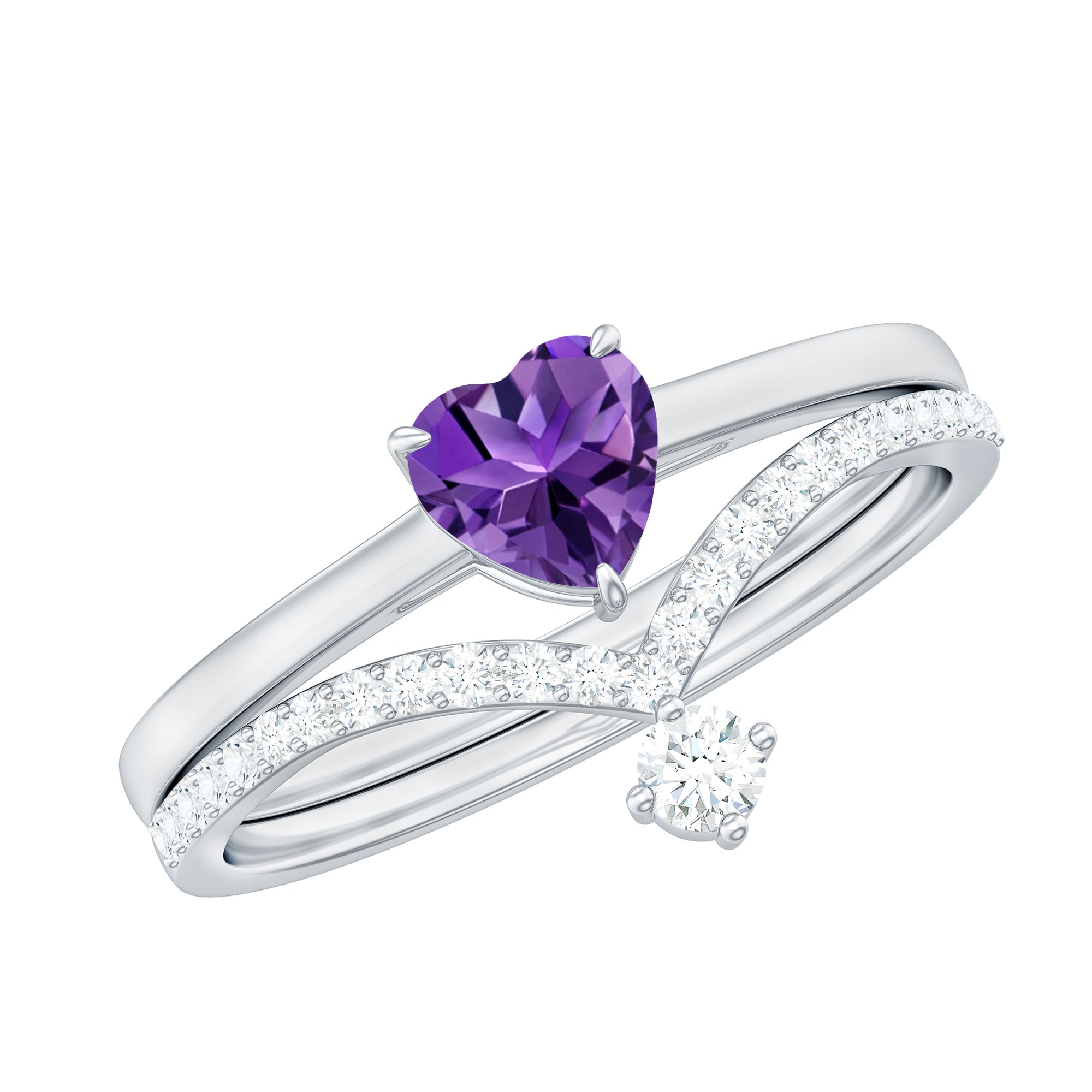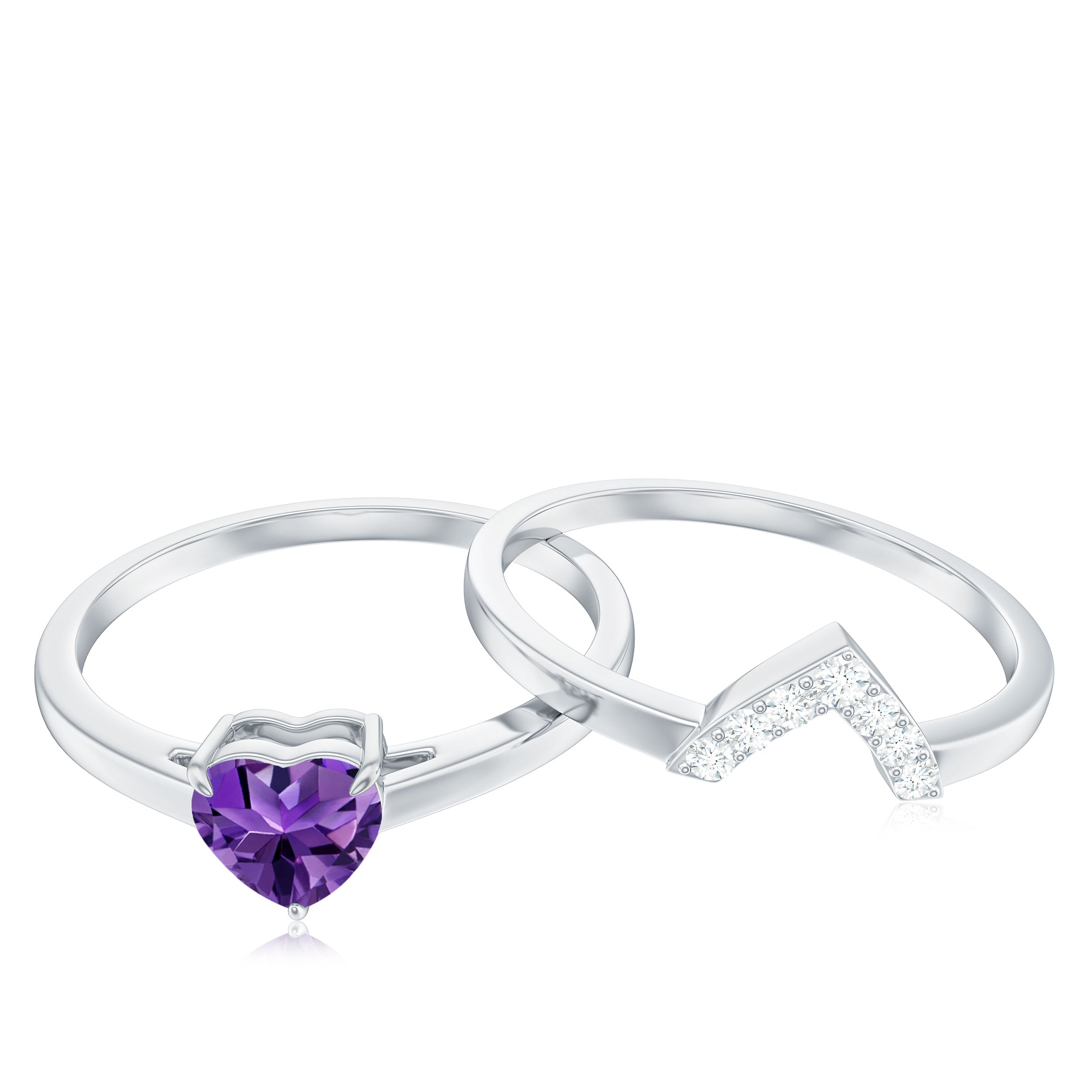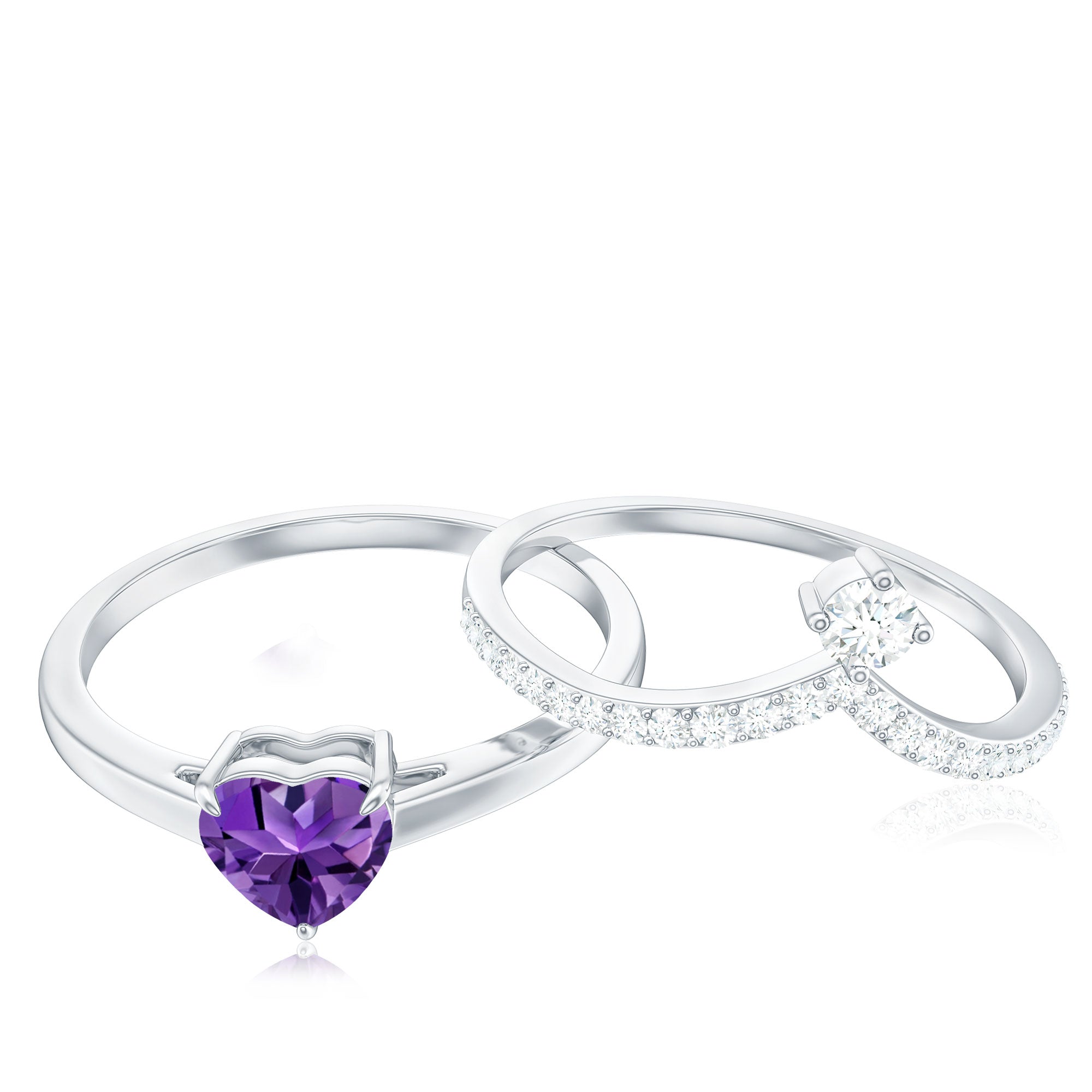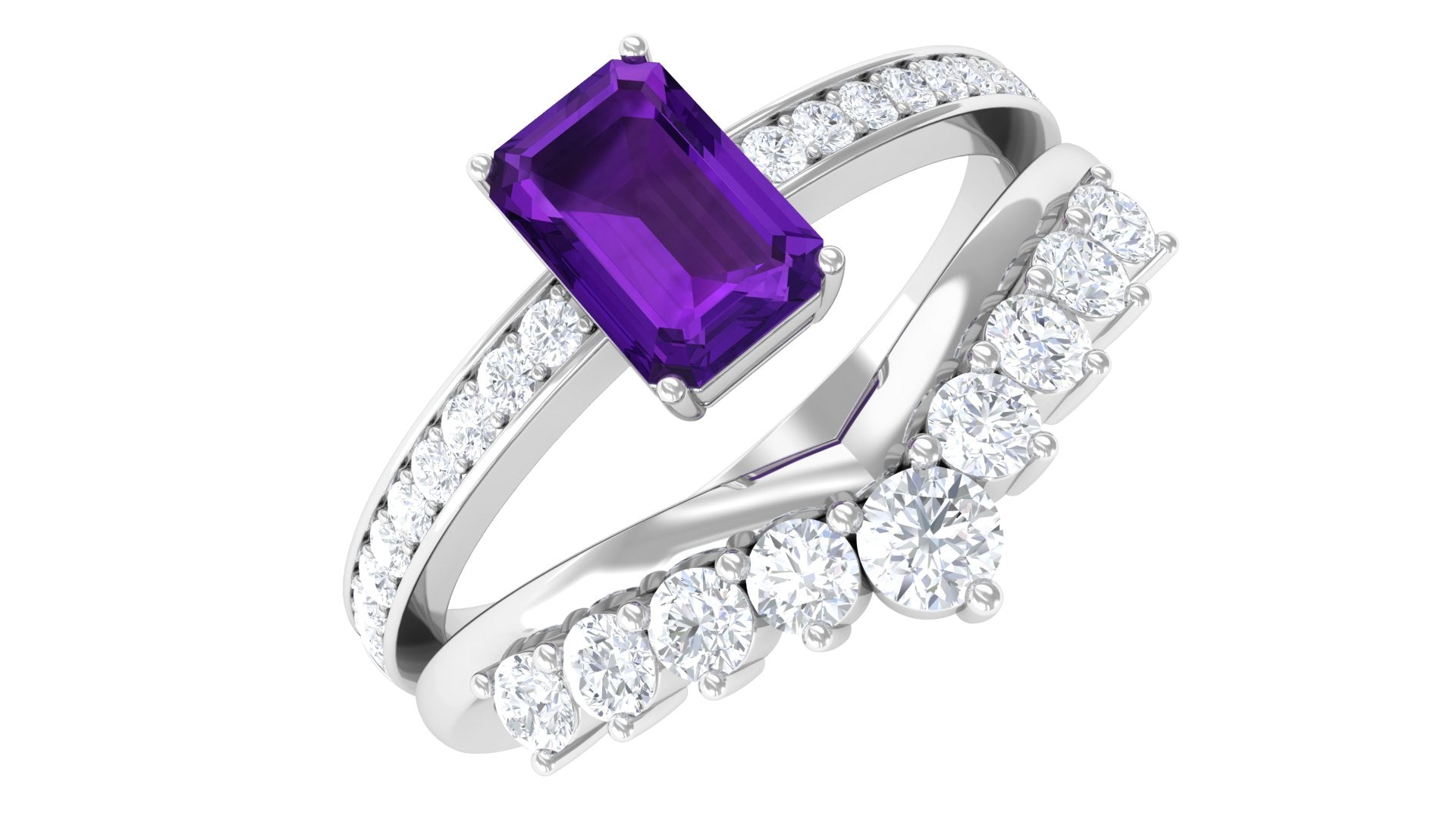 Let our amethyst wedding rings bear witness to your marriage vows with its alluring purple hues to let her heart go merry. The adorable purple gemstone of the quartz family has been a growing popularity among jewelers to craft fantastic amethyst wedding bands. The birthstone of February is believed to have positive influence on the wearer born in February. The considerable hardness and the mesmerizing beauty make amethyst a suitability when it comes to designing non-traditional amethyst wedding ring set for couples.