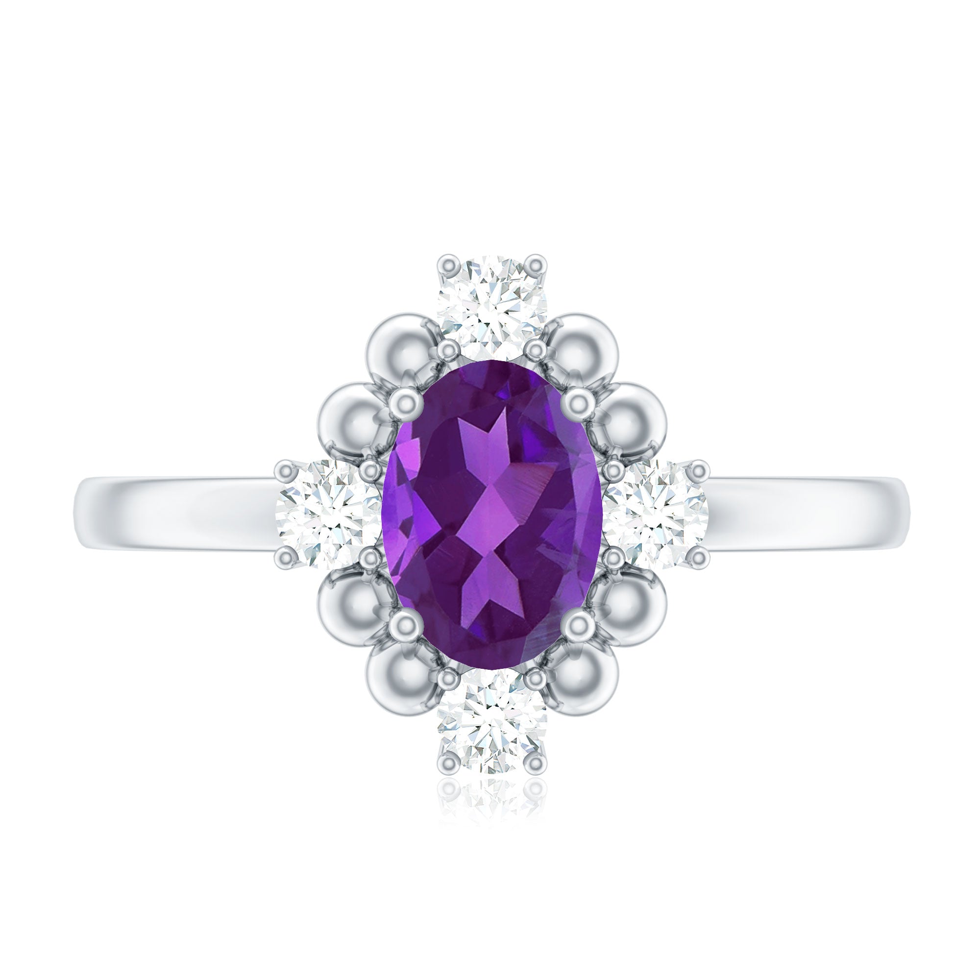 • Color: The color of amethyst characterized by reddish purple with no visible color zoning is most preferable while crafting amethyst wedding rings.