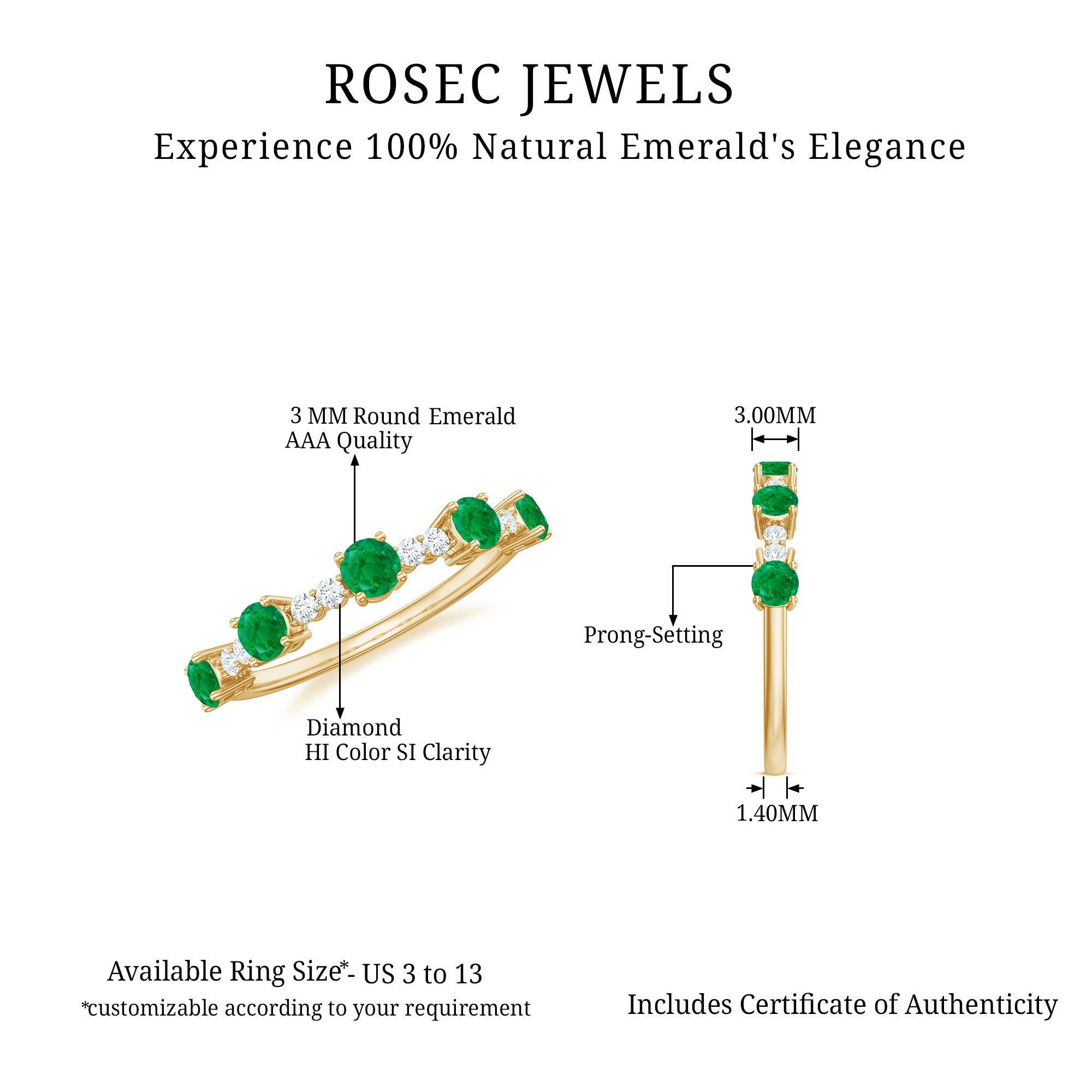 Like other rings, anniversary rings can also be customized. You can choose the gemstone and metal of your choice, add engravings or special symbols to make your ring the only piece for you. Whether you prefer to modify an existing emerald anniversary ring design or create a completely original one, customization options are easily available.