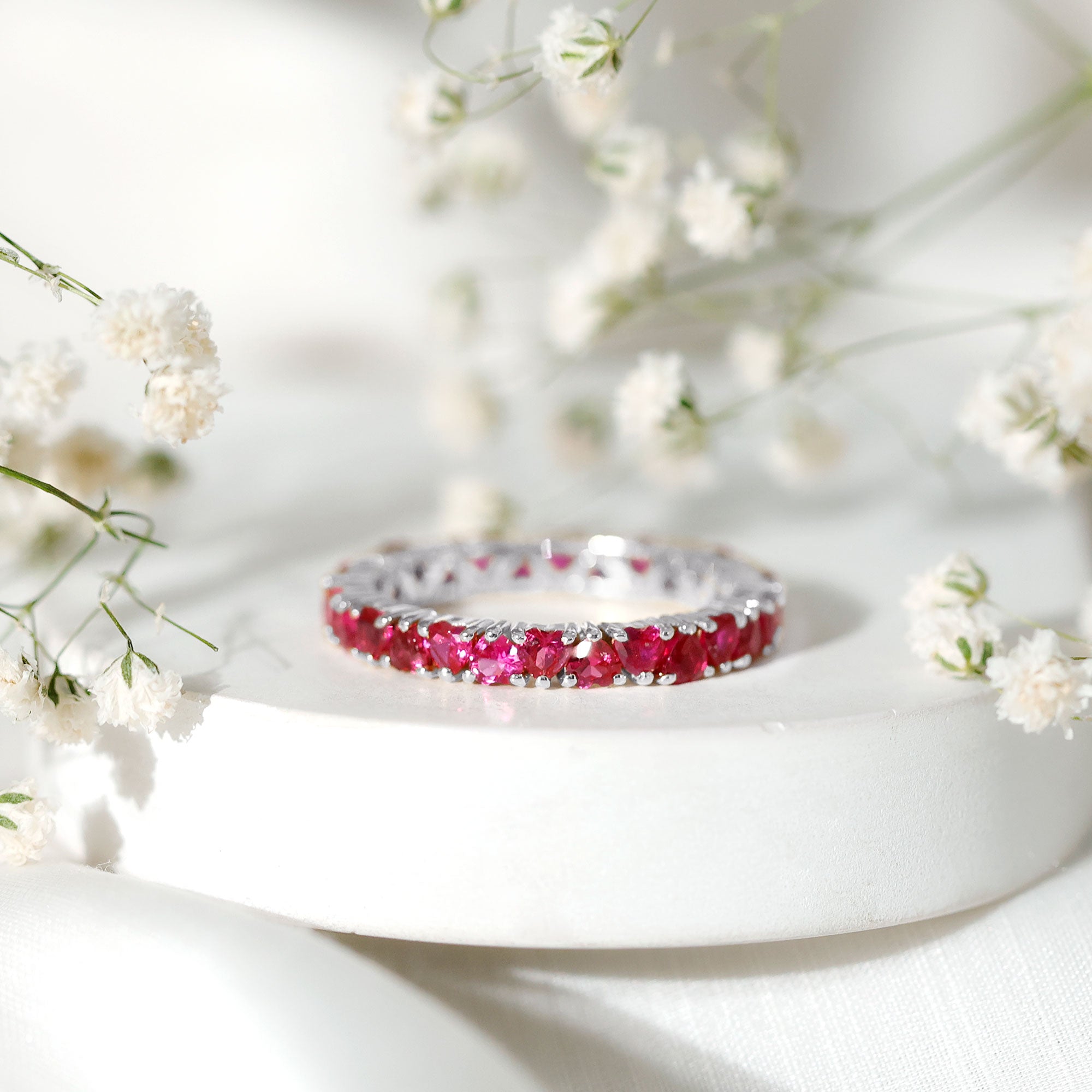 Personal taste plays a big role when selecting a gemstone shape. For a timeless sparkle consider round diamonds, oval shape for elegant length, or emerald cut for a sleek, vintage vibe. If you're feeling romantic, a heart or cushion shaped ruby anniversary ring adds just the right touch of charm.