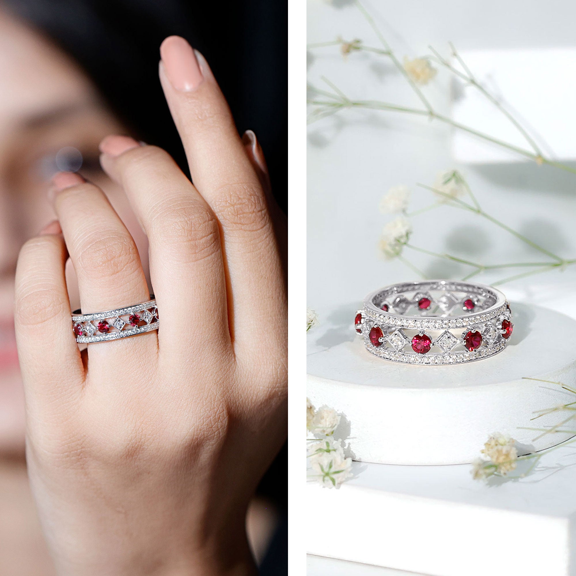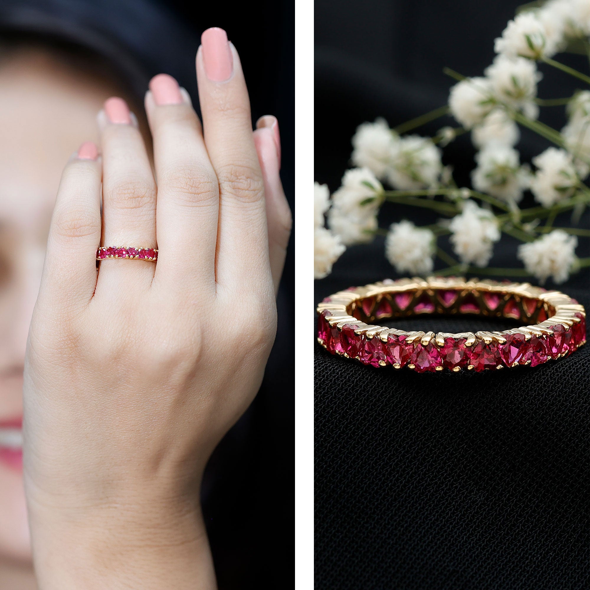 Different gemstones, or even styles like an eternity ring, are usually given on specific anniversaries, such as a diamond eternity band for the 10th or an emerald anniversary ring for the 20th. To know in detail what you can choose for a specific year, check this blog: Anniversary Rings: When Exactly To Give Them?