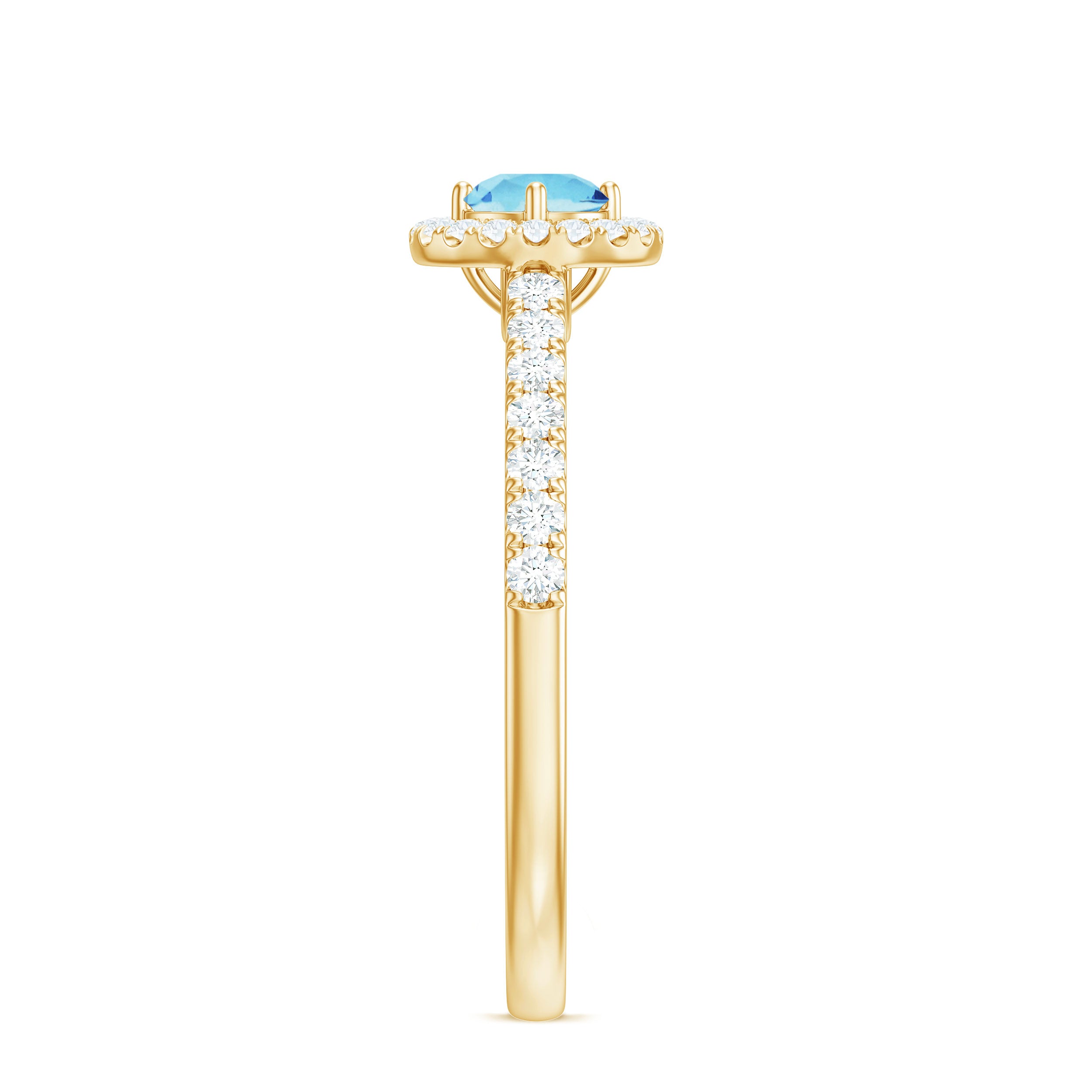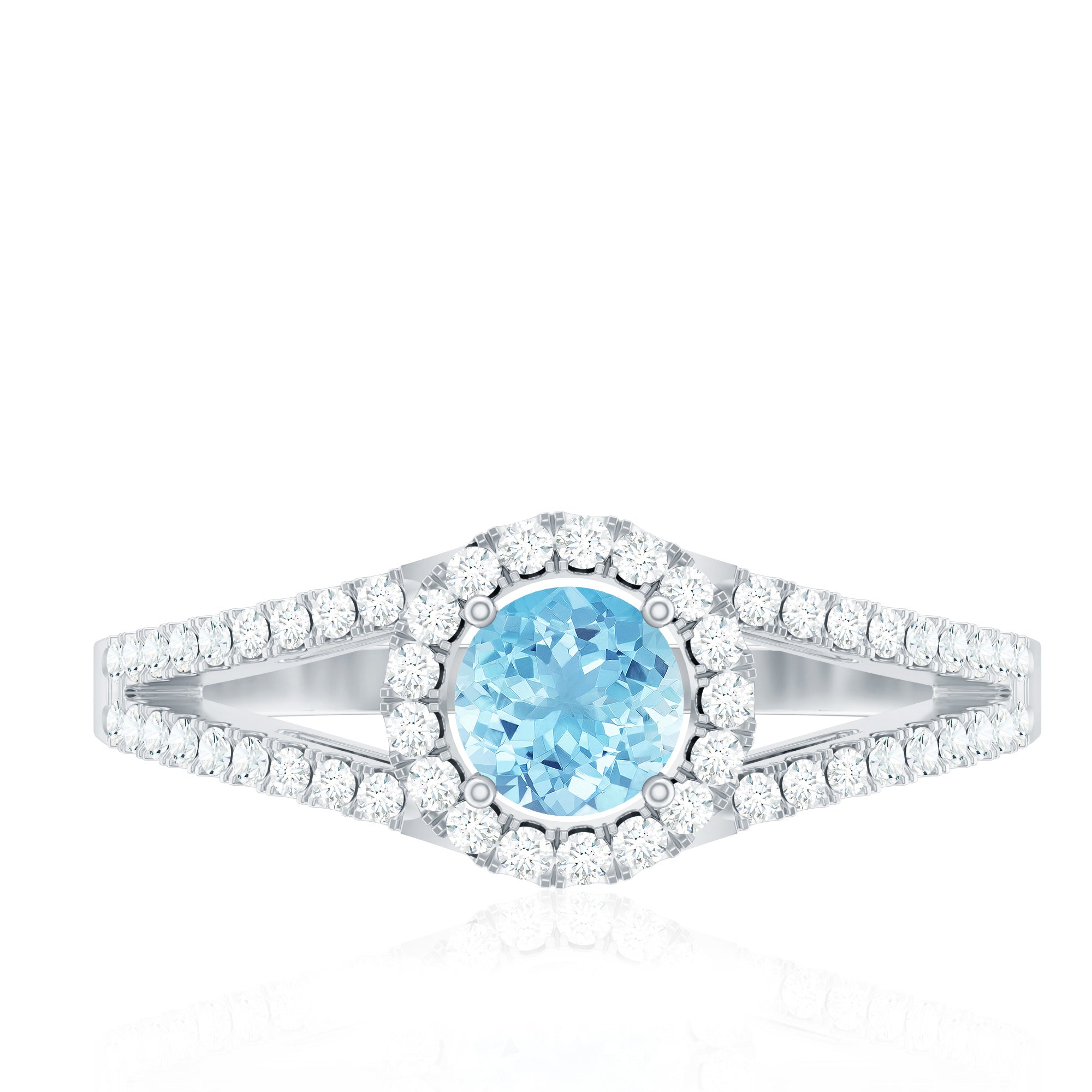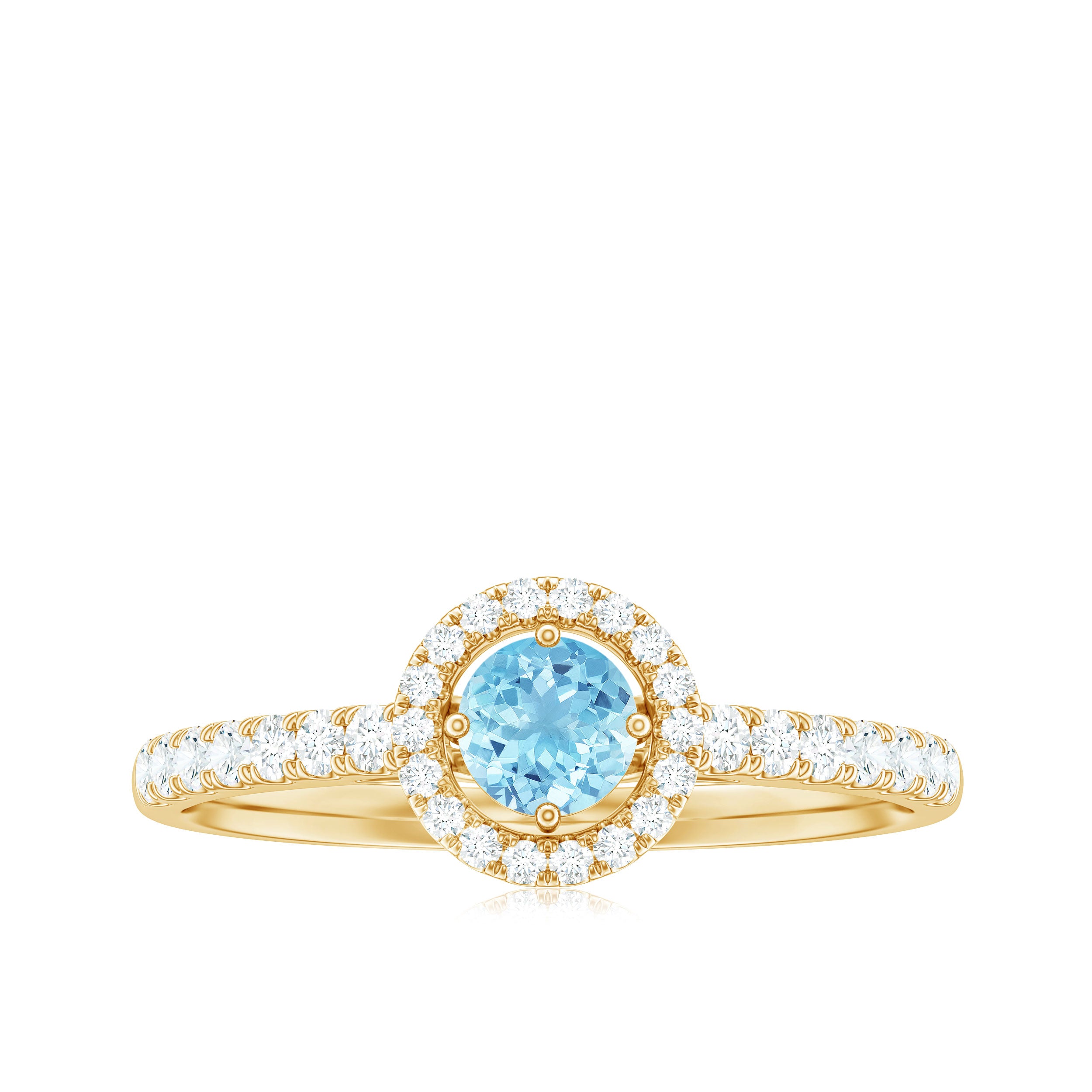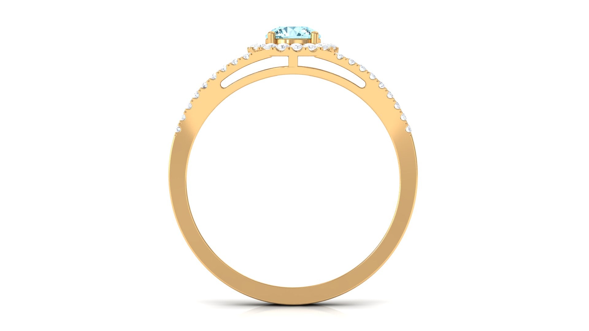 • Aquamarine Halo Engagement Rings: - Showcasing an aquamarine centerstone with dainty round diamonds encircling it for an added brilliance. Our aquamarine diamond engagement rings exude timeless elegance, creating a mesmerizing and dazzling effect.