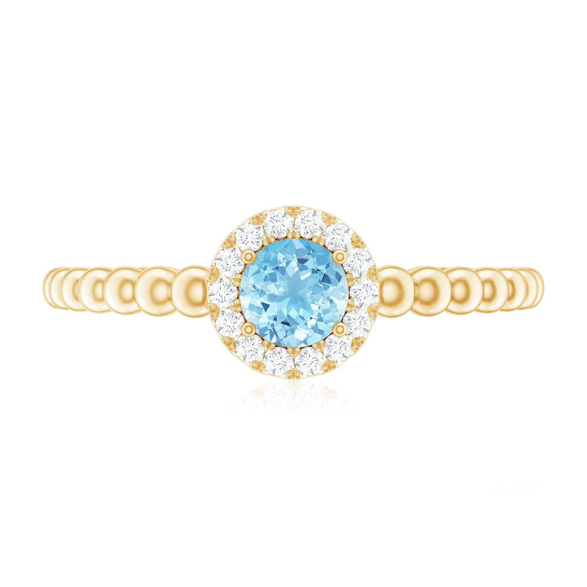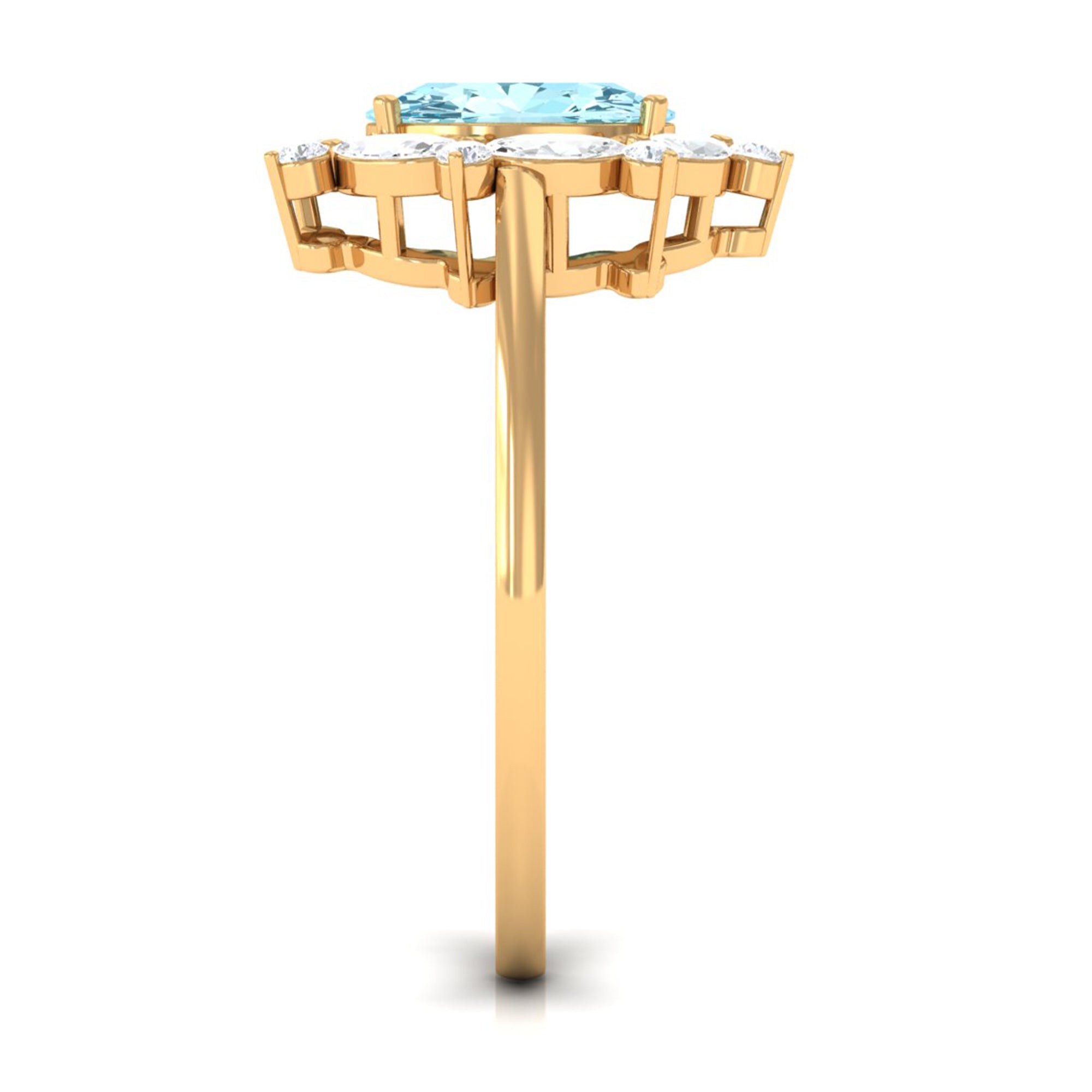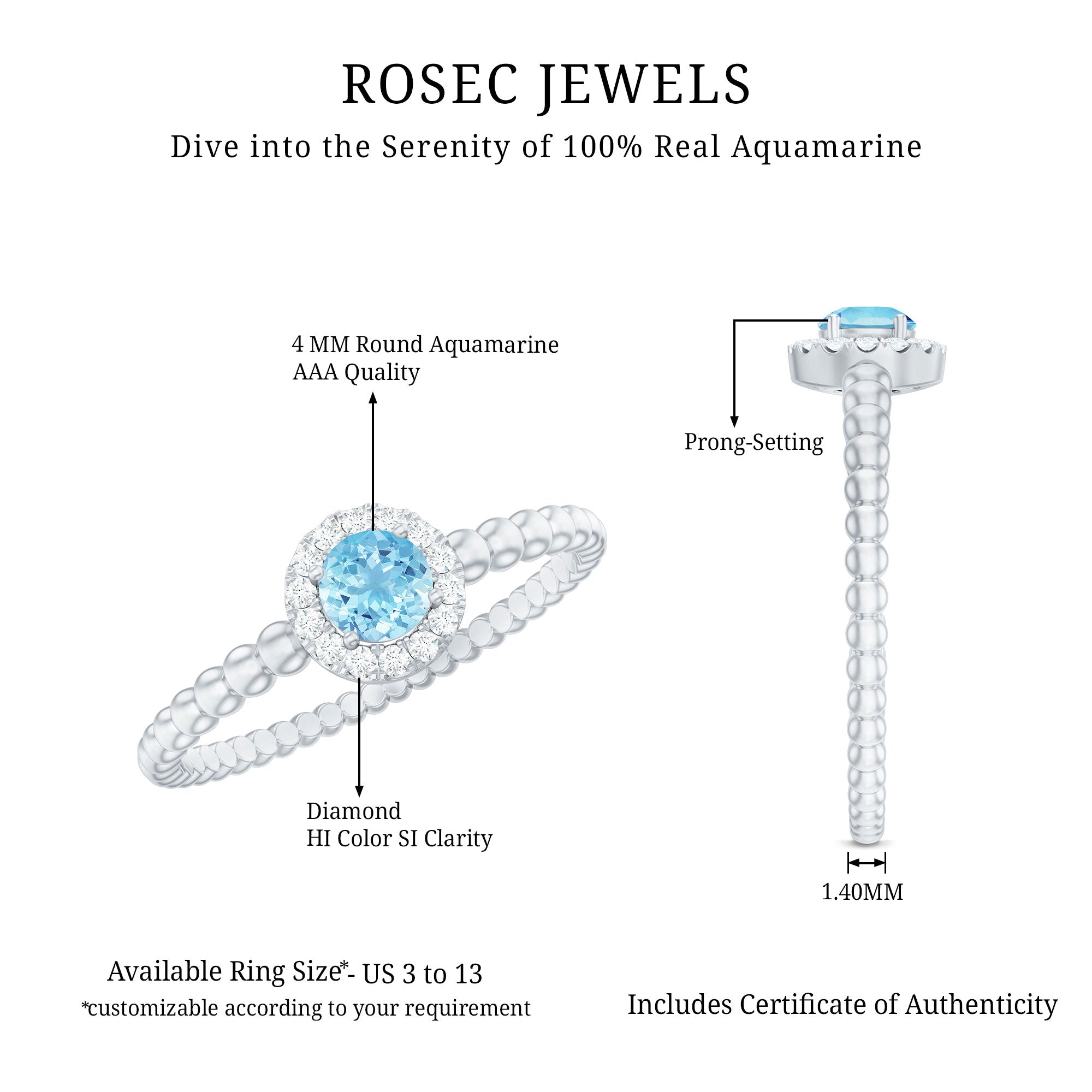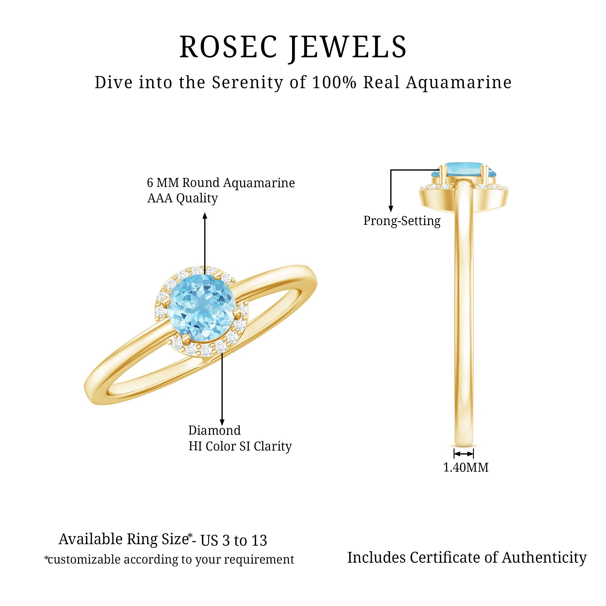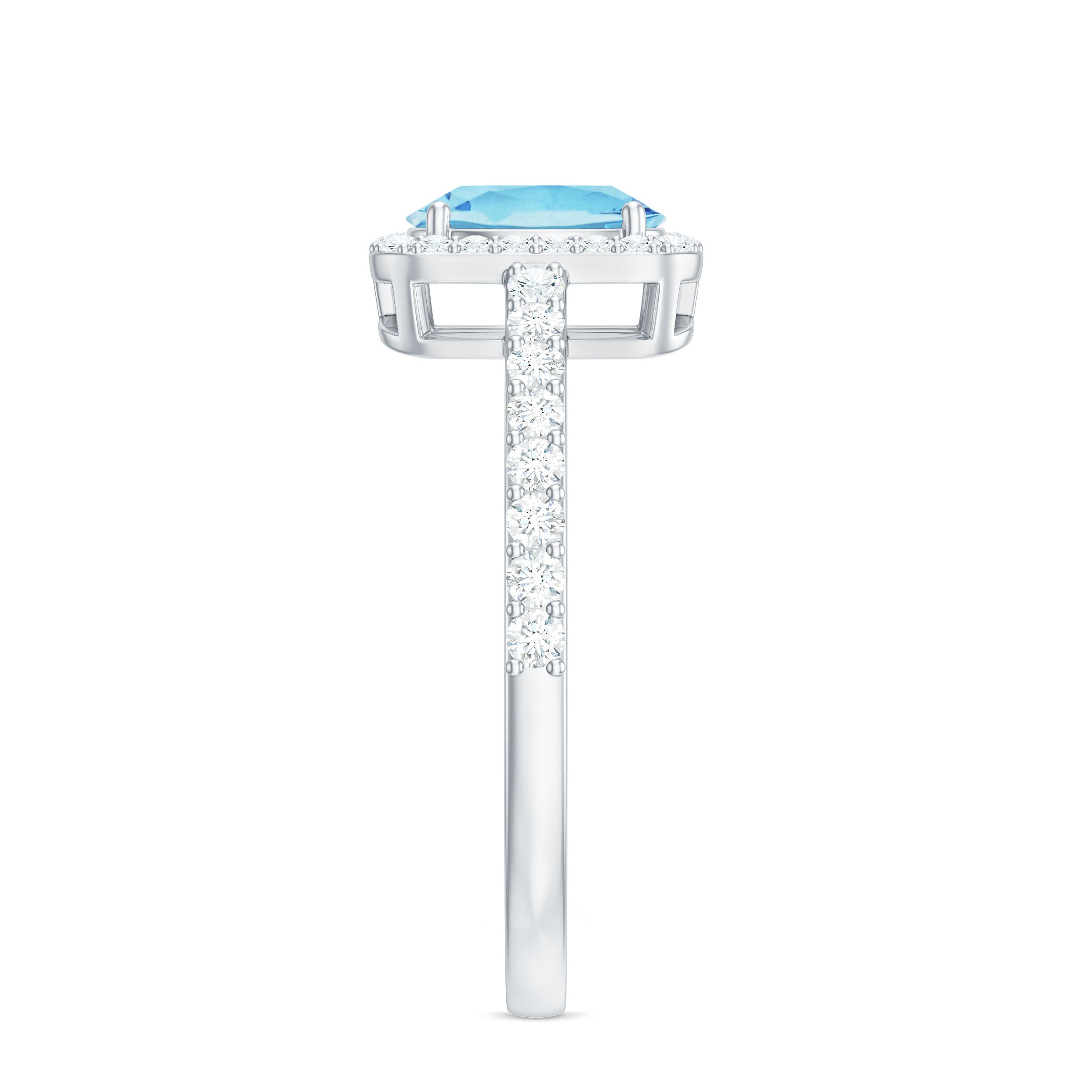 • Aquamarine Halo Engagement Rings: - Showcasing an aquamarine centerstone with dainty round diamonds encircling it for an added brilliance. Our aquamarine diamond engagement rings exude timeless elegance, creating a mesmerizing and dazzling effect.