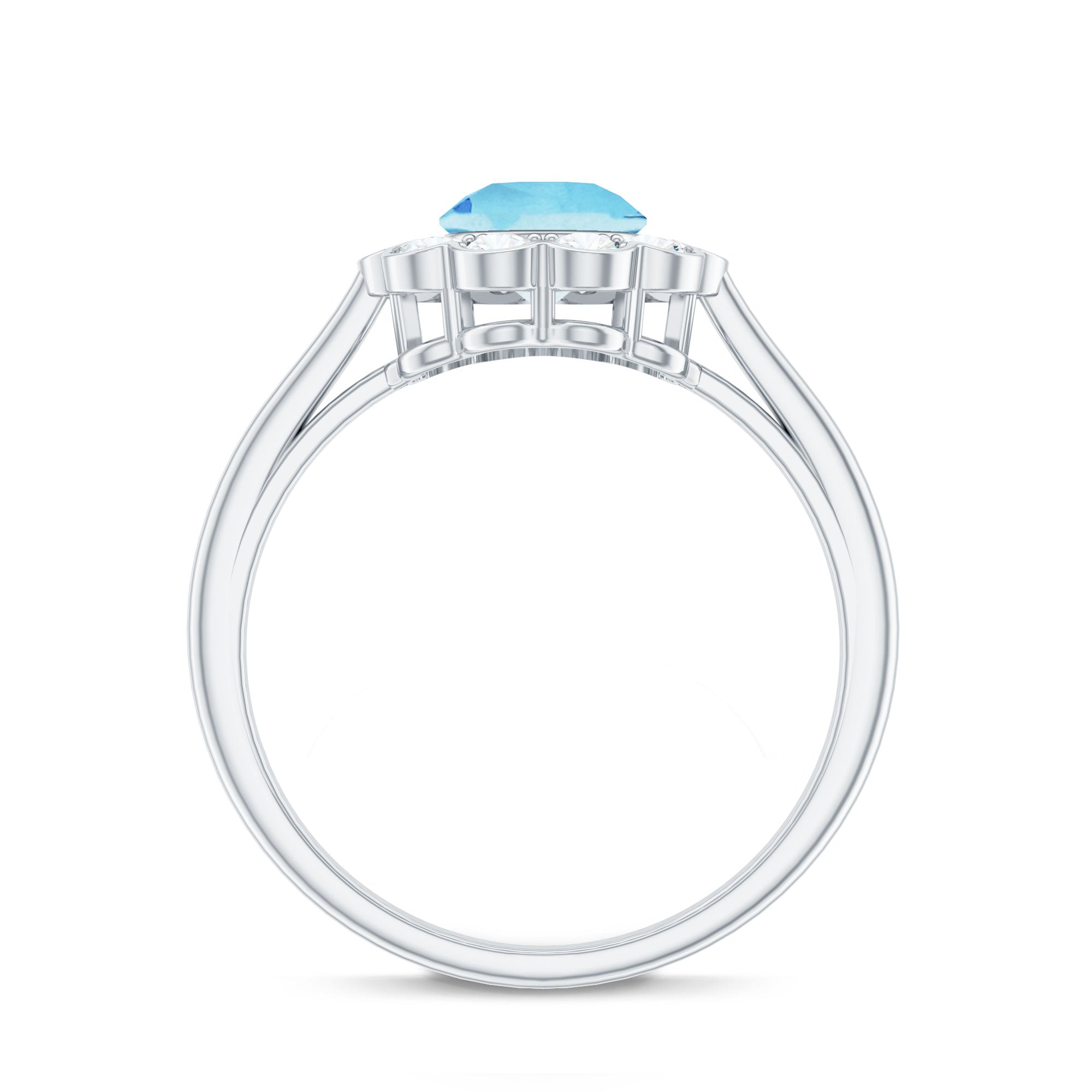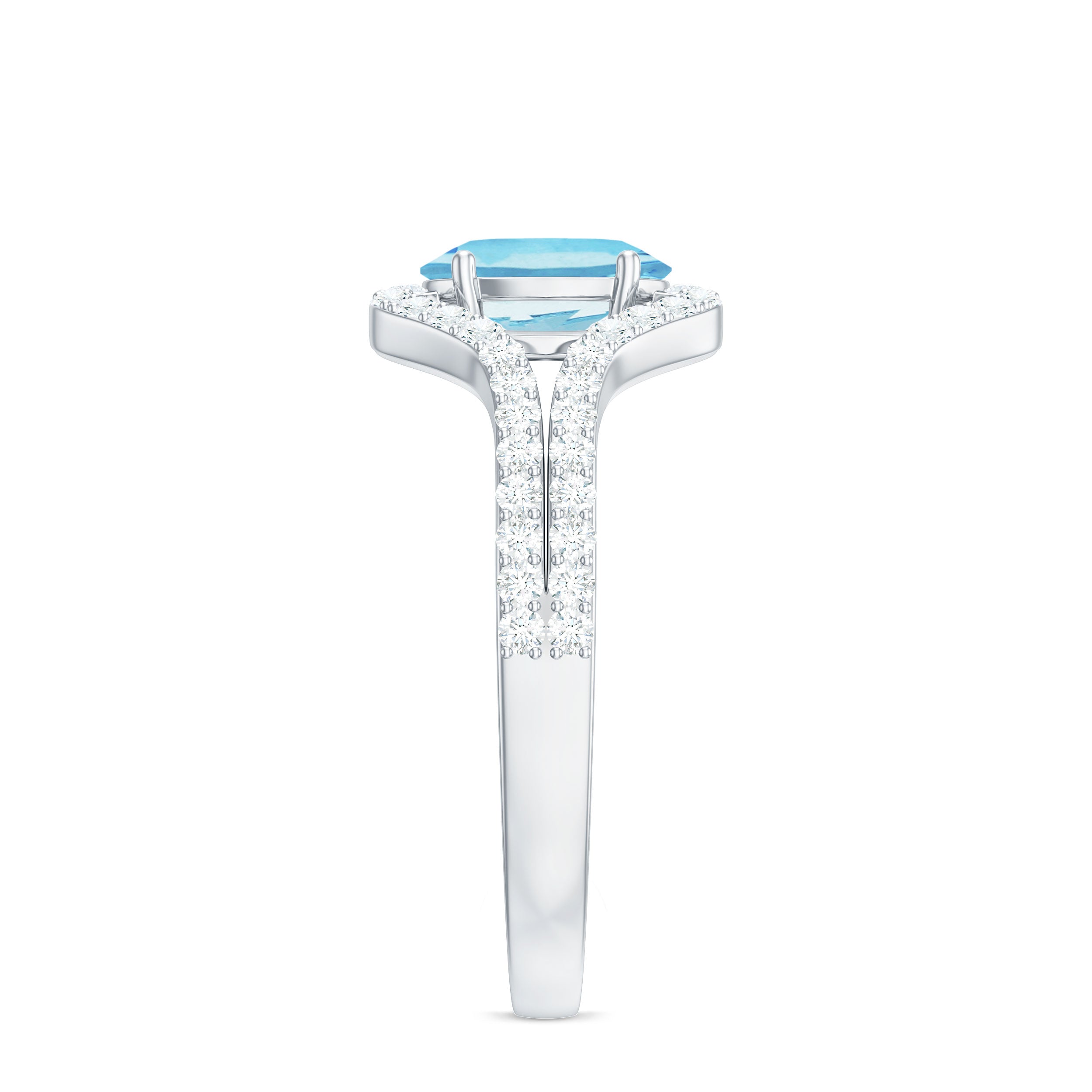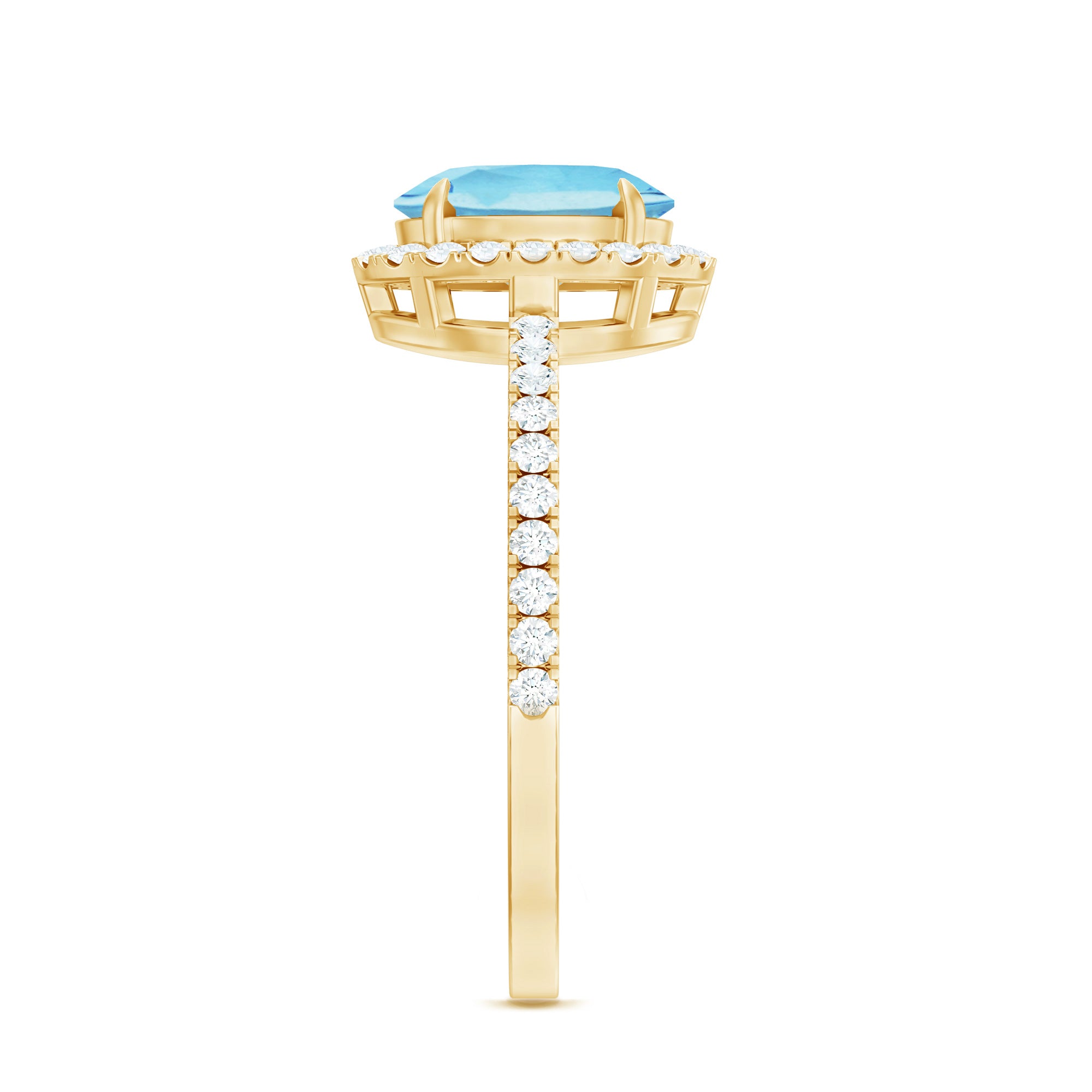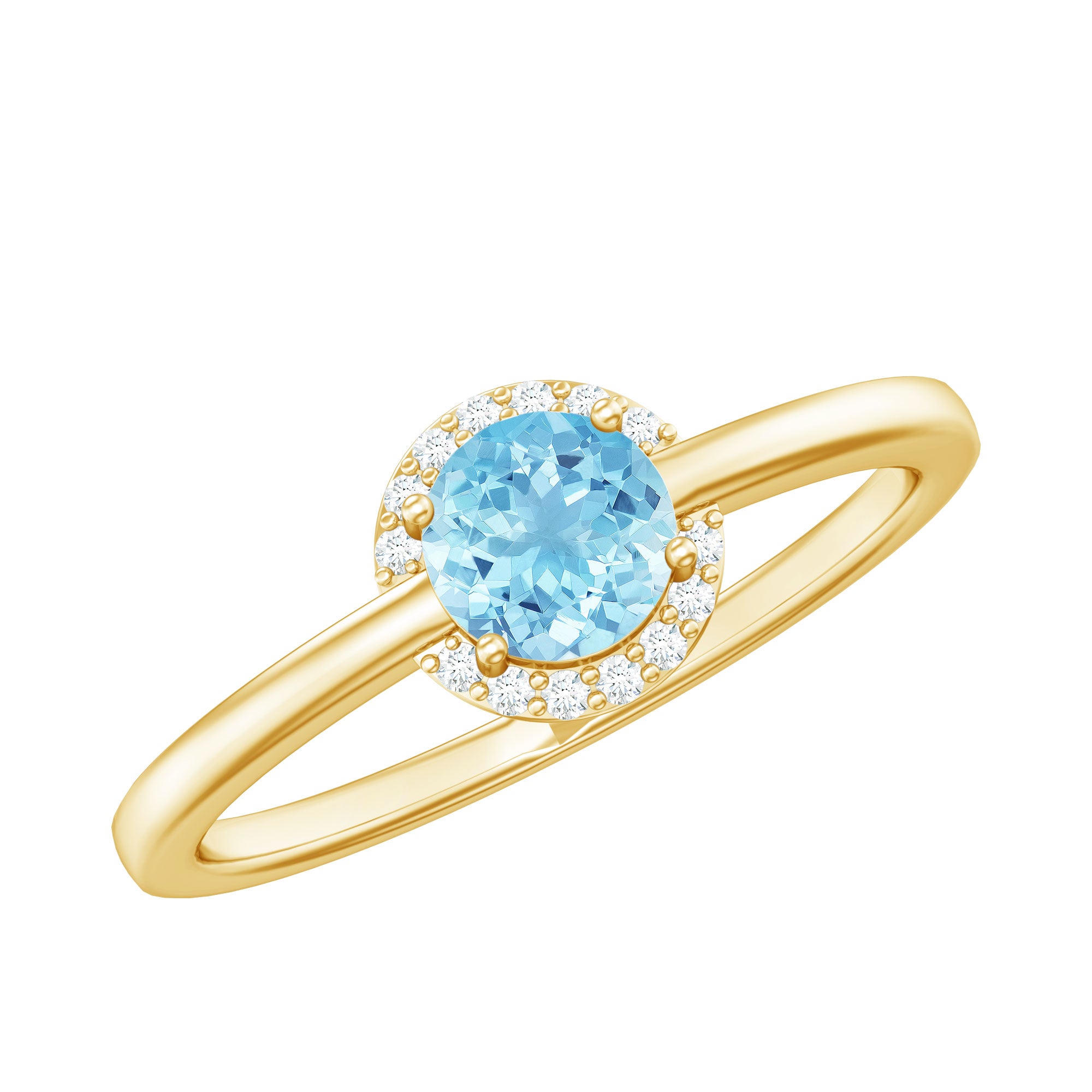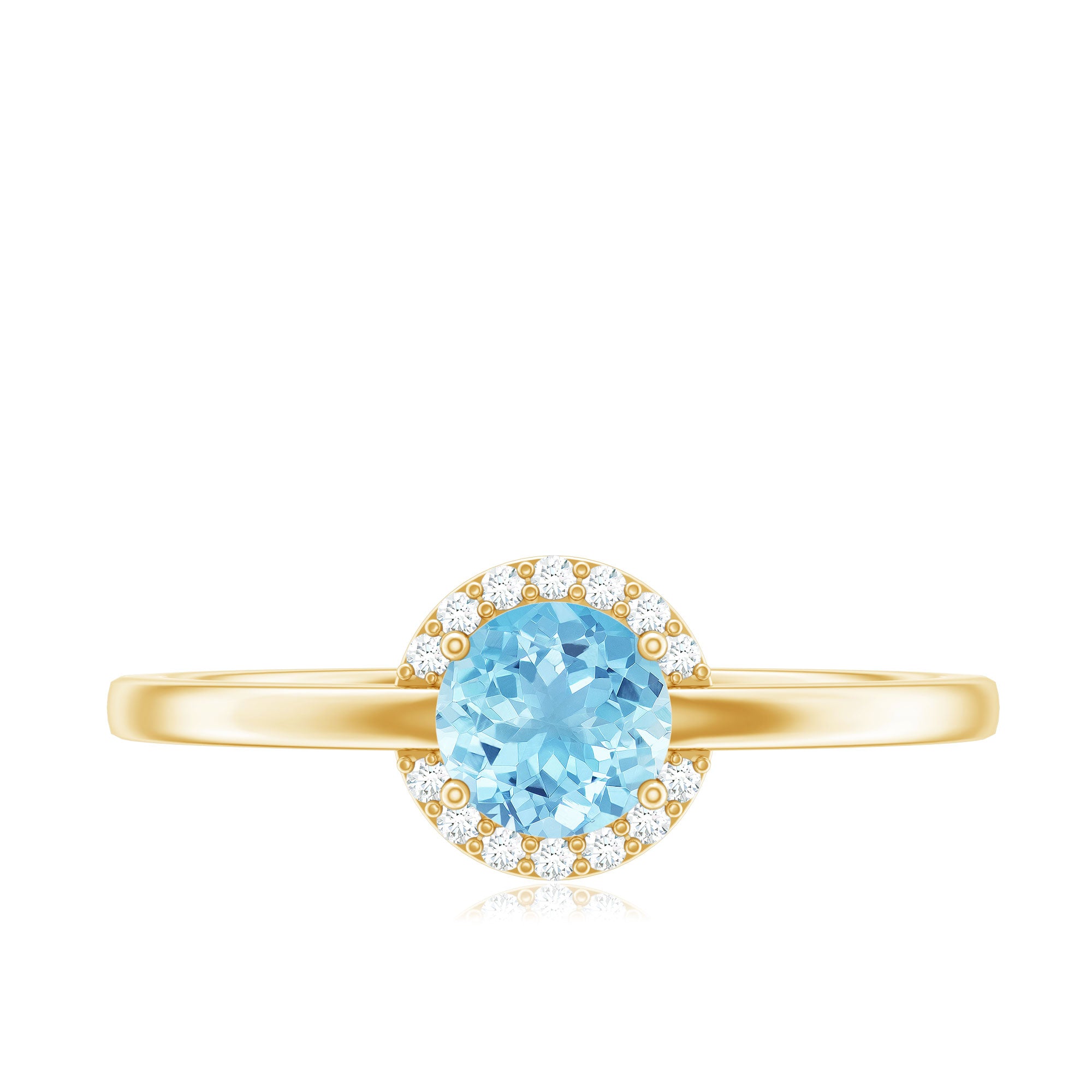 • Aquamarine Halo Engagement Rings: - Showcasing an aquamarine centerstone with dainty round diamonds encircling it for an added brilliance. Our aquamarine diamond engagement rings exude timeless elegance, creating a mesmerizing and dazzling effect.