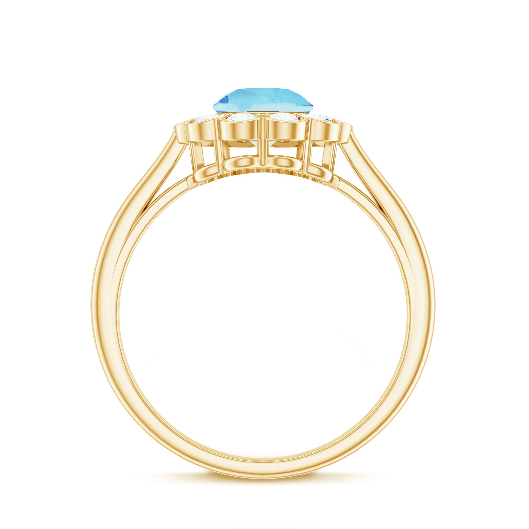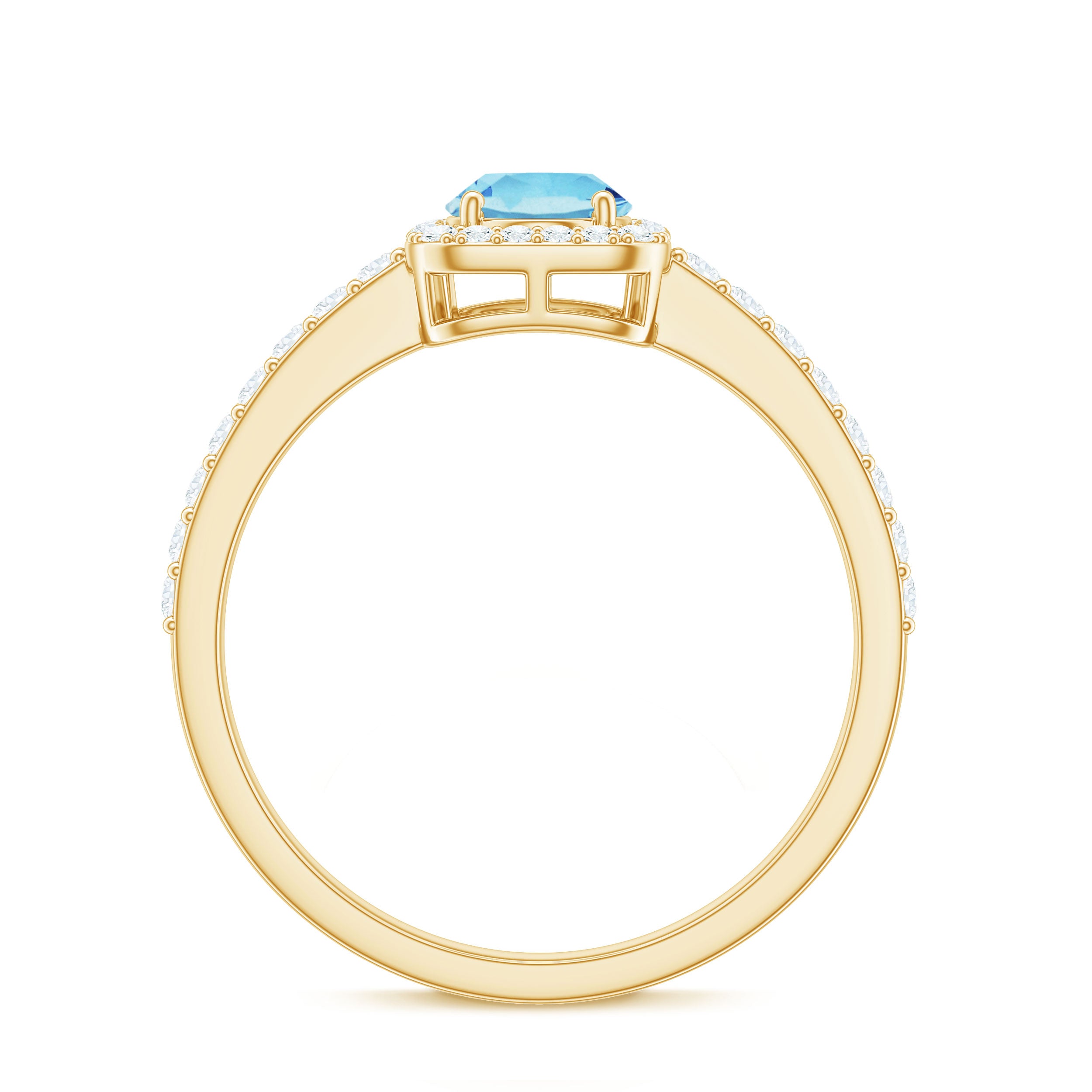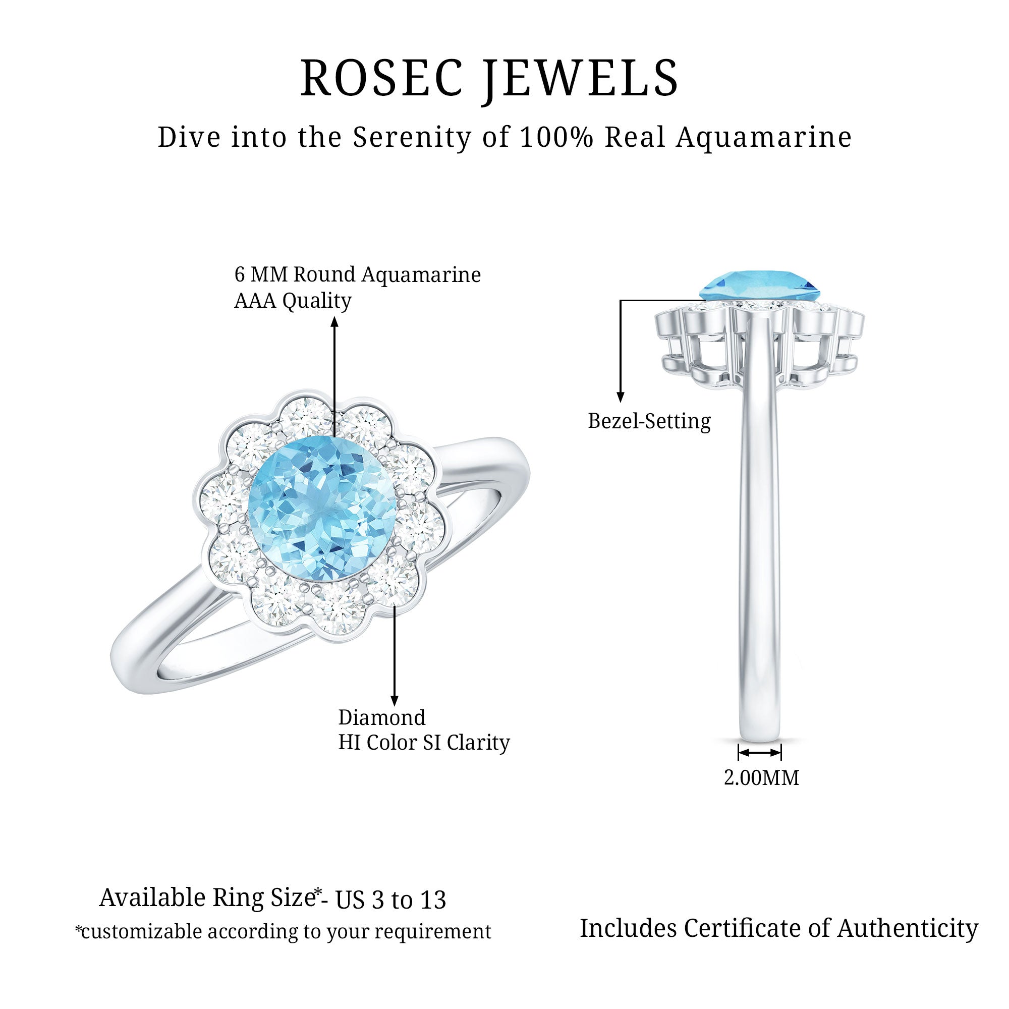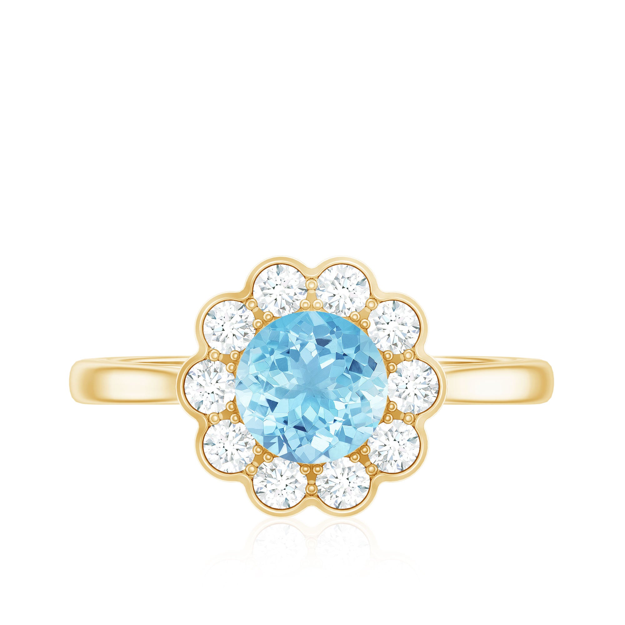 • Aquamarine Halo Engagement Rings: - Showcasing an aquamarine centerstone with dainty round diamonds encircling it for an added brilliance. Our aquamarine diamond engagement rings exude timeless elegance, creating a mesmerizing and dazzling effect.