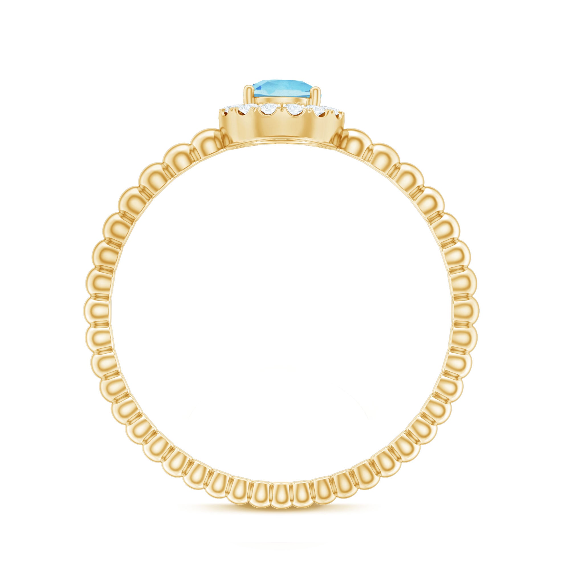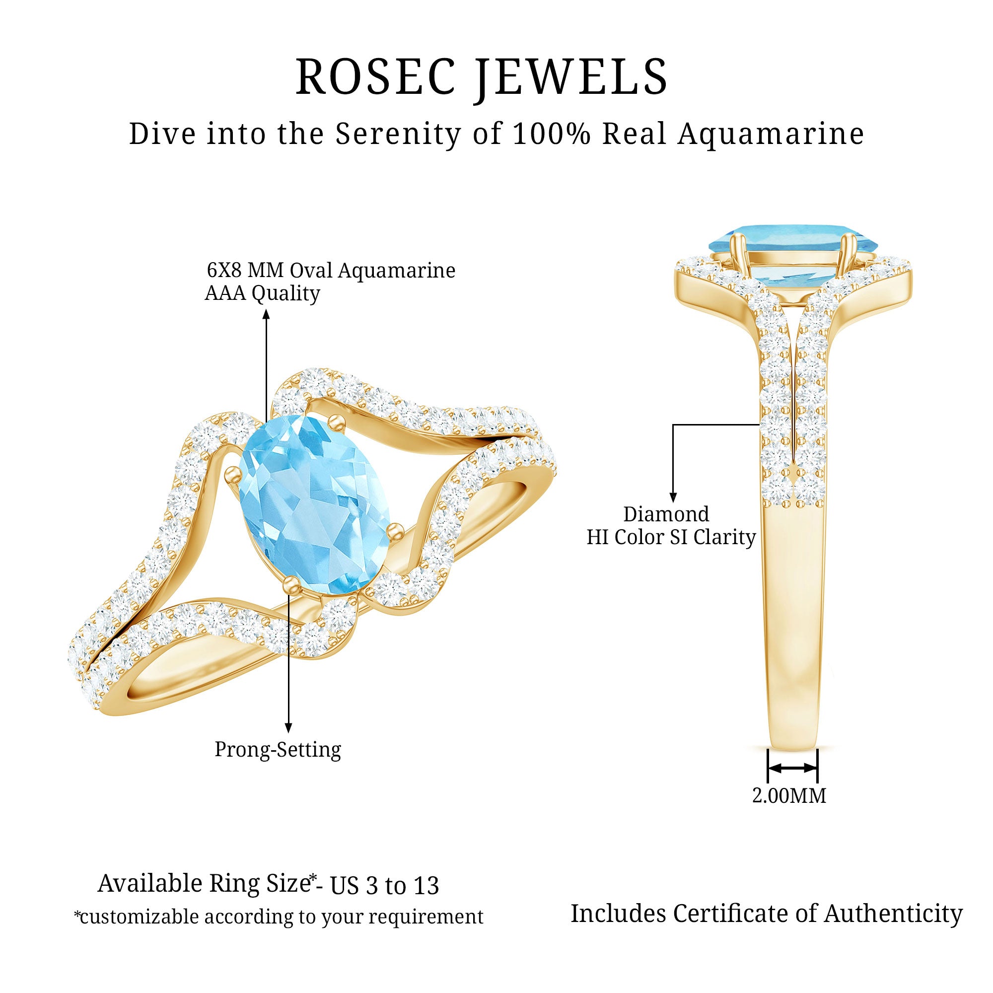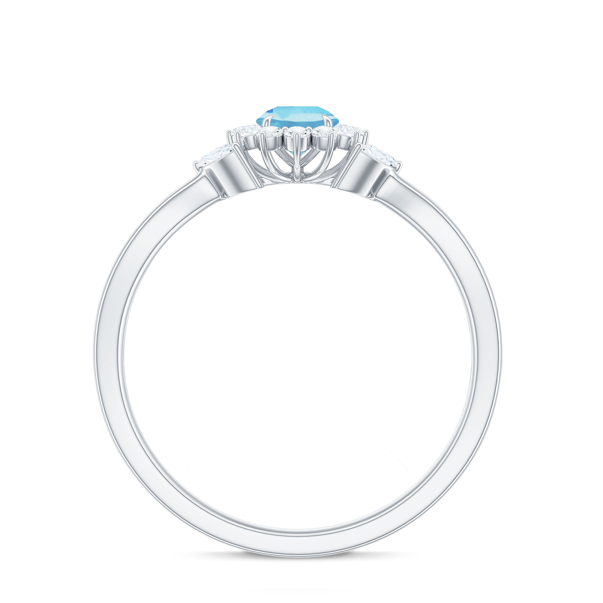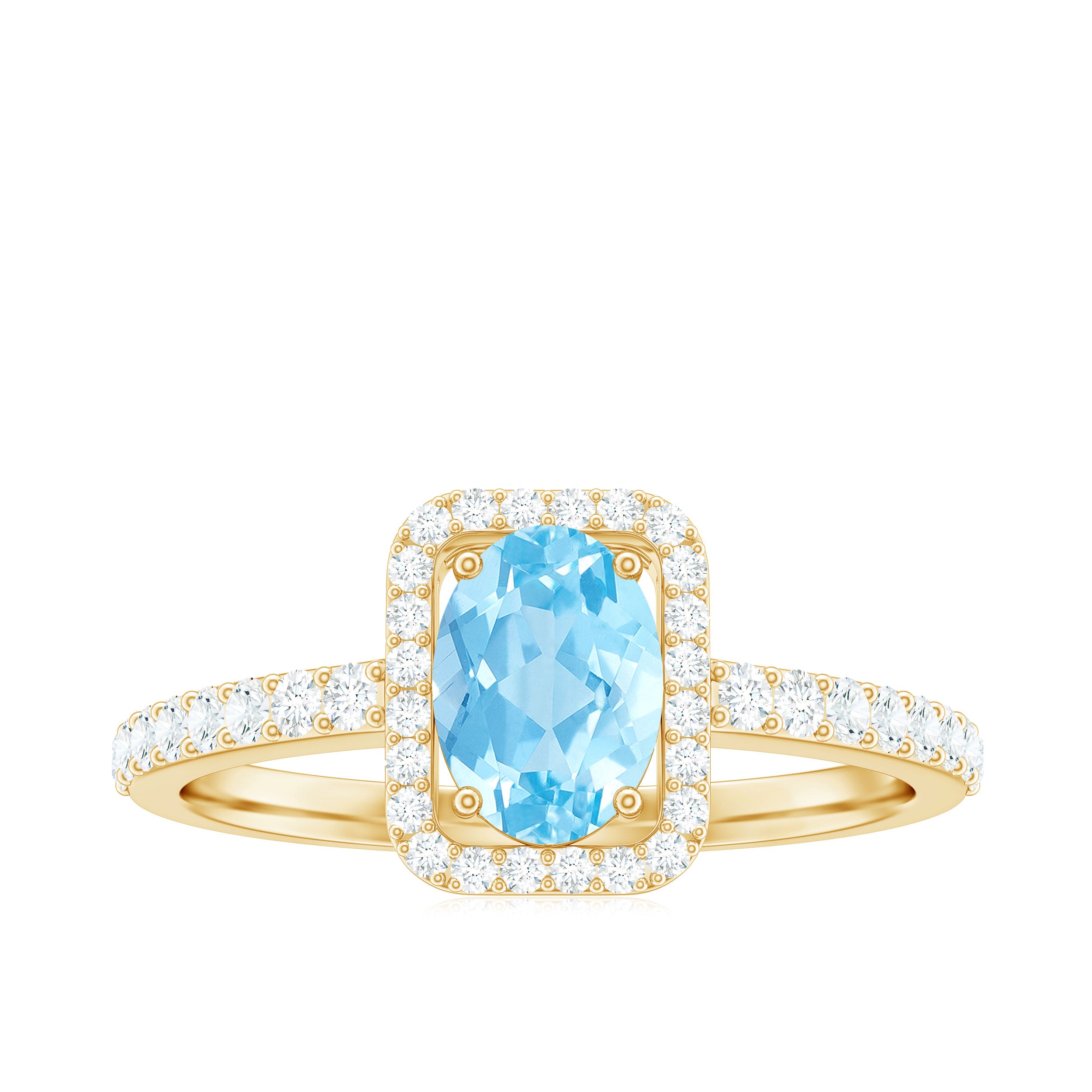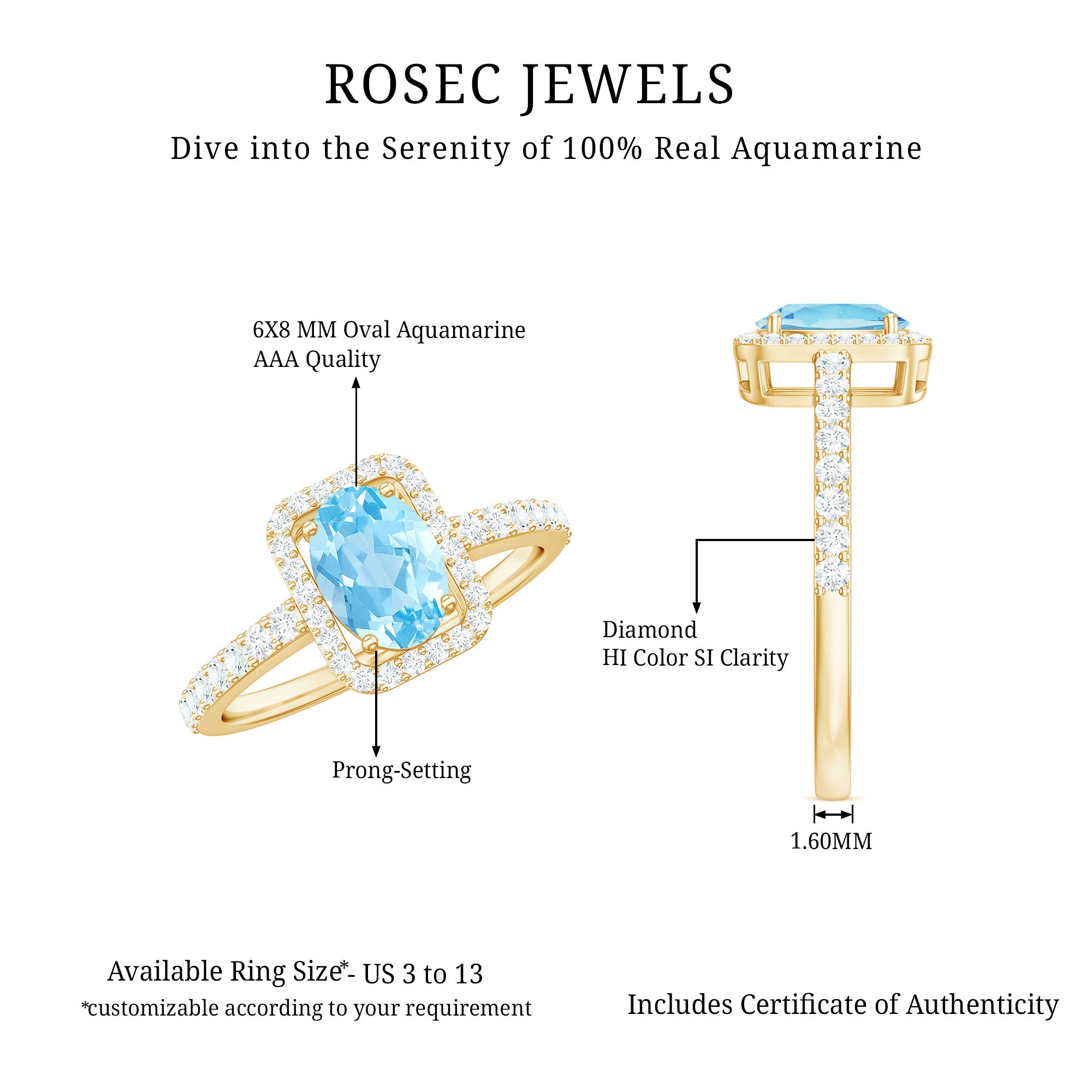• Aquamarine Halo Engagement Rings: - Showcasing an aquamarine centerstone with dainty round diamonds encircling it for an added brilliance. Our aquamarine diamond engagement rings exude timeless elegance, creating a mesmerizing and dazzling effect.