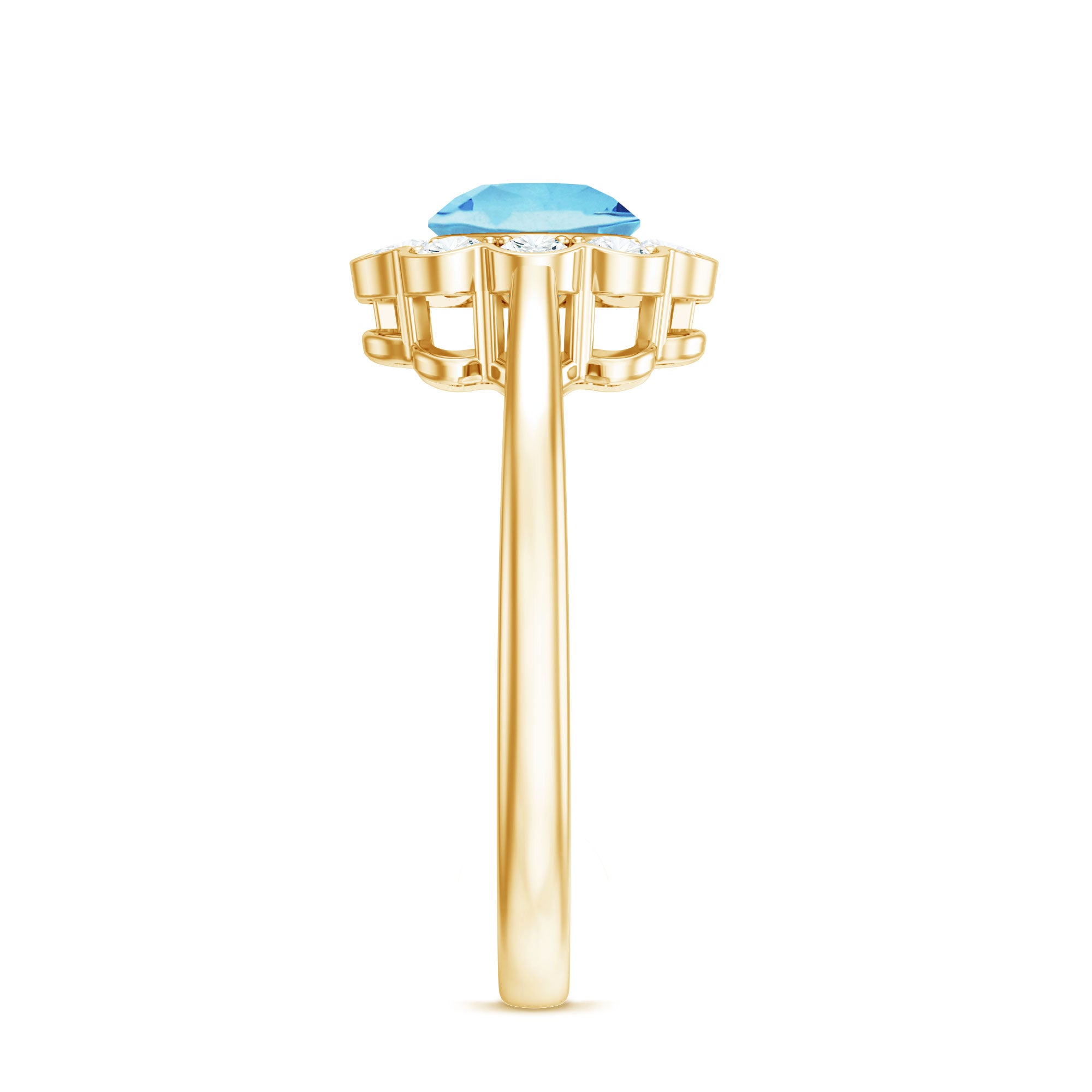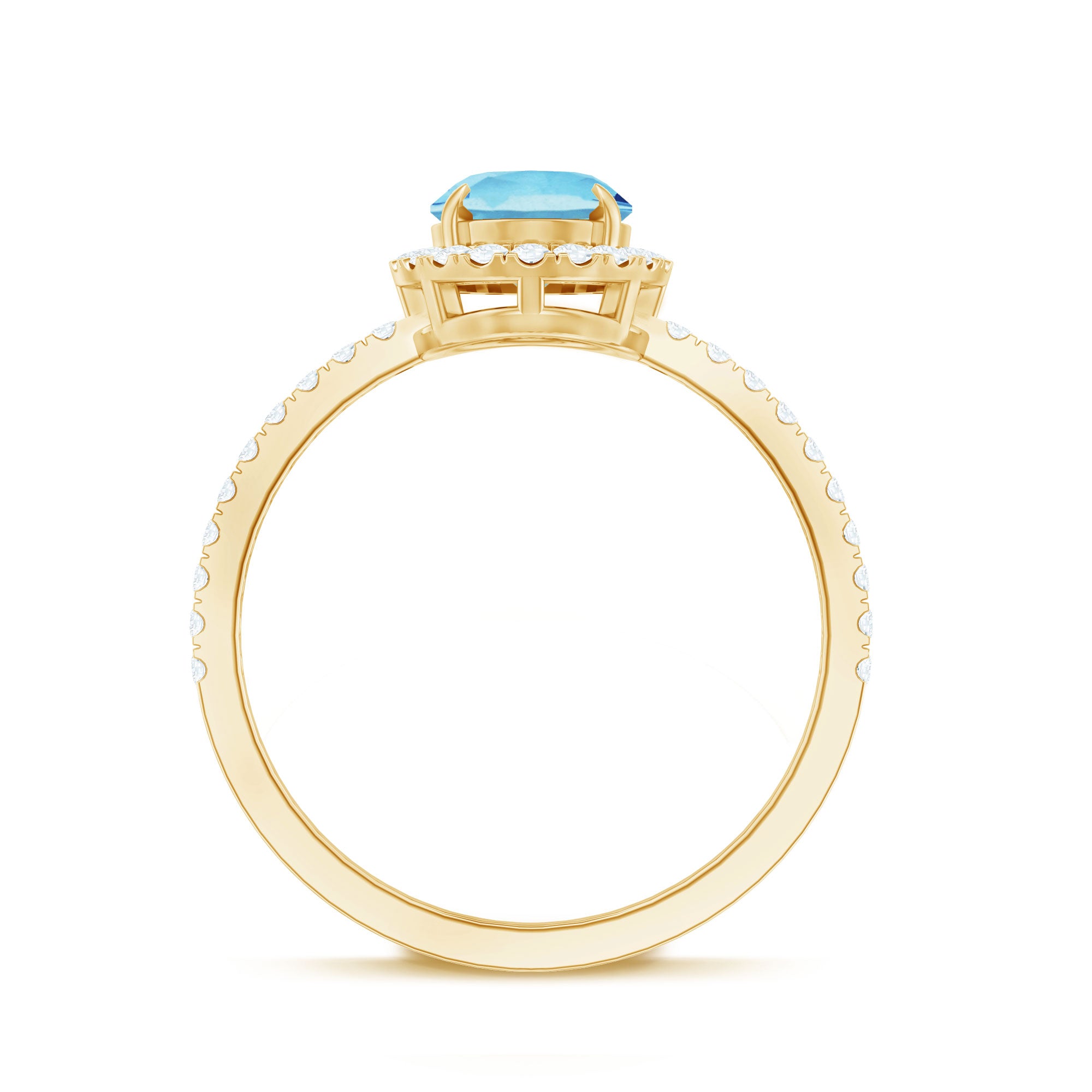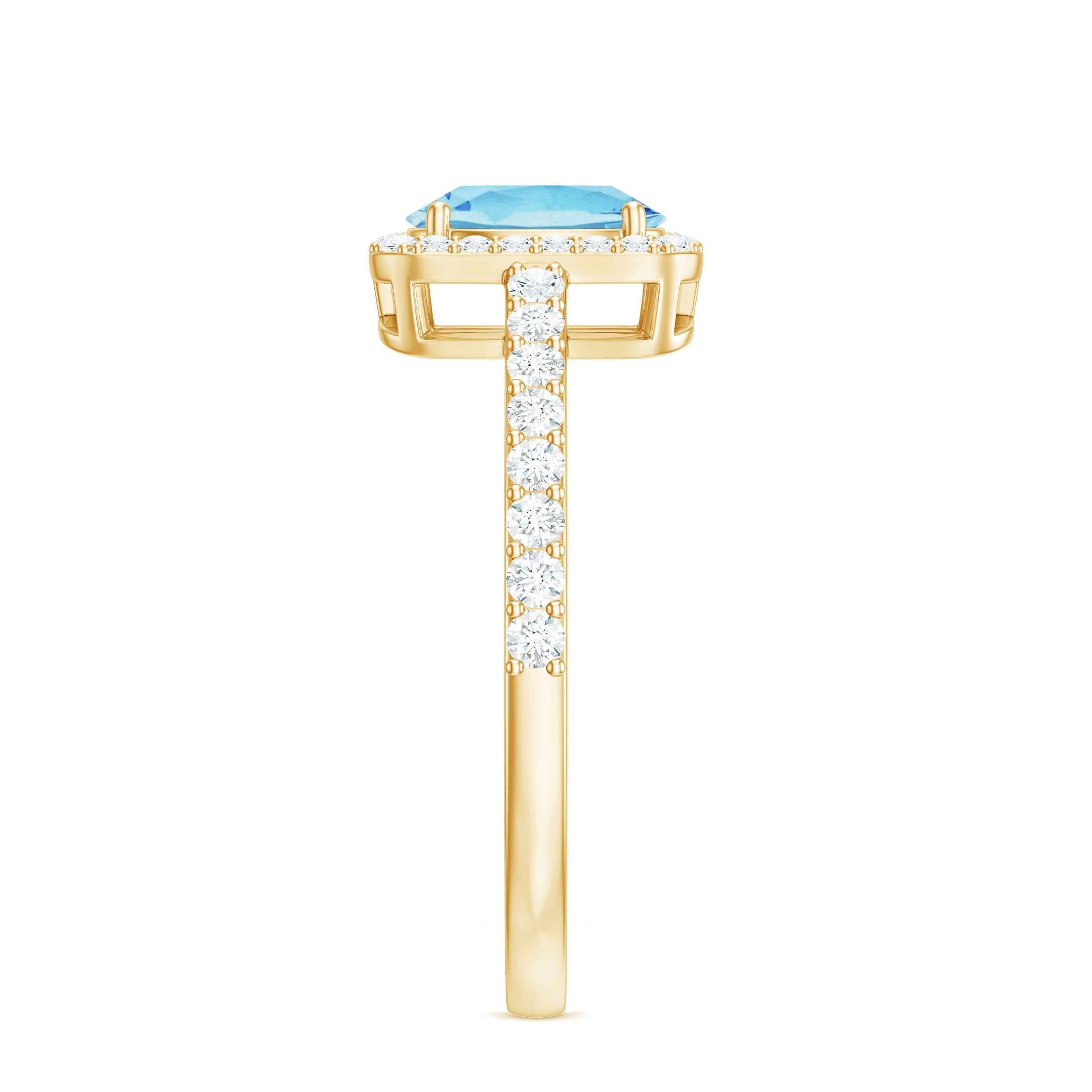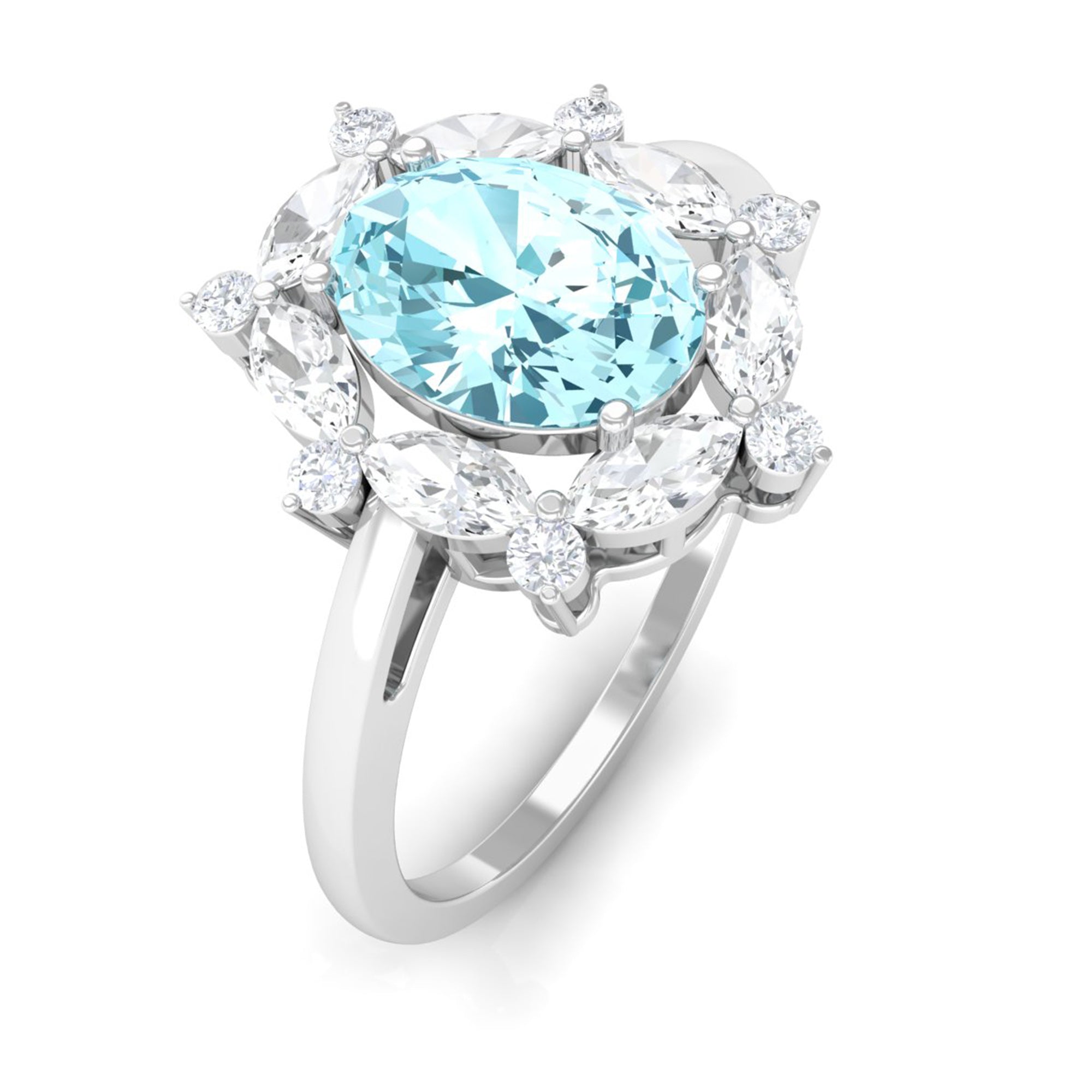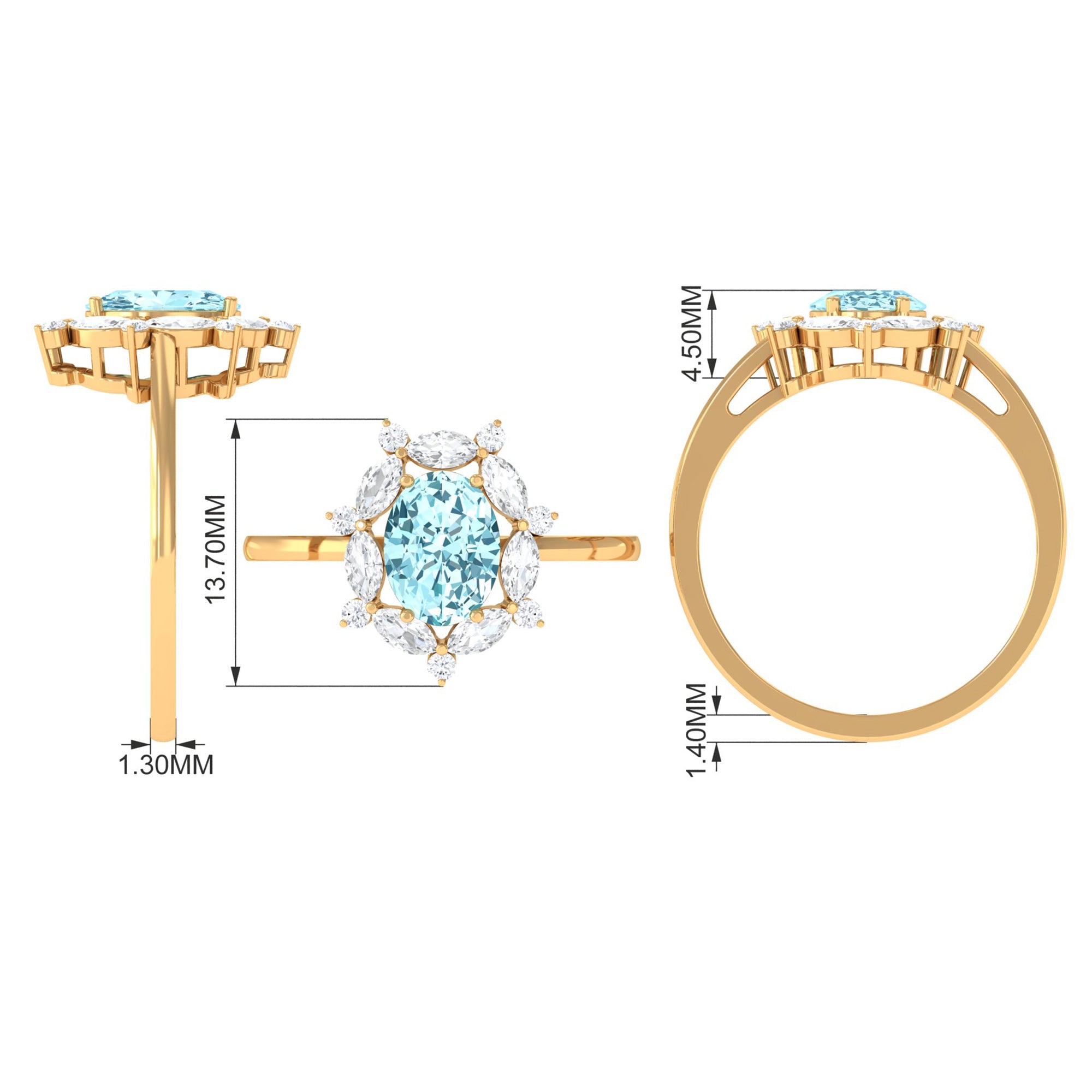 • Aquamarine Halo Engagement Rings: - Showcasing an aquamarine centerstone with dainty round diamonds encircling it for an added brilliance. Our aquamarine diamond engagement rings exude timeless elegance, creating a mesmerizing and dazzling effect.