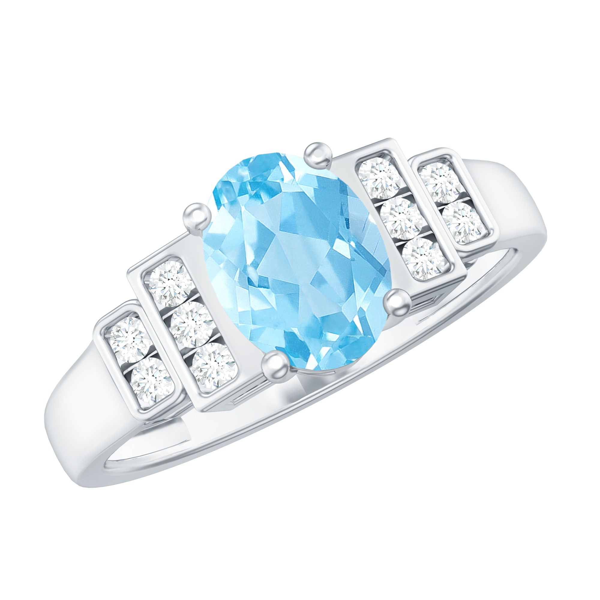 • Oval Aquamarine Engagement Rings: - Combining the round cut with a distinctive elongated shape, the graceful contour of an oval-cut aquamarine ring is remarkably flattering, effortlessly extending the appearance of one's fingers while accentuating the color & brilliance of the gem. Another benefit of choosing aquamarine is it looks larger than it is. Making it an excellent choice for an aquamarine ring or earrings.
