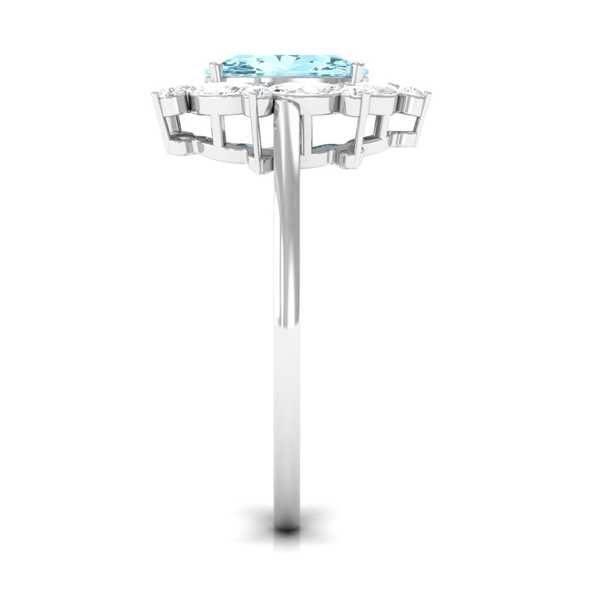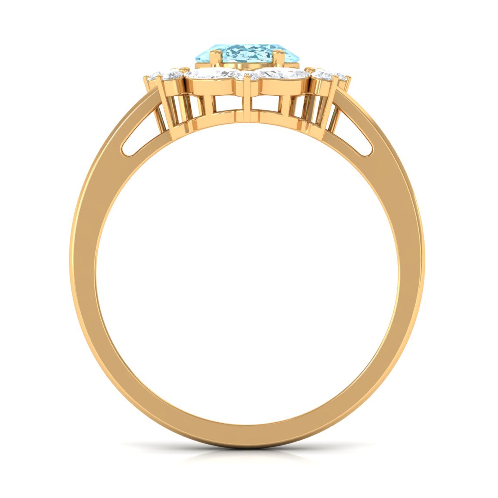 • Pear Shaped Aquamarine Engagement Rings: - Features teardrop shape, introduced by combining round and marquise shapes, adding a touch of romance to the ring while highlighting the natural beauty of aquamarine.