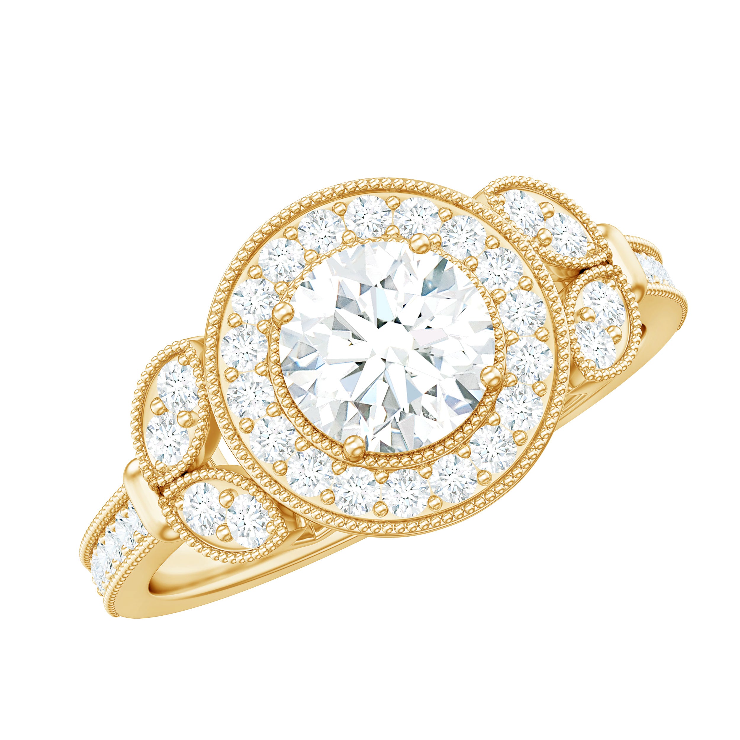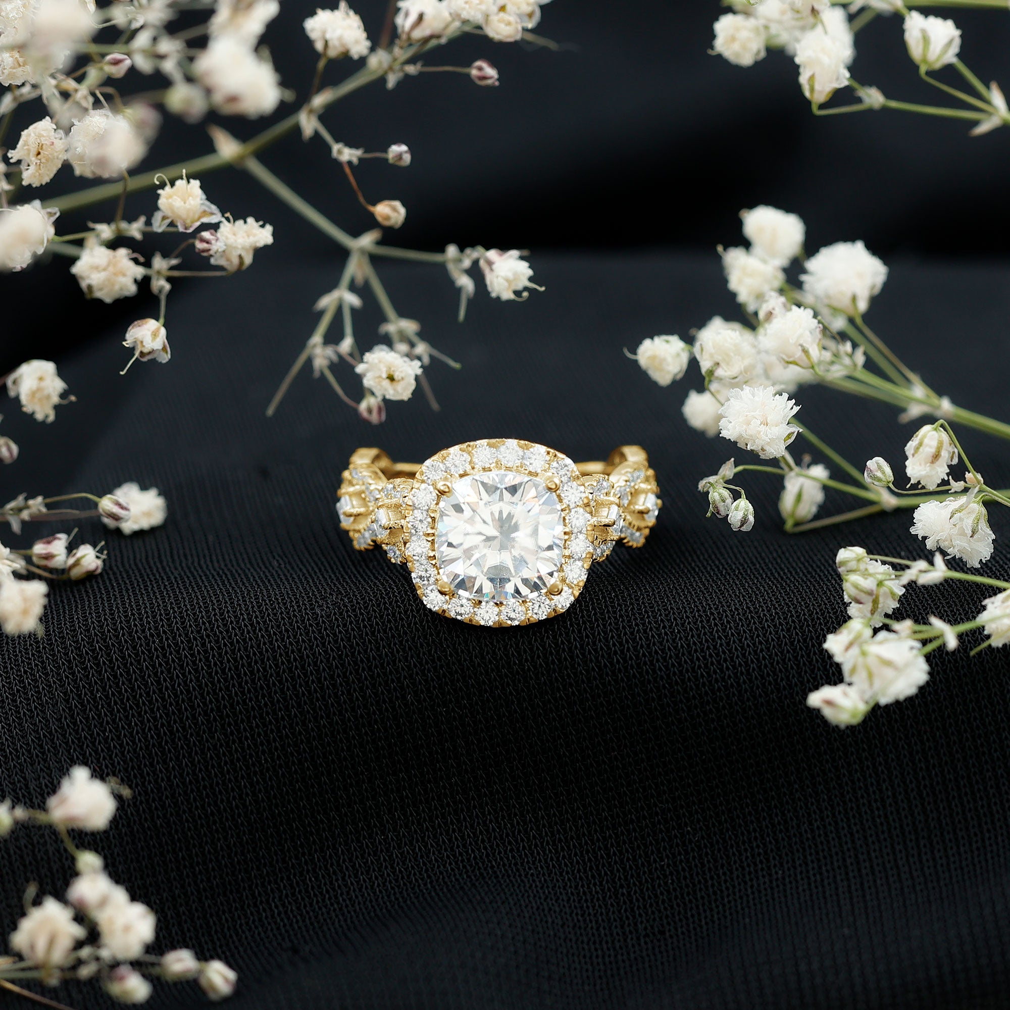 The Art Deco halo engagement rings look gorgeous and won’t go out of style easily. They are extremely popular and can even make the center stone look bigger.