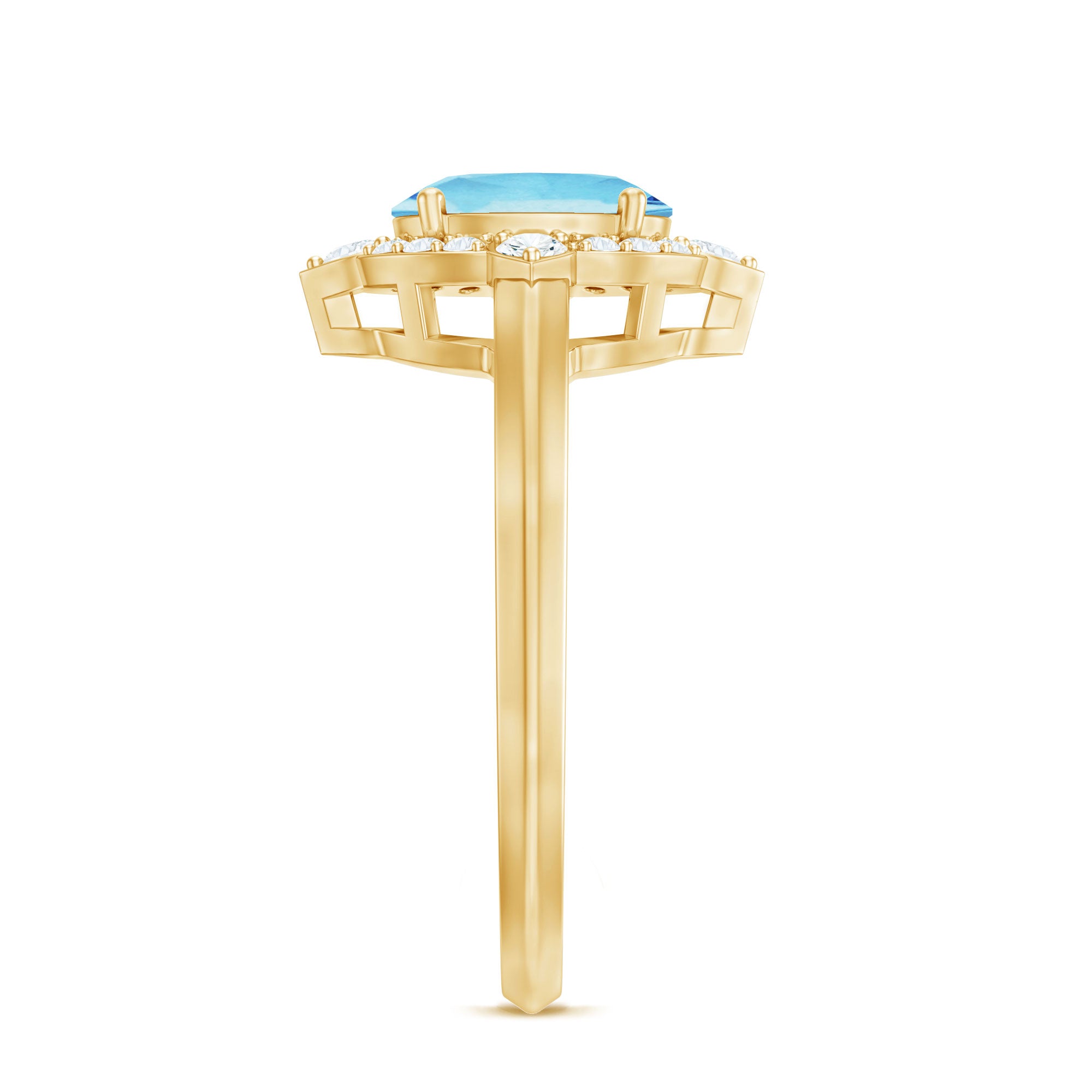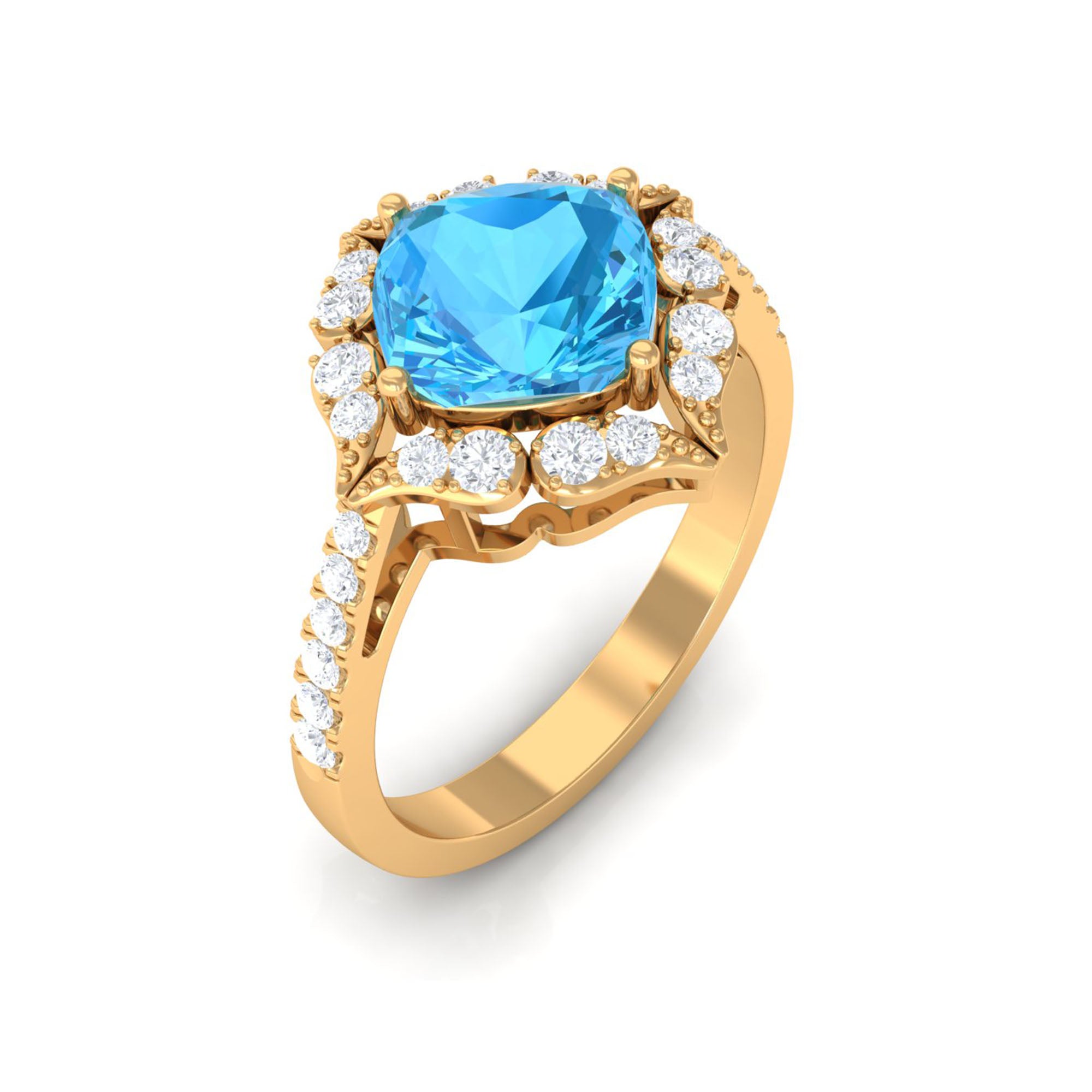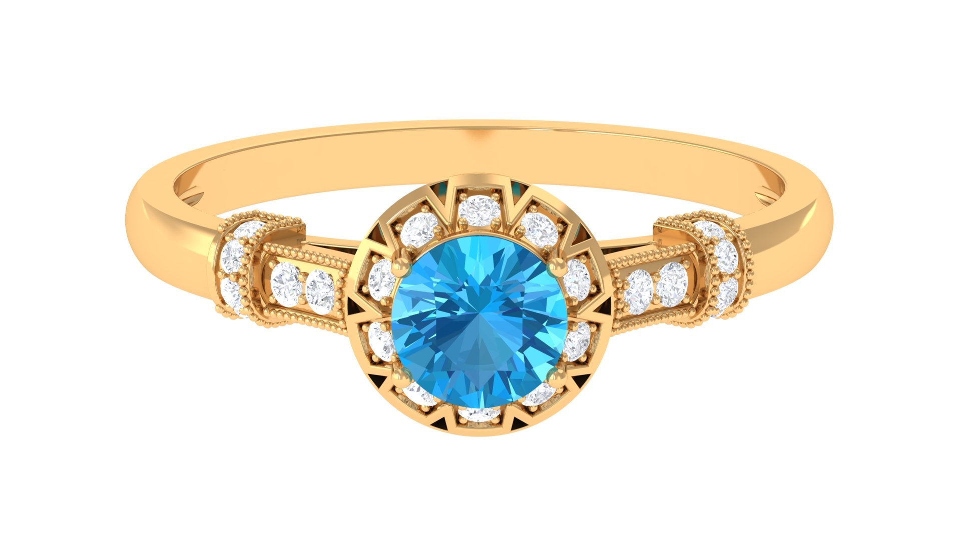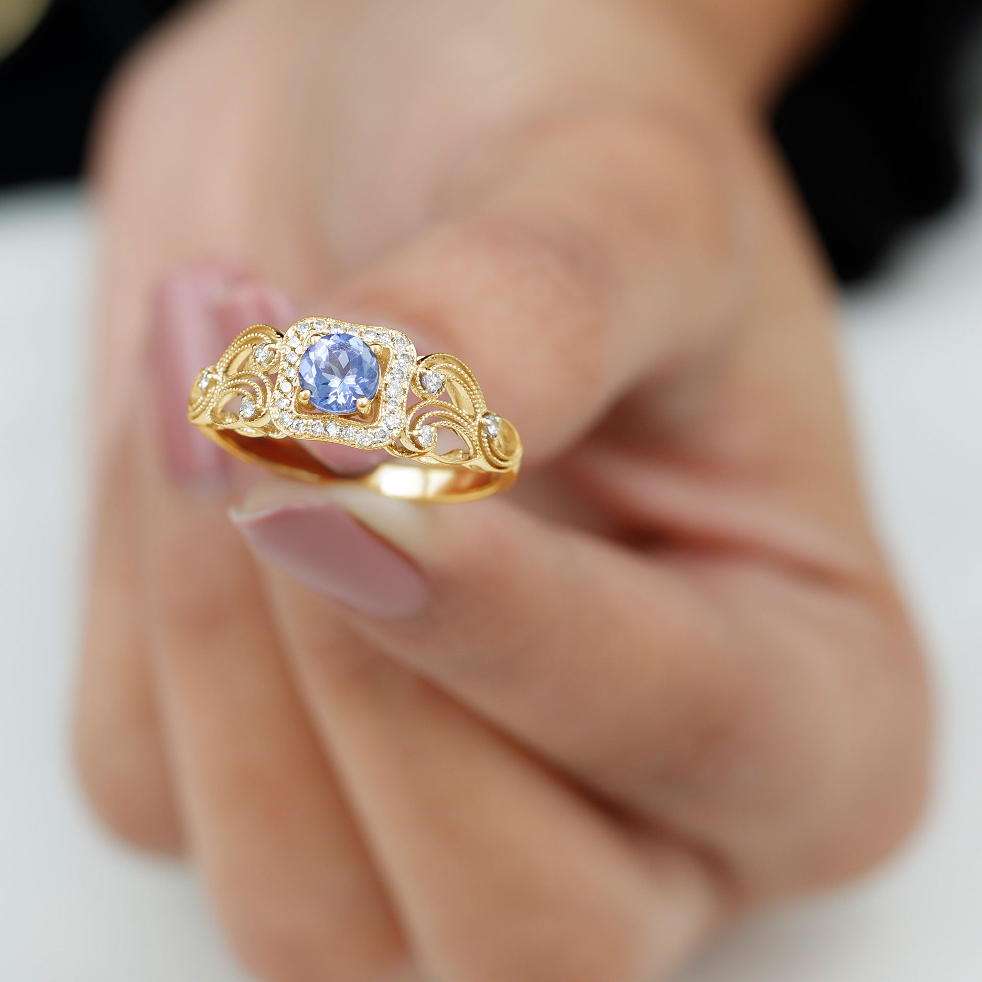 The stunning blue hues of London Blue Topaz complement the old-world charm of Art Deco rings. These blue topaz rings will certainly melt your heart in an instant. If you think you are all about those rings with intricate details and a vintage vibe, then this is your sign to buy a London blue topaz art deco ring. Stay true to the vintage style, exhibiting some fine milgrain details and cutwork on gallery of the ring.