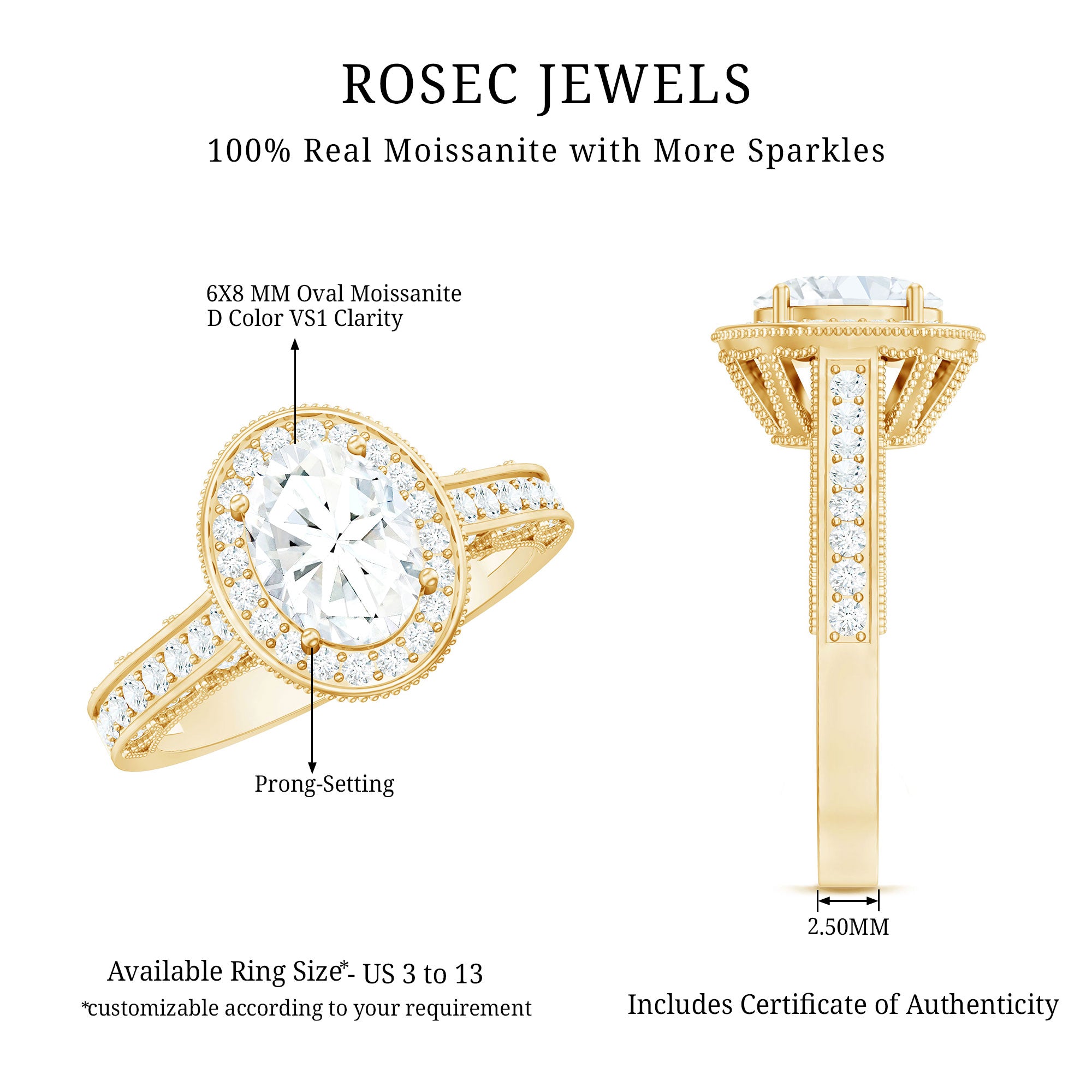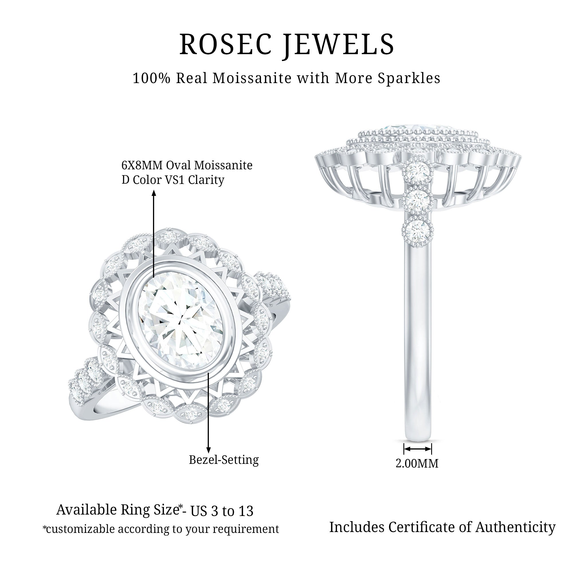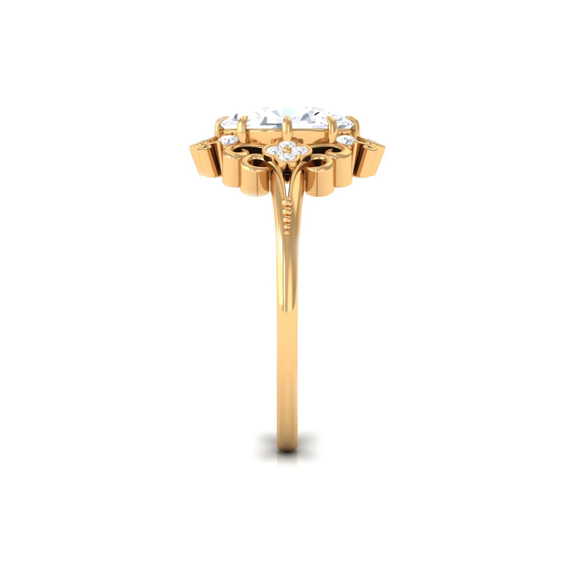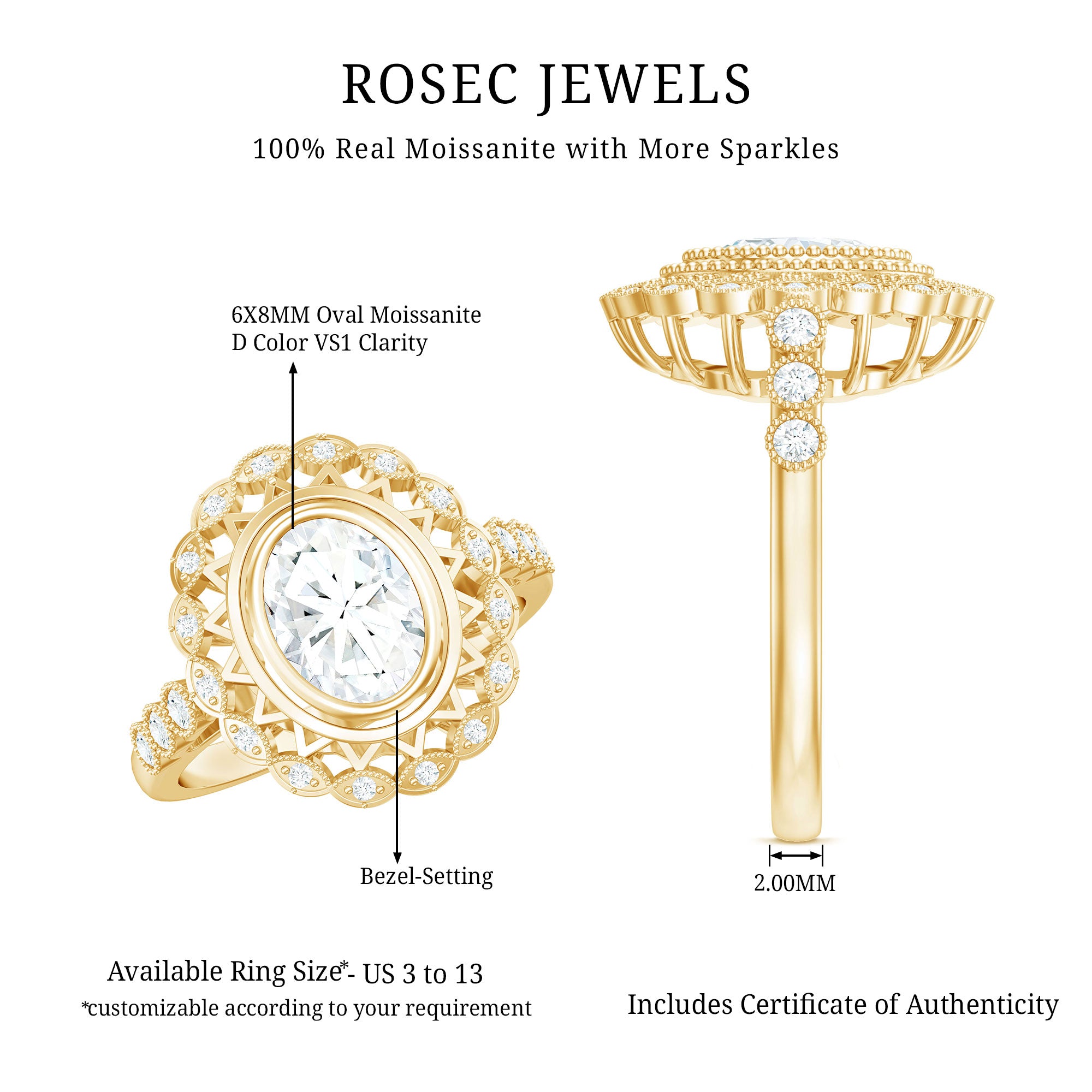 But the shine of moissanite art deco rings surpasses diamonds. A thing about Art Deco design is that the stone needs to be big. If you want to go big with your gemstone, moissanite is a great choice because of its low weight. -