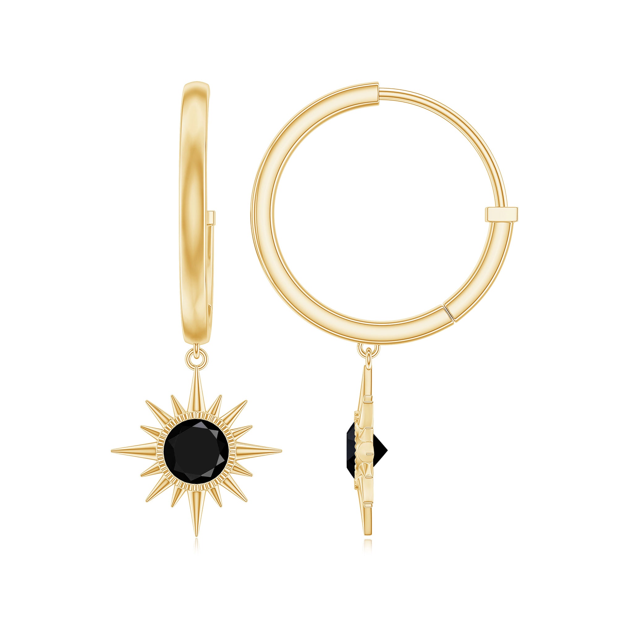The new go-to choice of style, Black Onyx Hoop Earrings are characterized by a circular or semi-circular shape. To lend them a perfect bold appeal, they are studded with the centerpiece of Black Onyx. From small huggie hoops that sit close to the earlobe to large, statement-making ones, these Women’s Black Onyx Earrings offer you a world of options that can please many aesthetics.