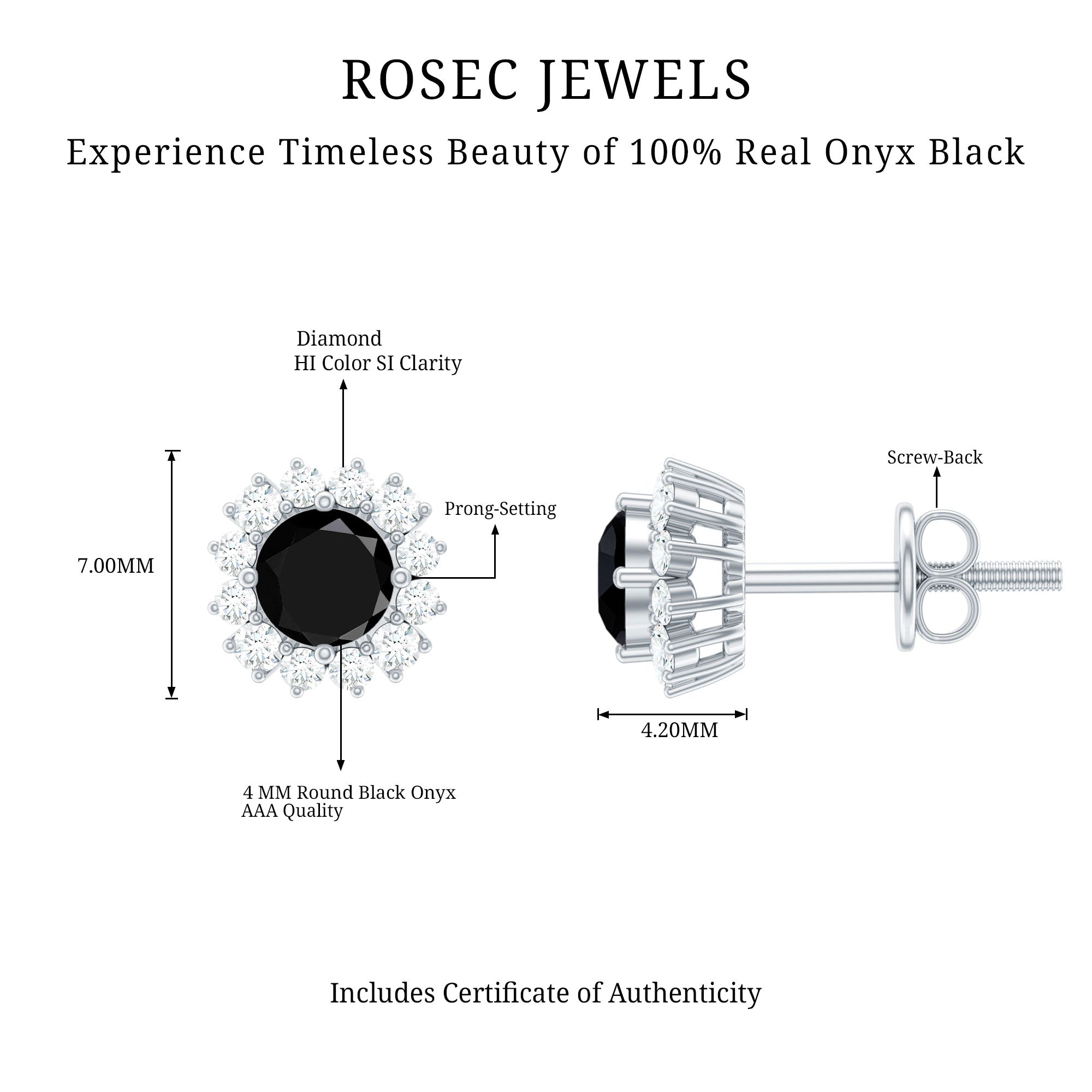 Perfect to be slip on every day, Black Onyx Stud Earrings feature the bold centerpiece of Black Onyx that sits flat against the earlobe. They are commonly secured by push back, screw back, and lock backs. Owing to their classic design, they specifically speak to the ones with a minimalist and understated sense of style (who can’t do without a little black color pop in their everyday style). From simple and small Black Onyx Stud Earrings to the ones beautified with a shimmering halo, you have a world of options before you.