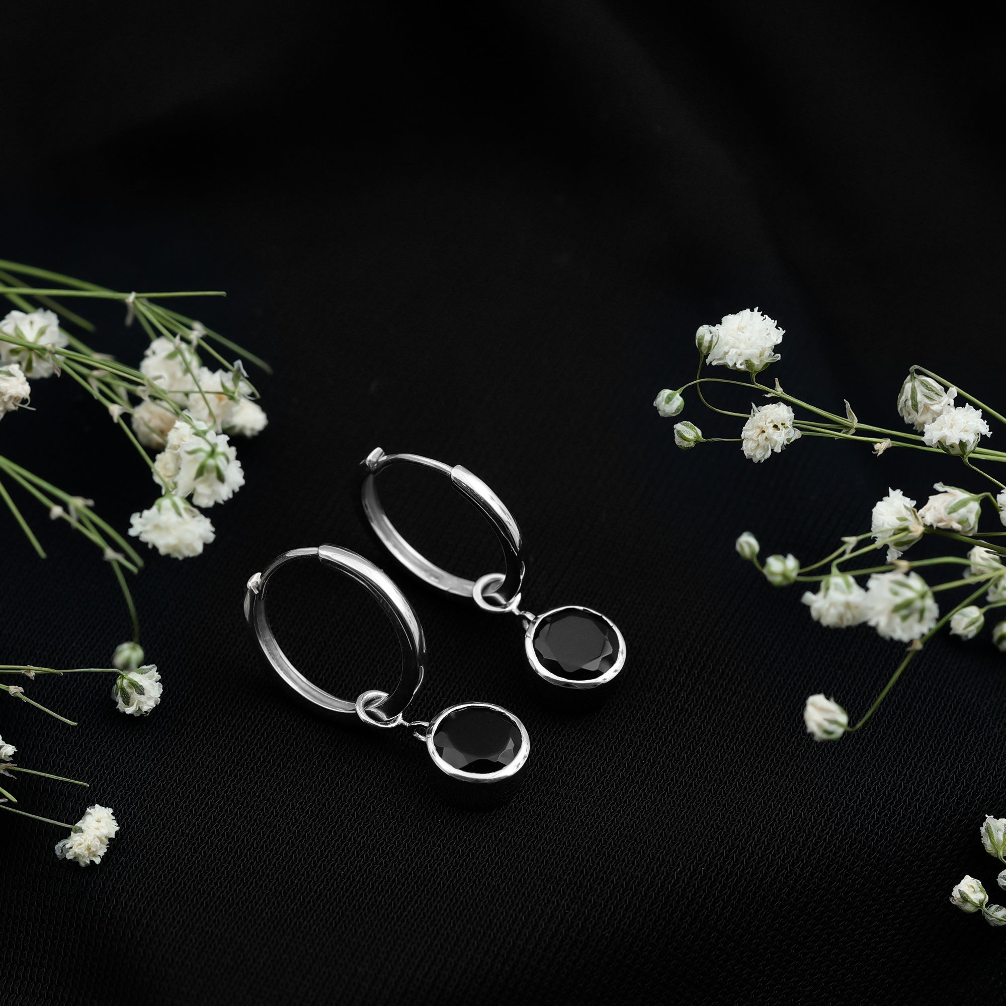 • Black Onyx Hoop Earrings