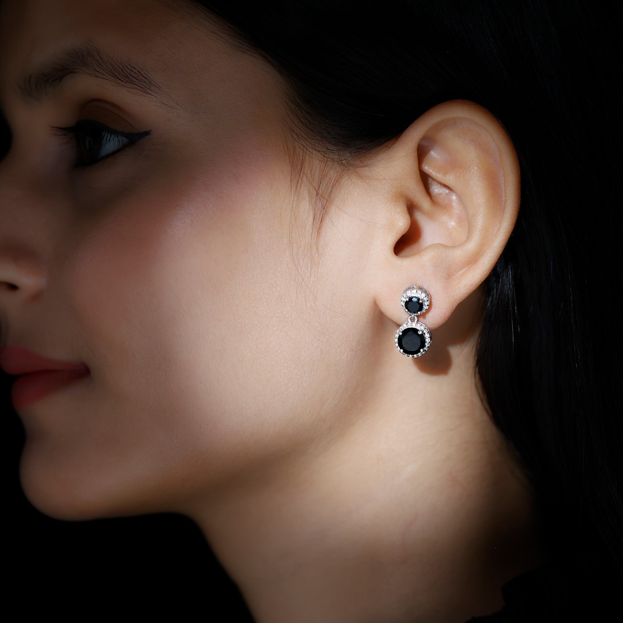 Just like the name suggests, Black Onyx Dangle Earrings hang below the earlobe while moving (or more precisely, dangling) to and fro. This extravagant design is best complemented with the bold centerpiece of Black Onyx. Depending on the size of the hanger, they can dangle just below the earlobe or even brush off the shoulders for a more dramatic appeal.
